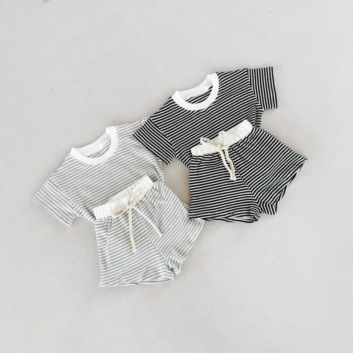 【73-120cm】ベビー服 セットアップ 半袖Tシャツ&ショートパンツ ボーダー柄