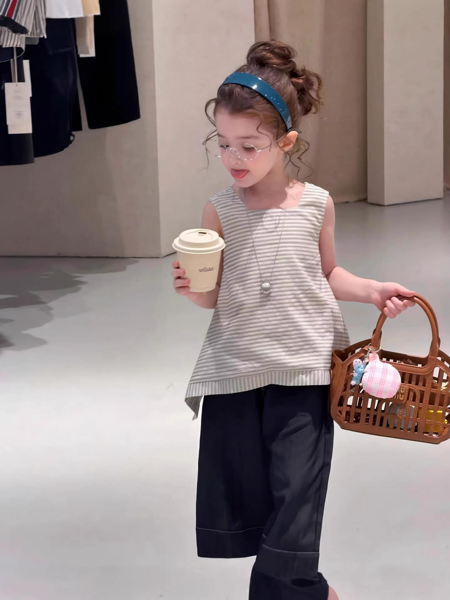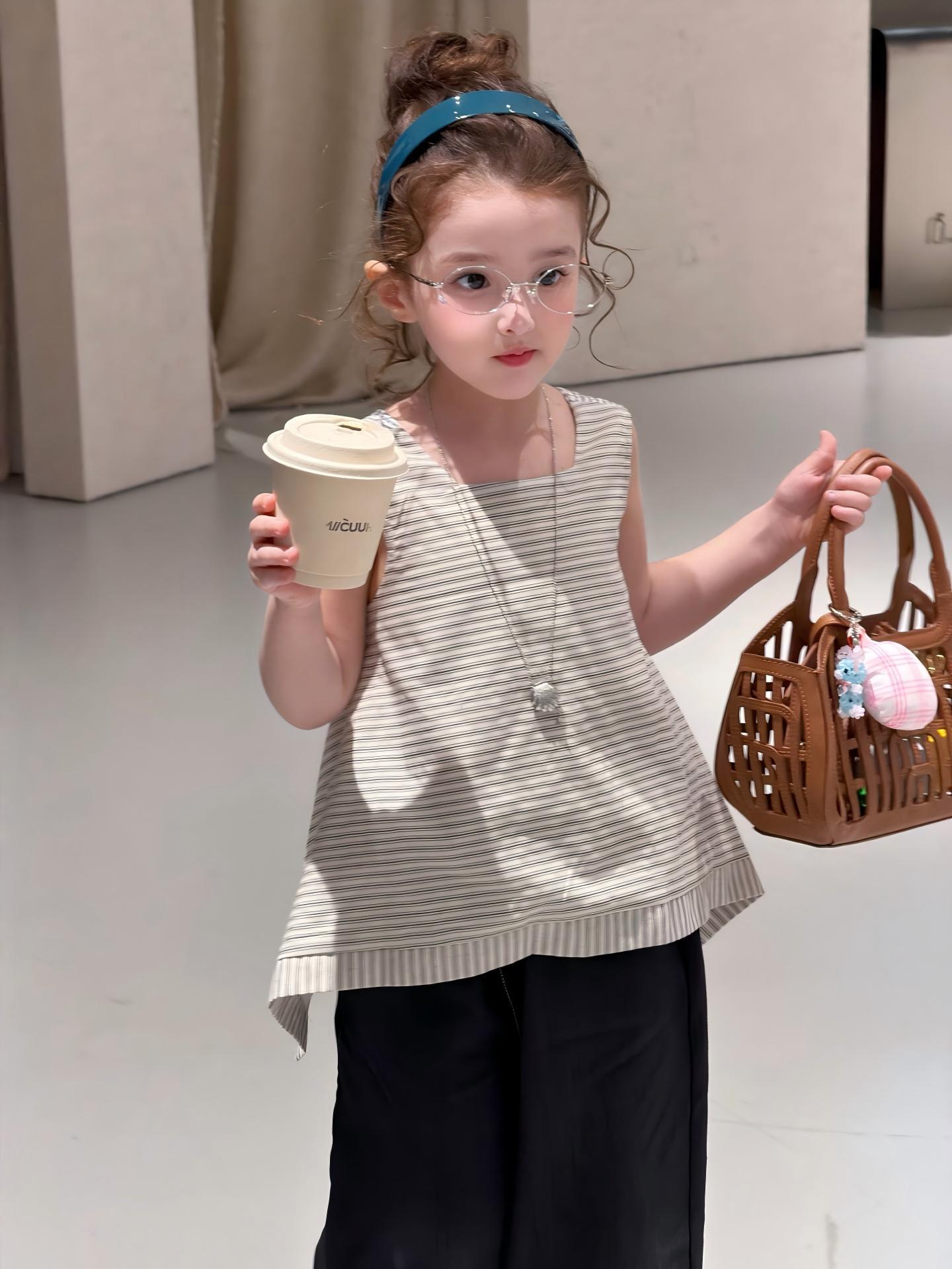 【90-140cm】キャミソール or デニムパンツ 女の子 ボーダー柄 ナチュラル