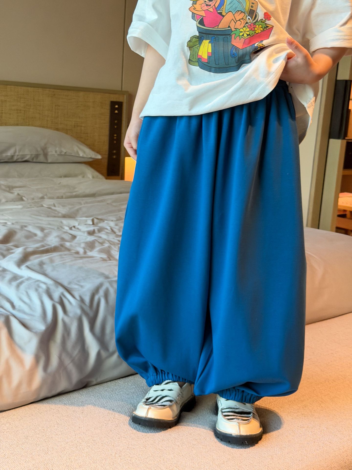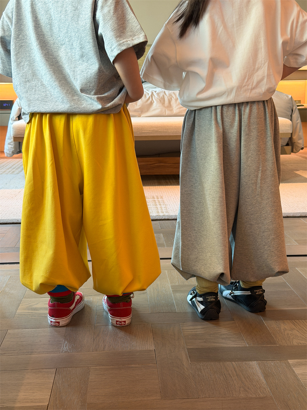 【90-150cm】バルーンパンツ キッズ 男女兼用 ゆったり 裾ゴム カジュアル ロングパンツ