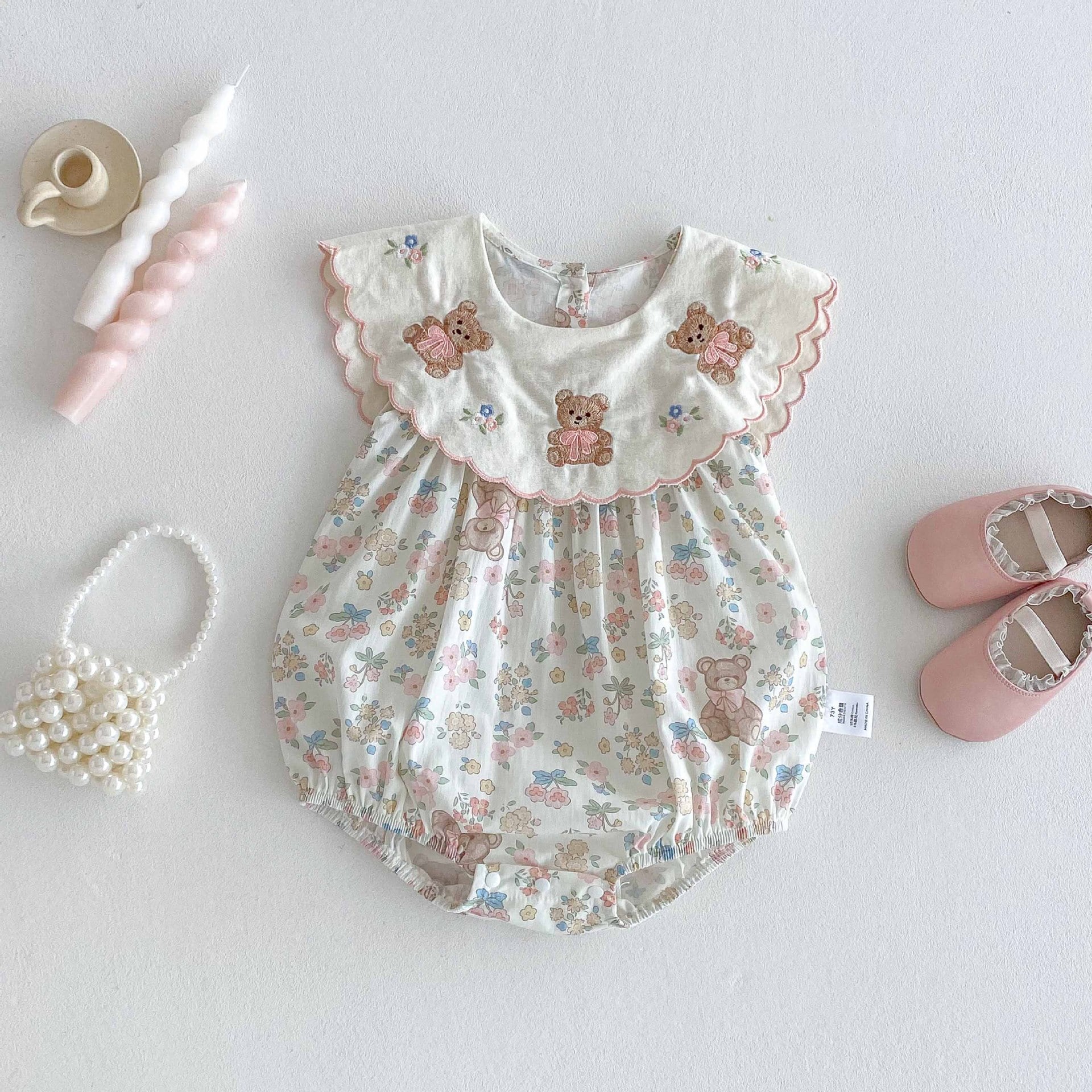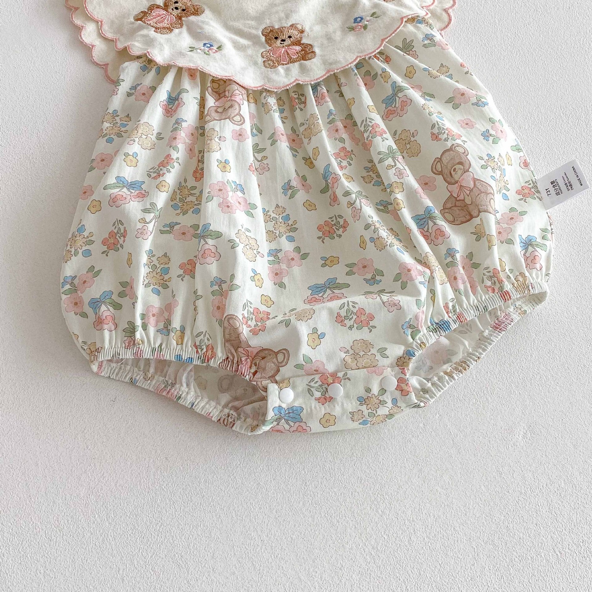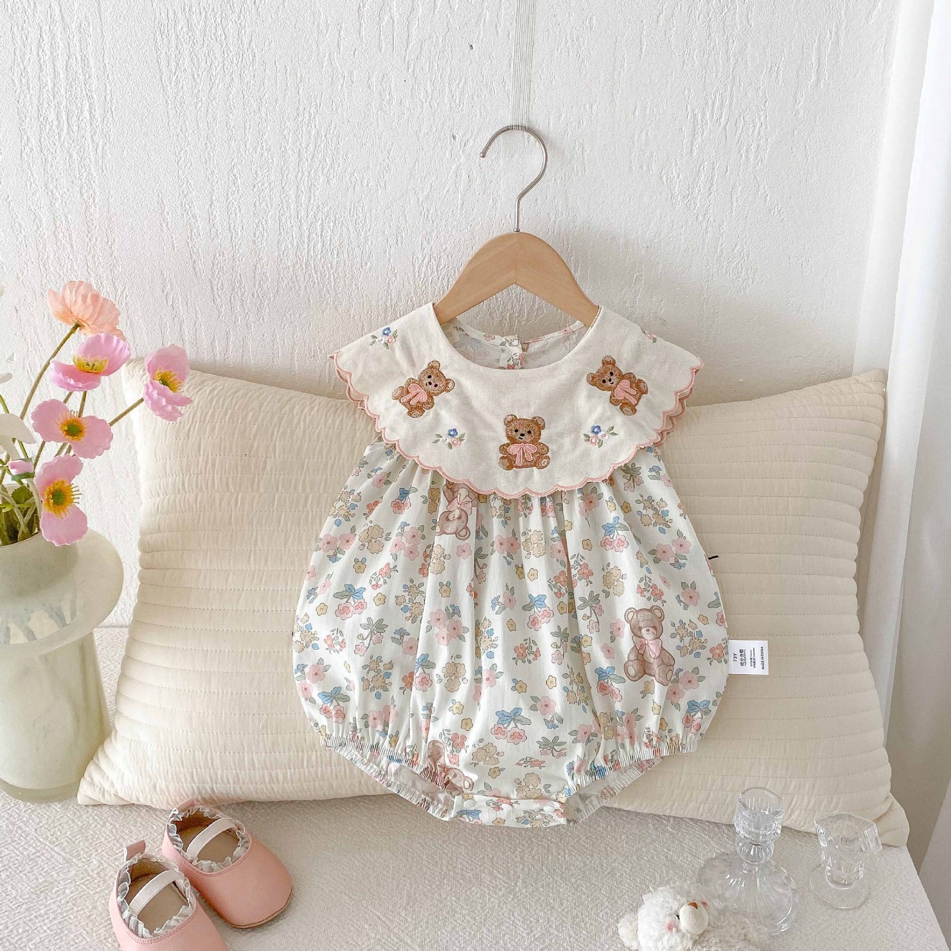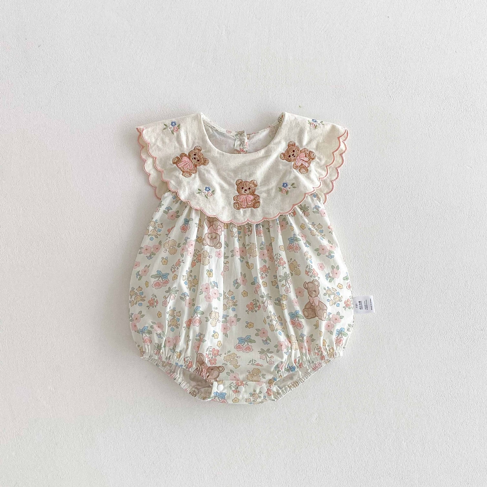 【66-90cm】ロンパース 熊さん 花柄 おしゃれ ベビー服