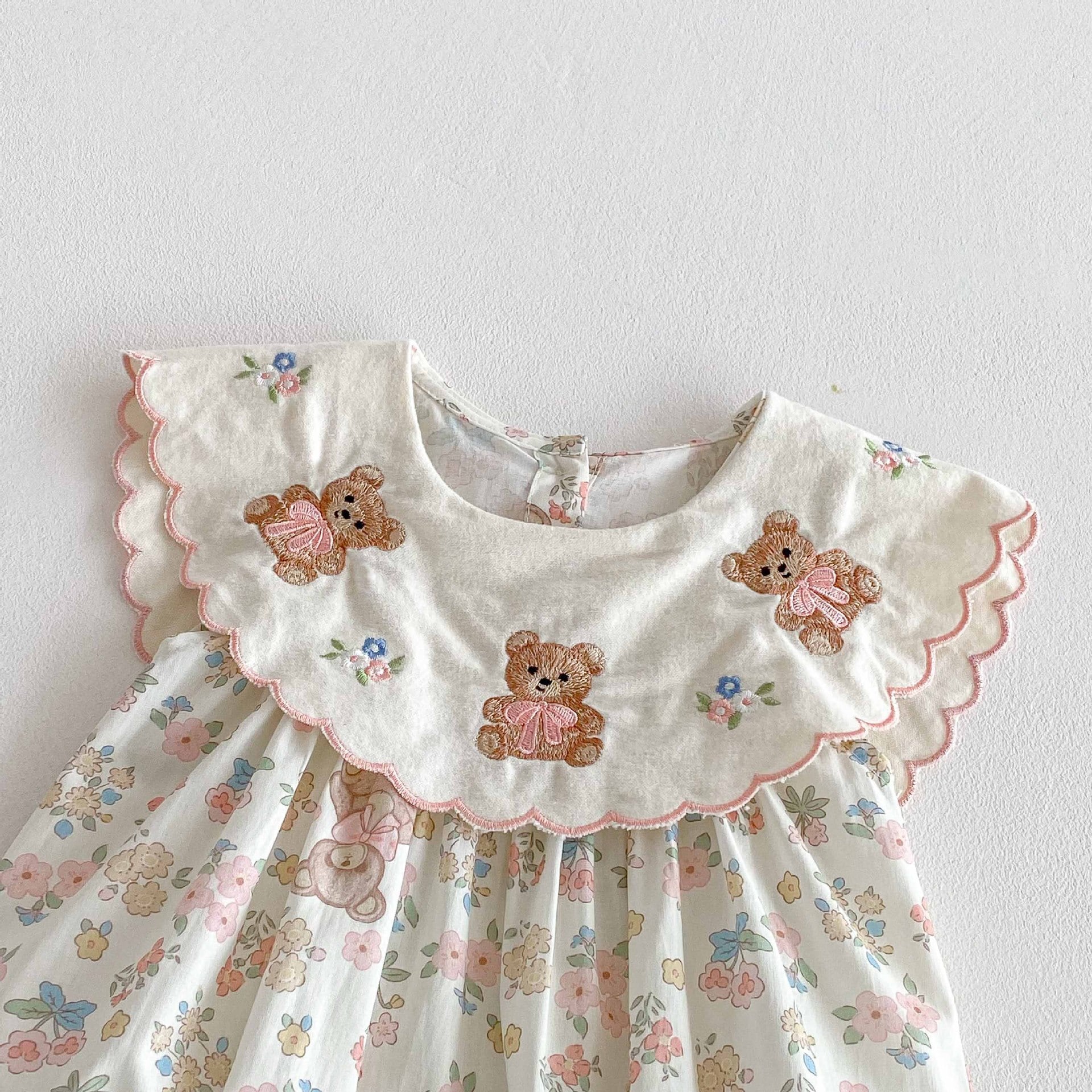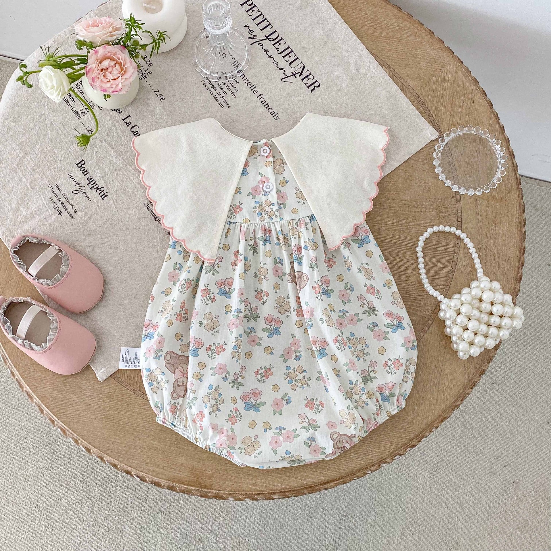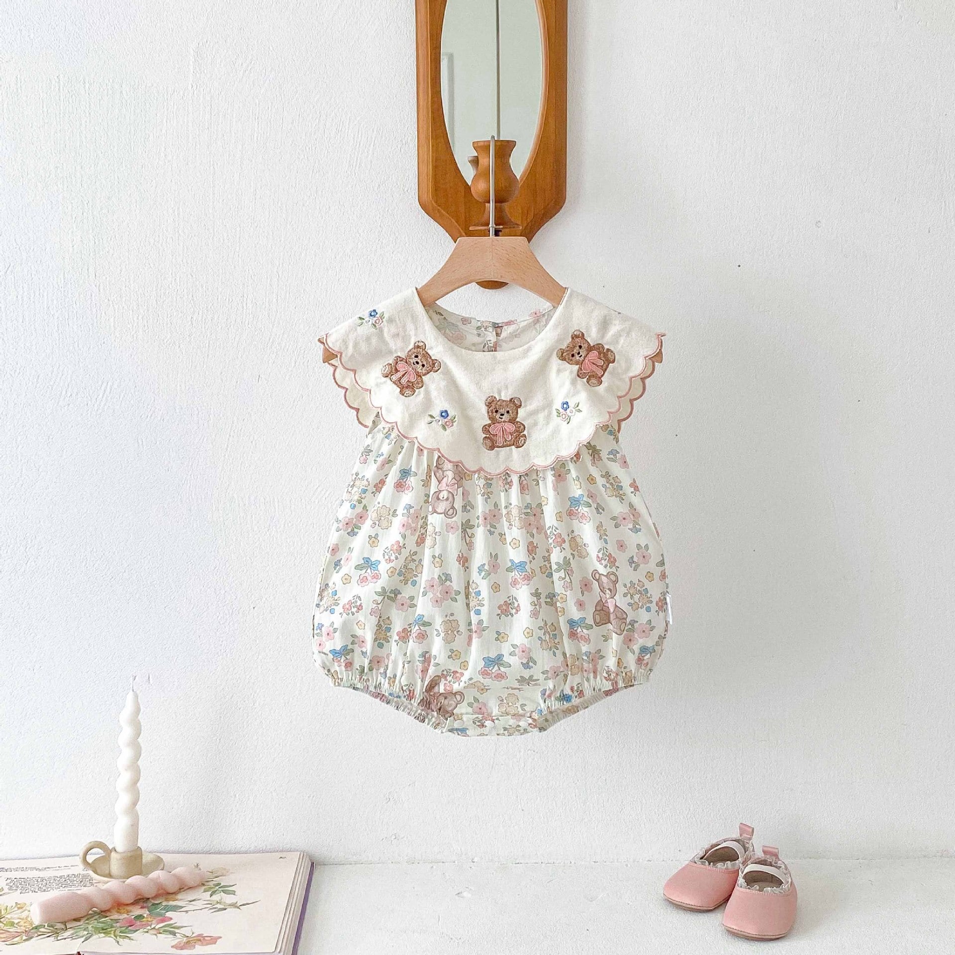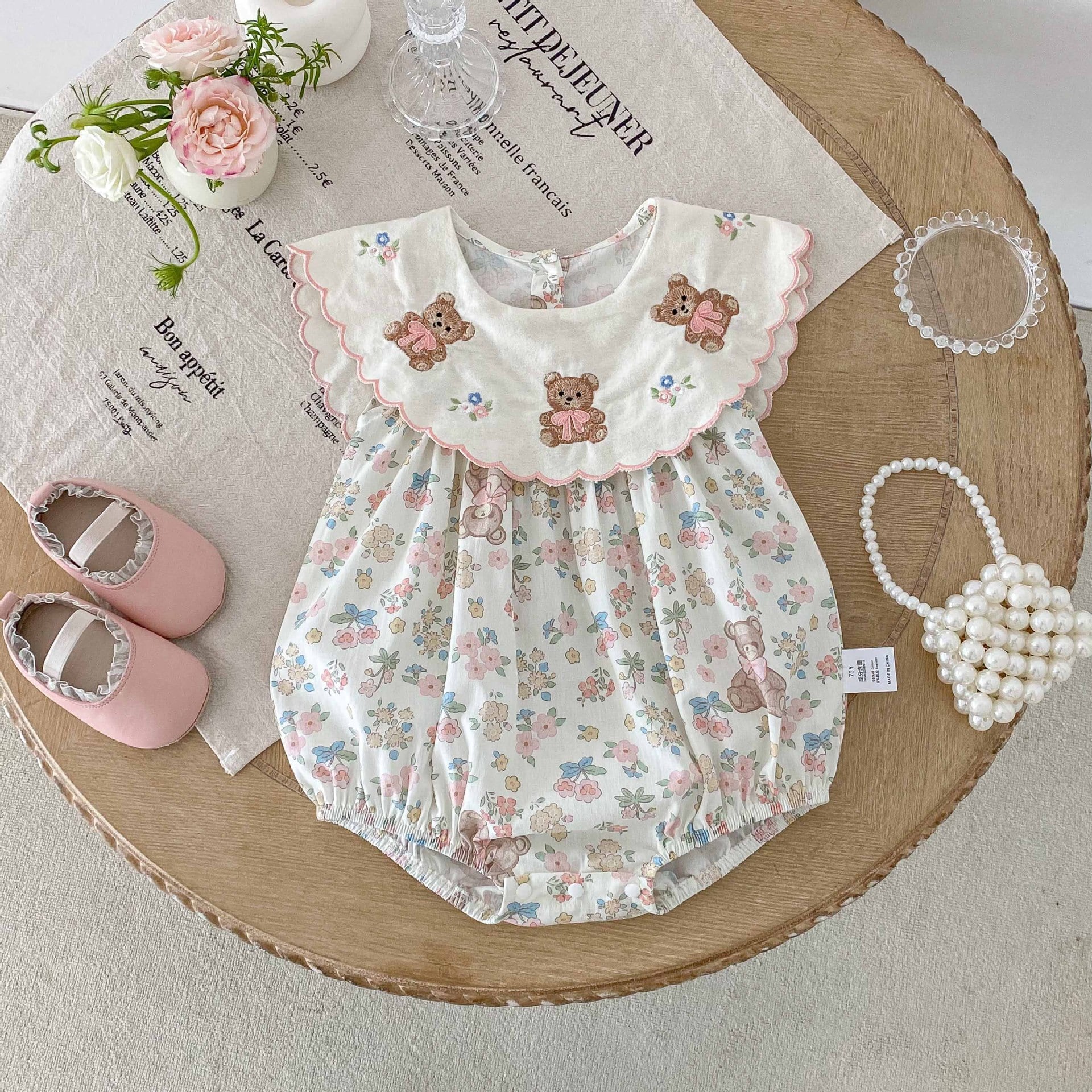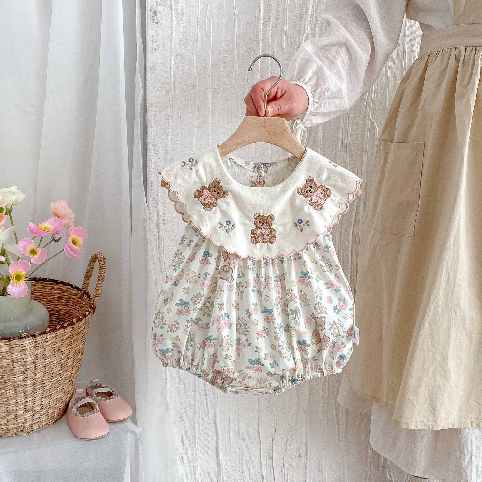 【66-90cm】ロンパース 熊さん 花柄 おしゃれ ベビー服
