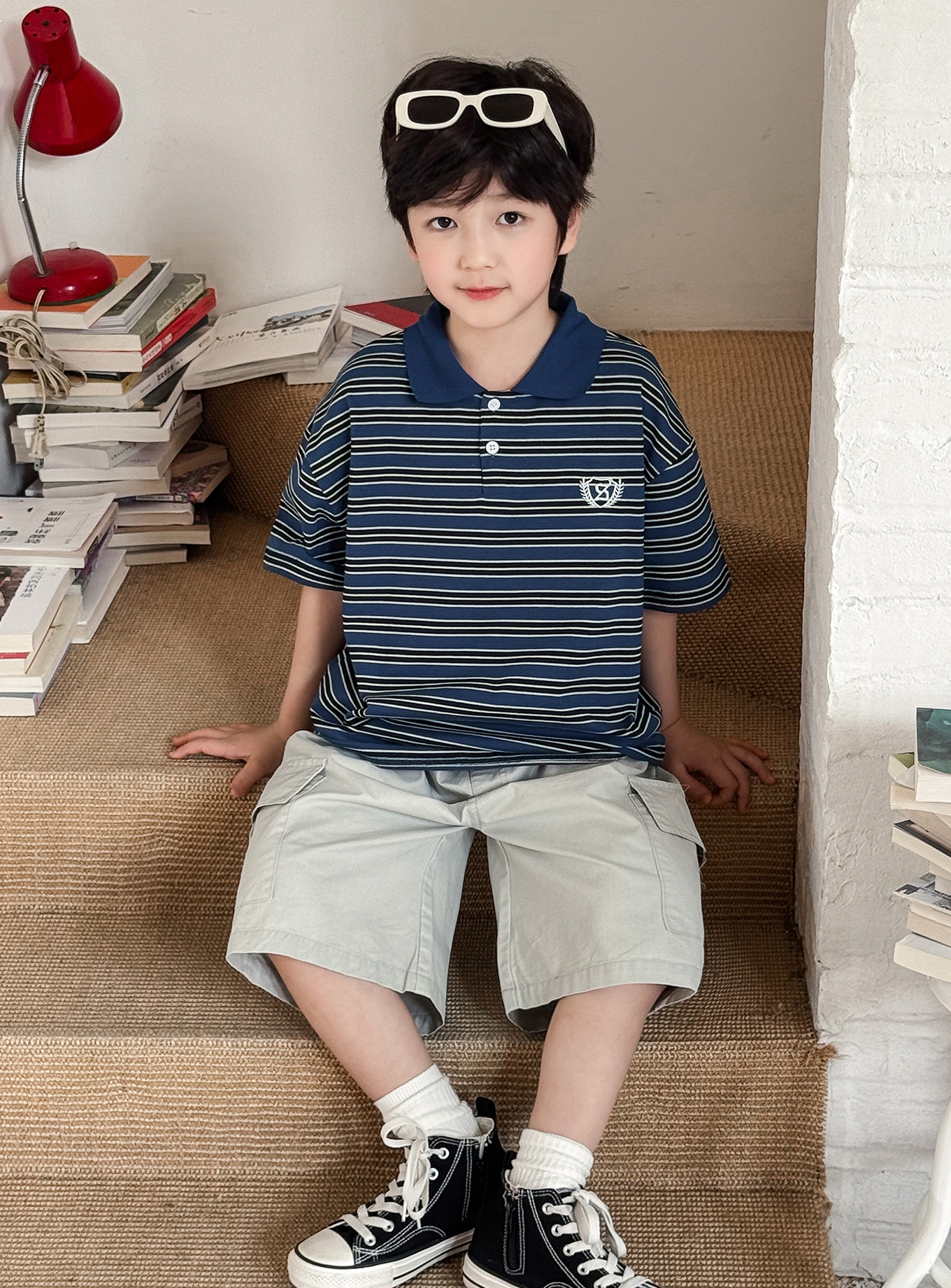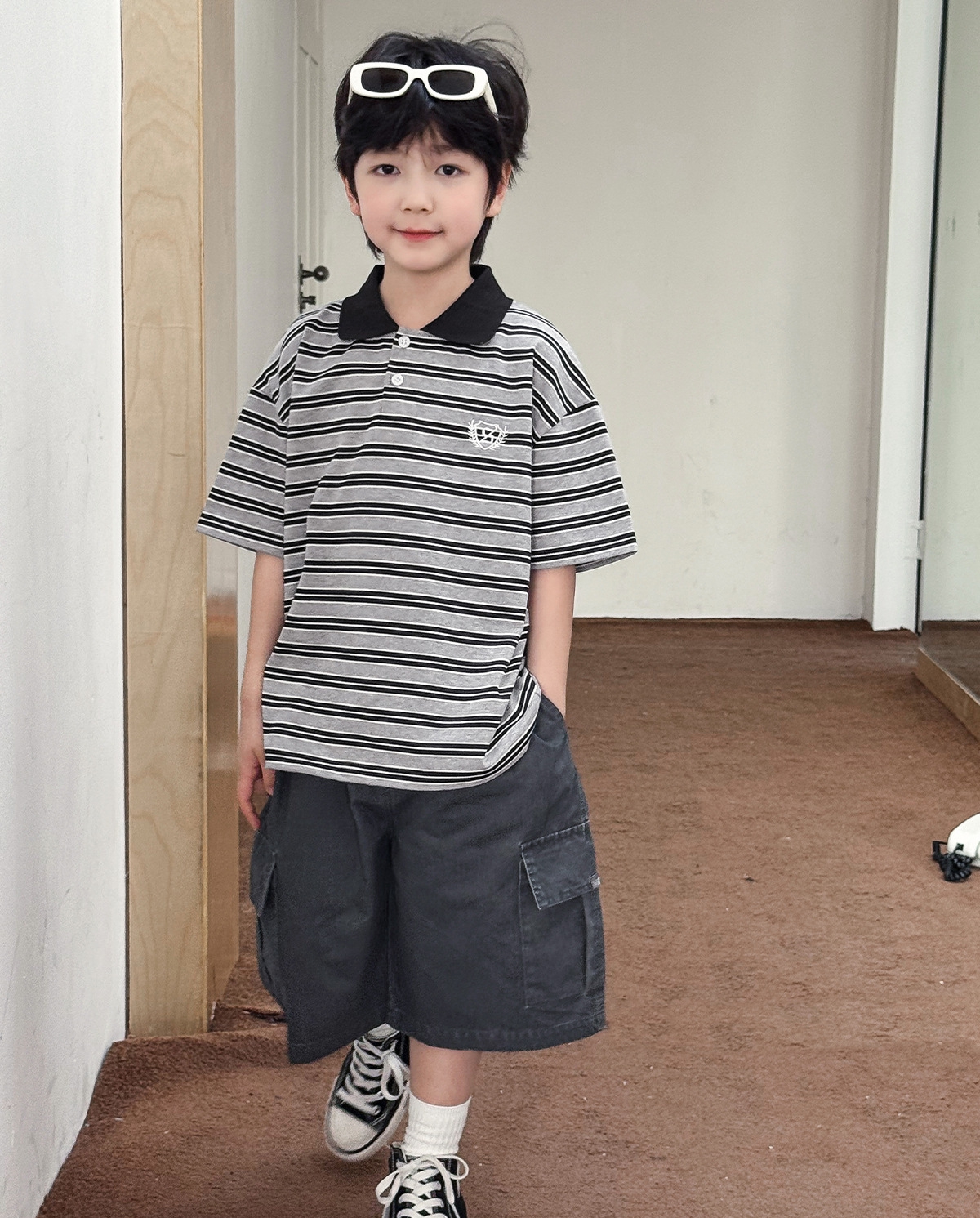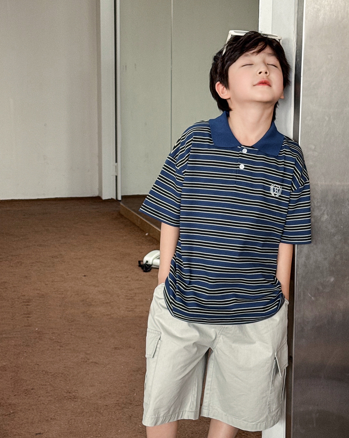 【90-150cm】ポロシャツ 男の子 ボーダー柄 ロゴ刺繍 カレッジ風 半袖 カジュアル トップス
