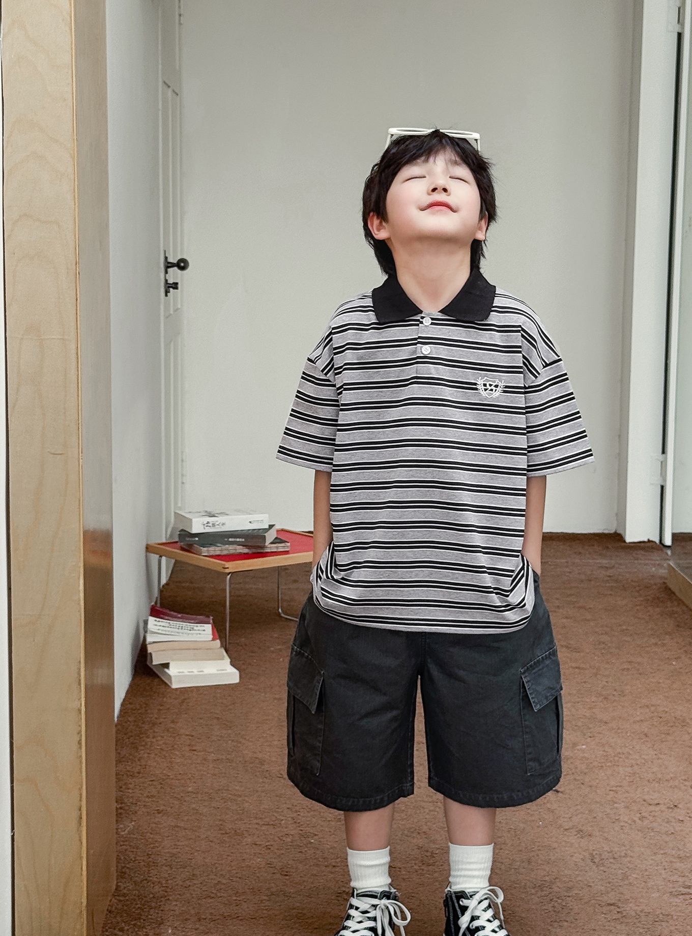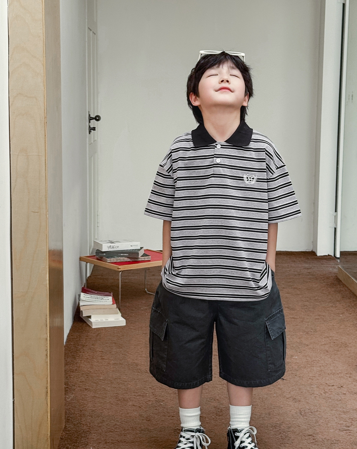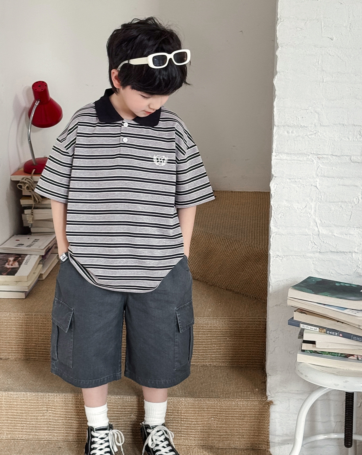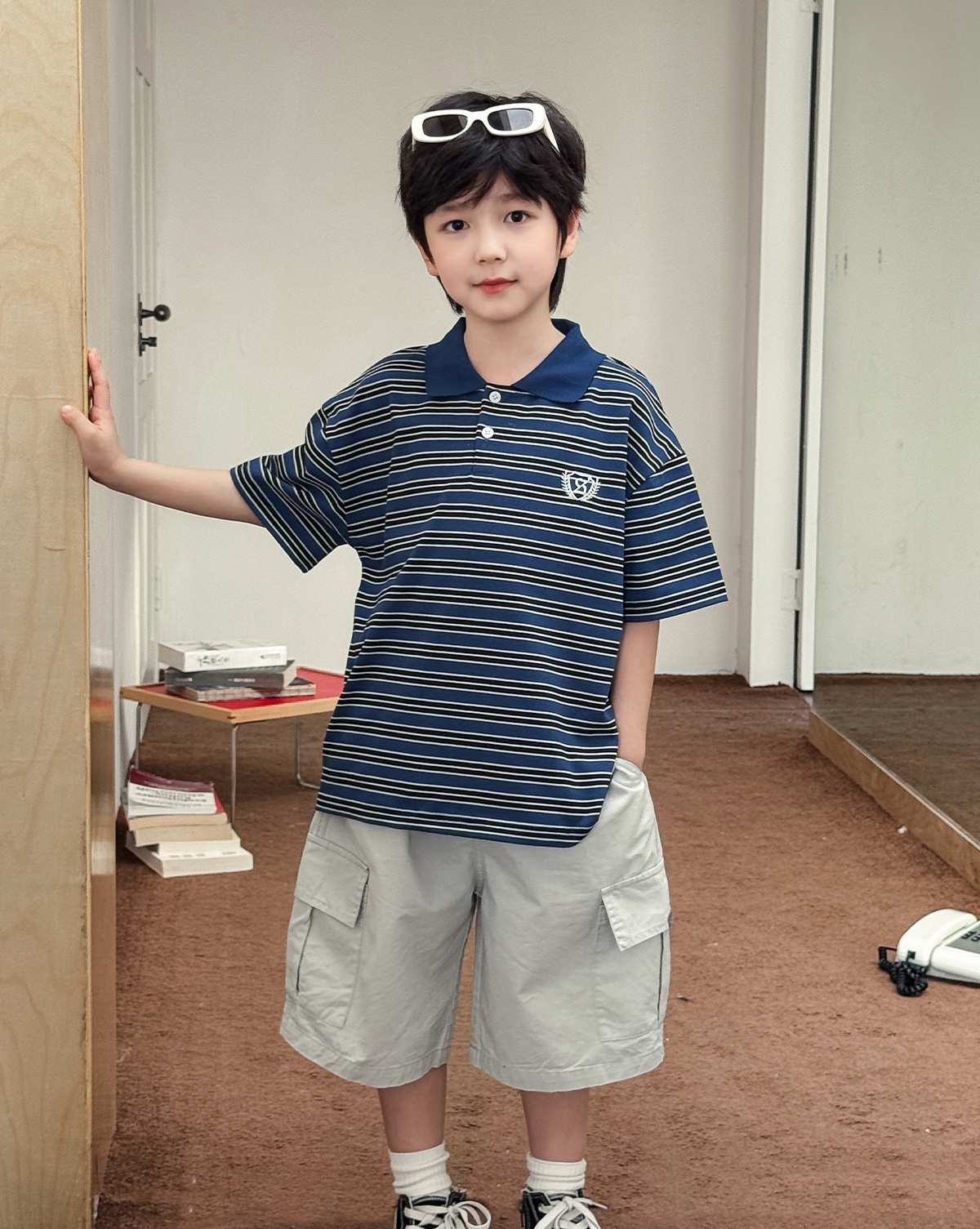 【90-150cm】ポロシャツ 男の子 ボーダー柄 ロゴ刺繍 カレッジ風 半袖 カジュアル トップス