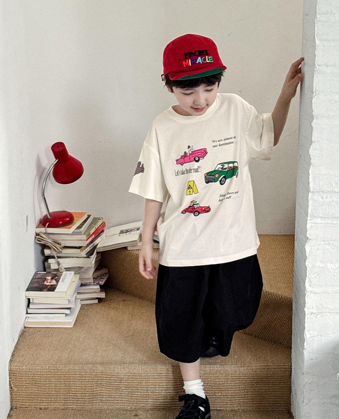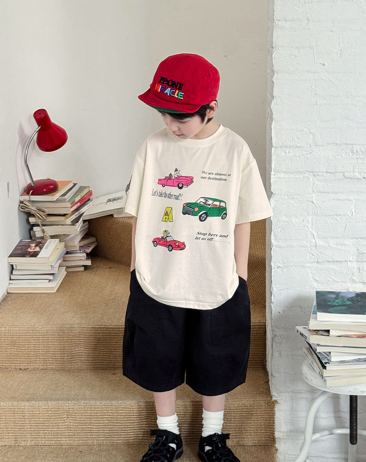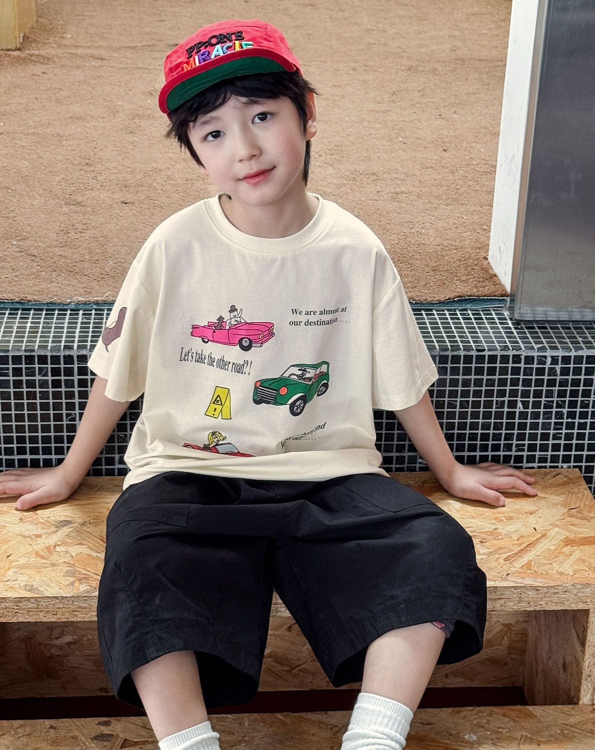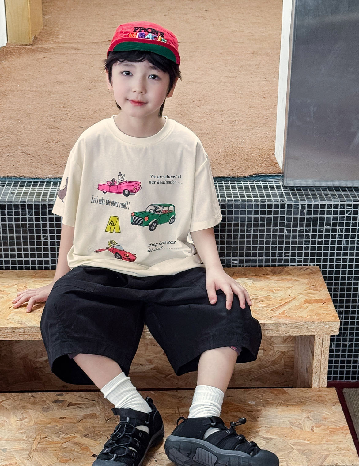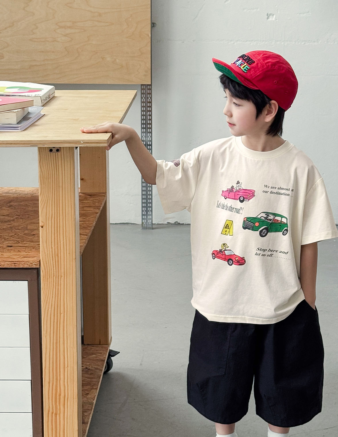 【90-150cm】半袖Tシャツ 男の子 車プリント クルーネック ゆったり カジュアル トップス