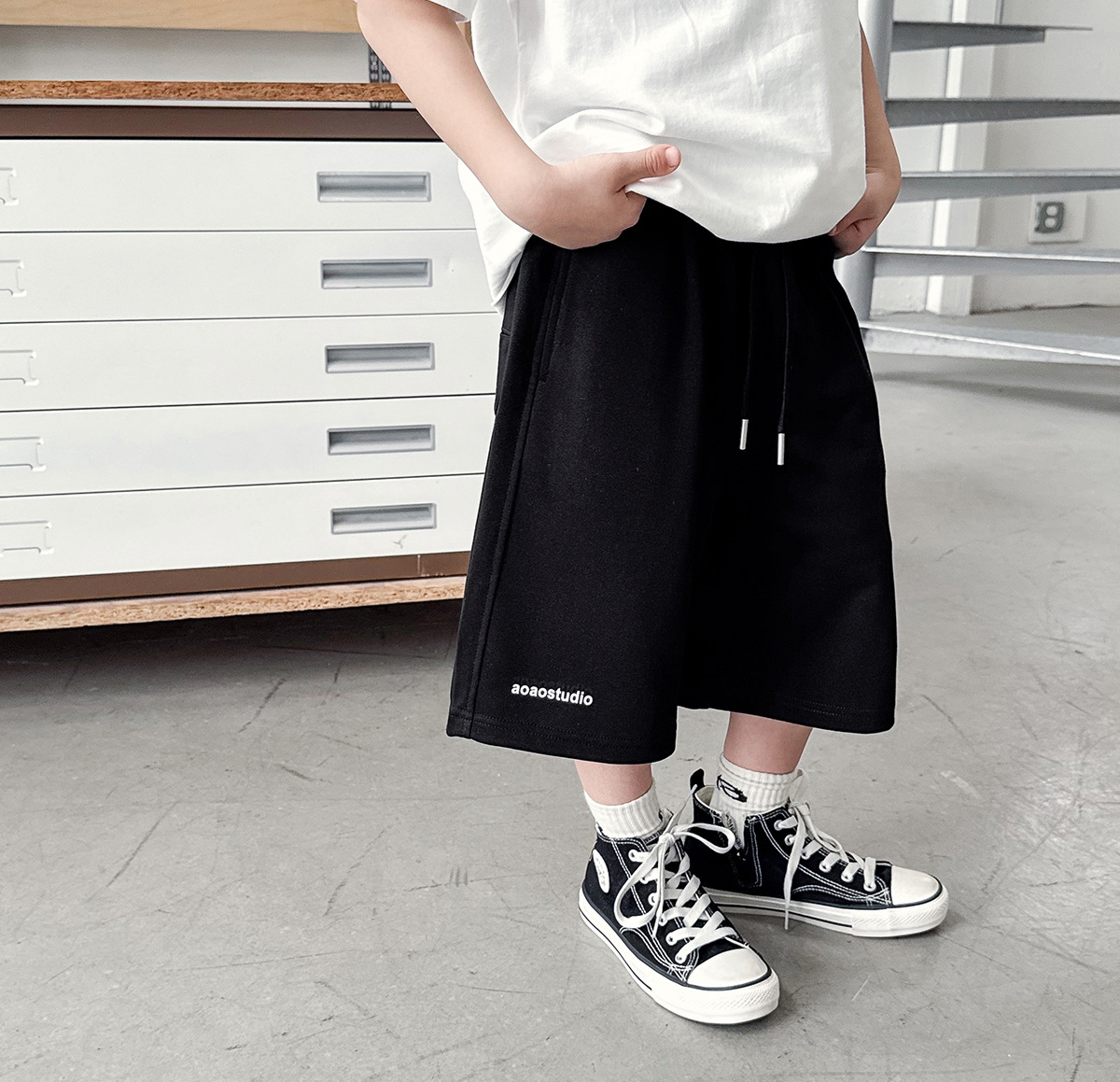 【90-150cm】ショートパンツ 男の子 ロゴプリント ウエスト紐付き やわらか カジュアル ボトムス