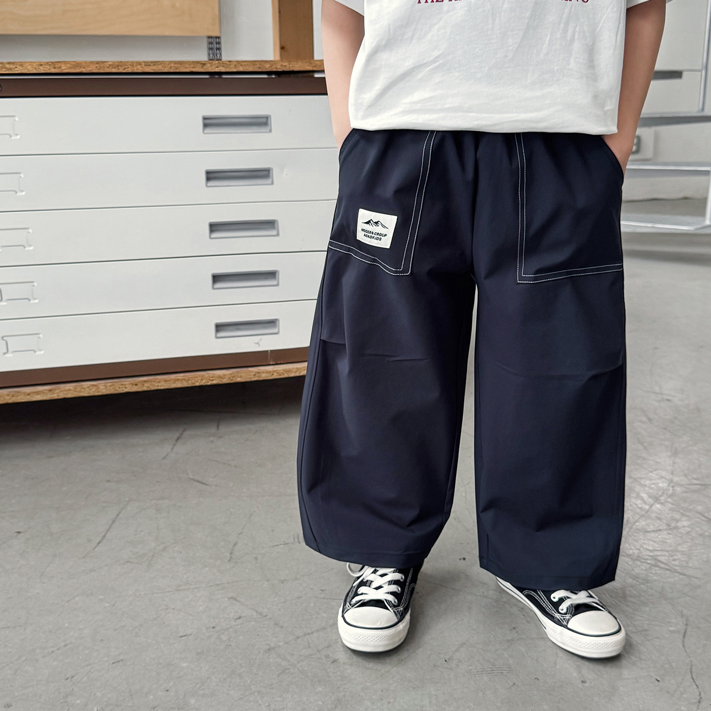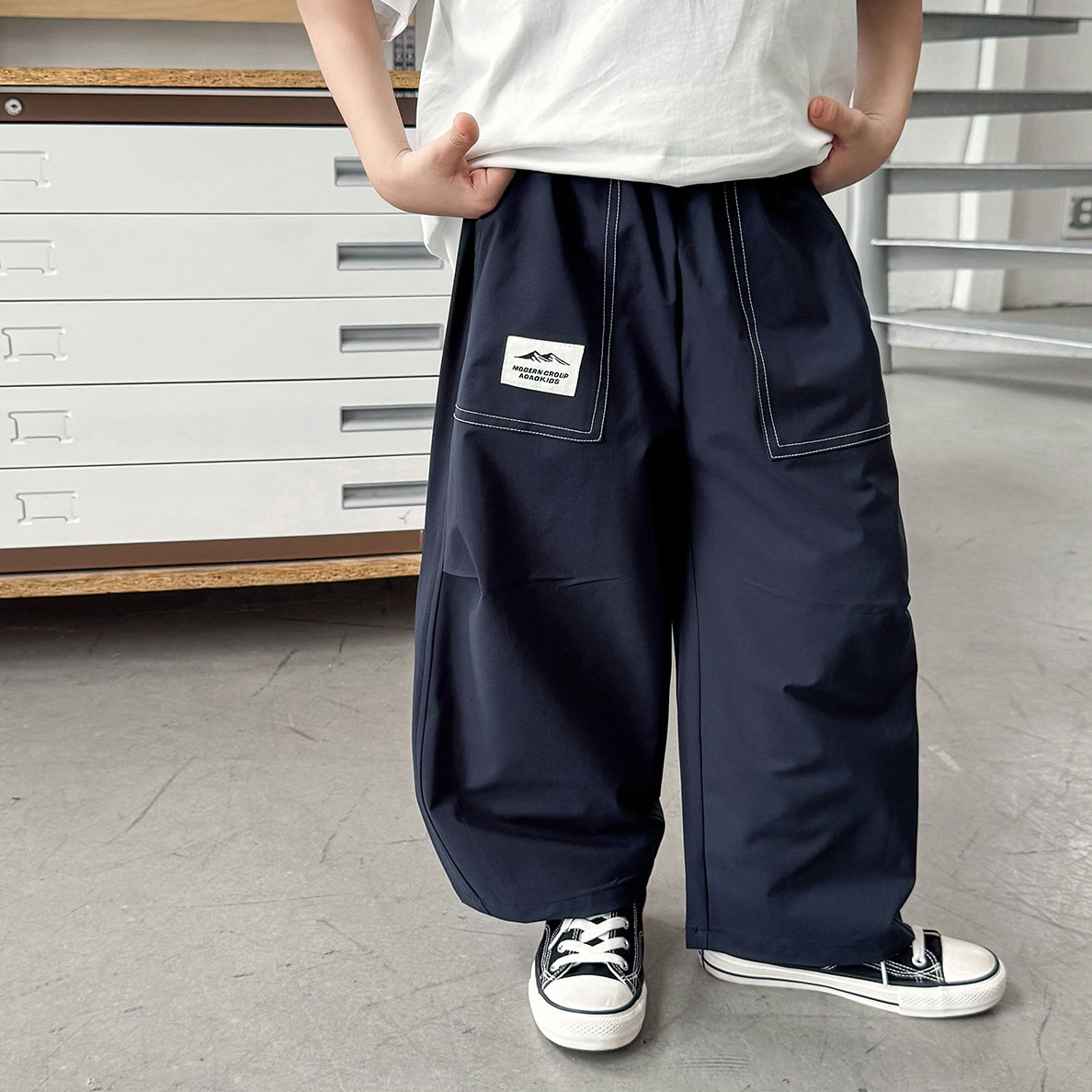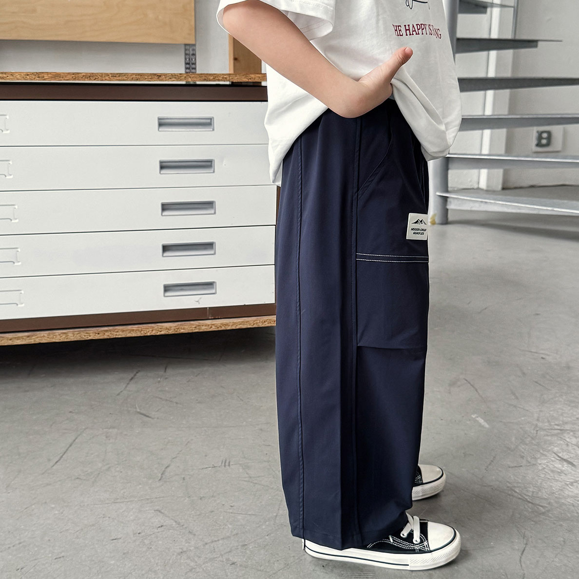 【90-150cm】ロングパンツ 男の子 アウトドア風 タグデザイン 軽量 薄手 カジュアル パンツ