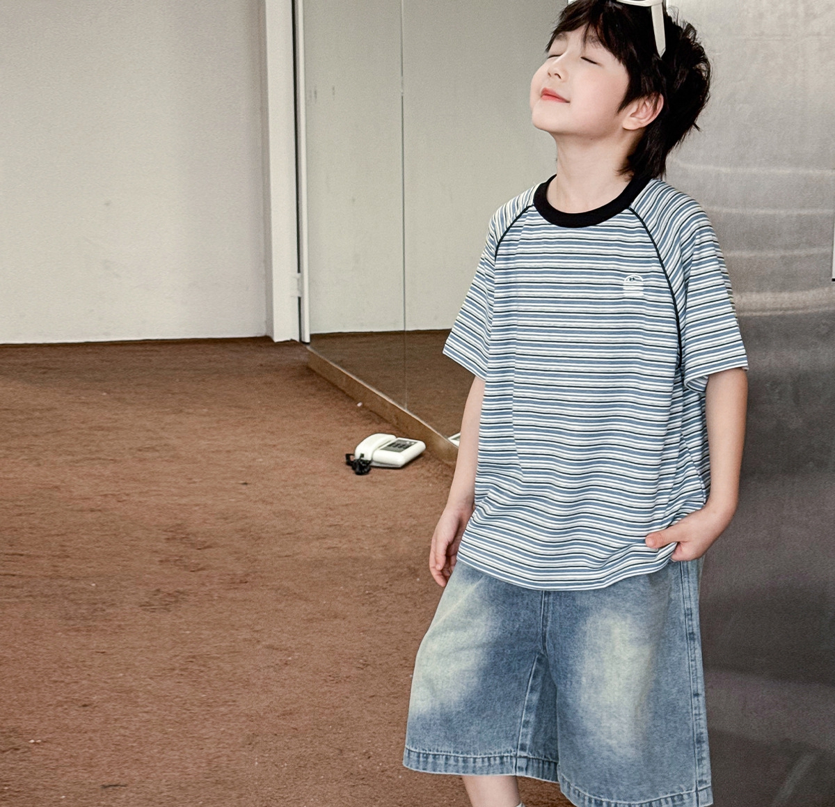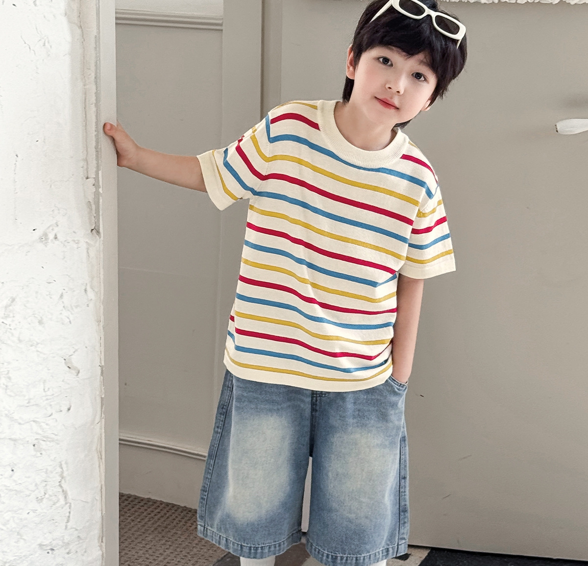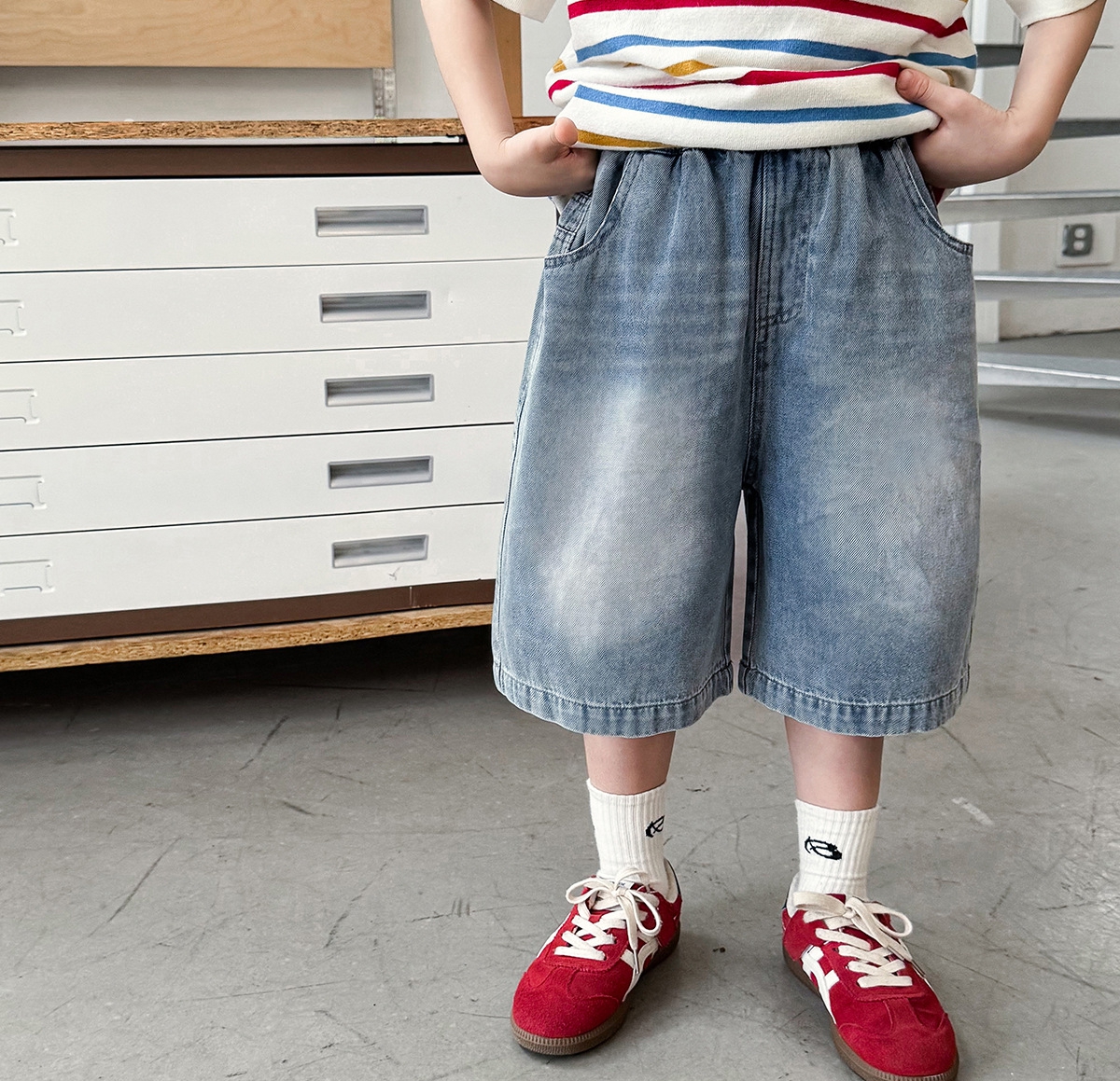 【90-150cm】デニムショートパンツ 男の子 バックポケットタグ ウォッシュ加工 カジュアル 子供服