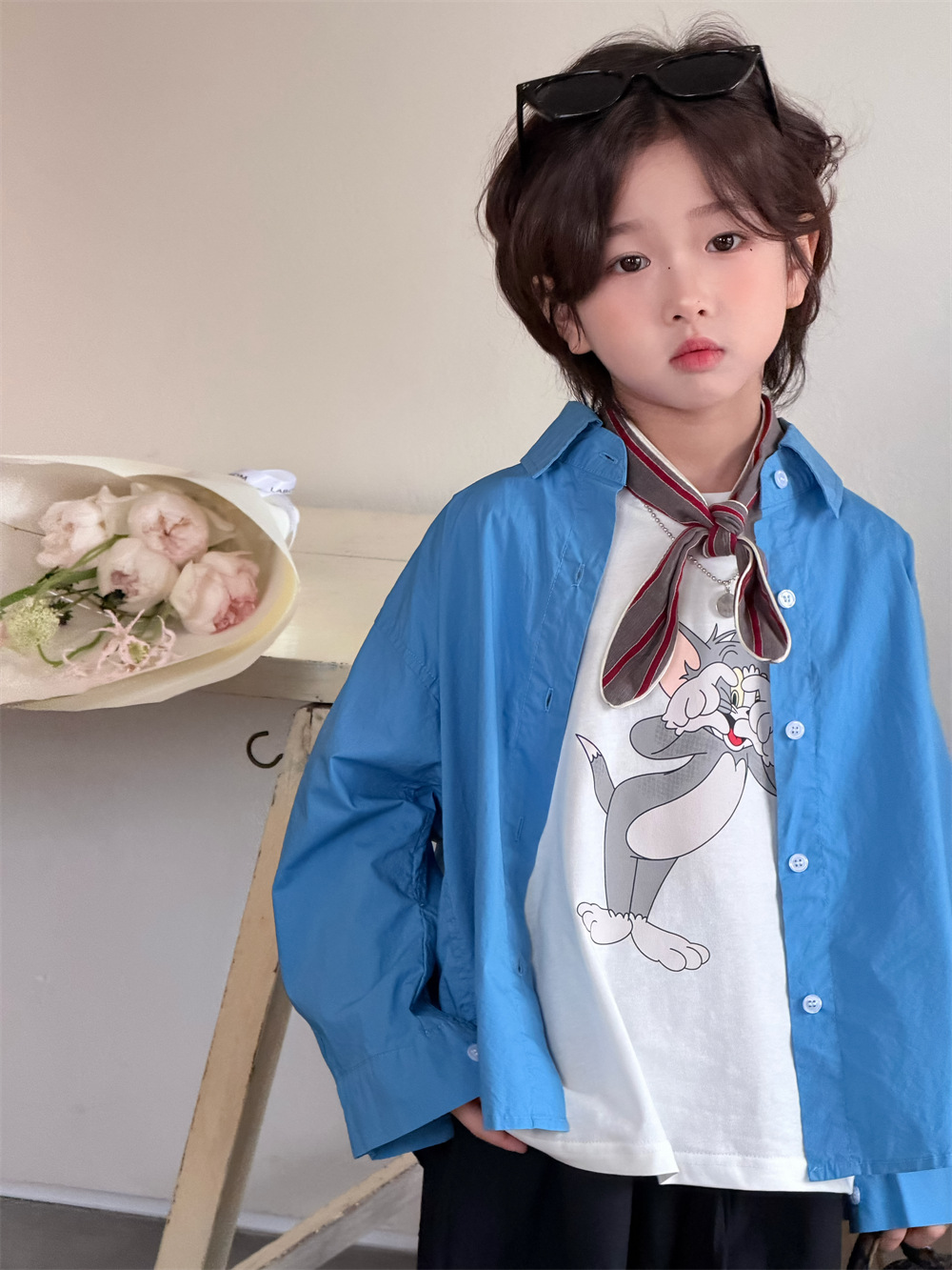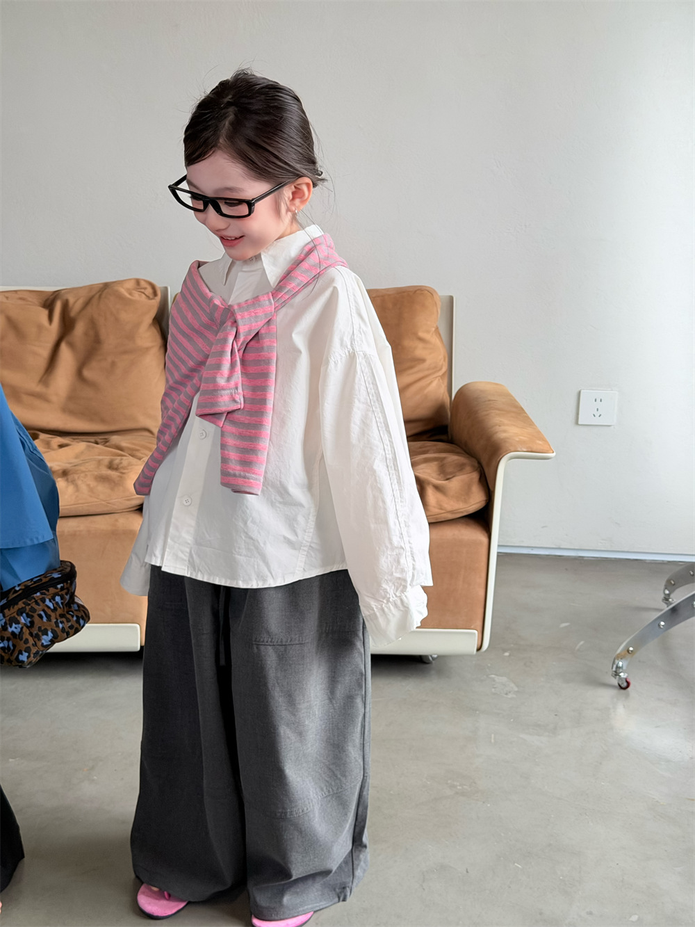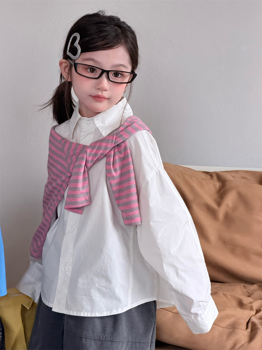 【90-150cm】シャツ 無地 折り襟 カジュアル 合わせやすい トレンド