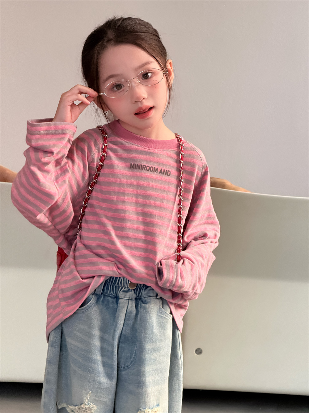 【90-150cm】Tシャツ 長袖 ボーダー ルーズ 合わせやすい トップス