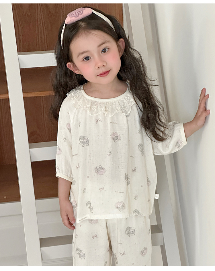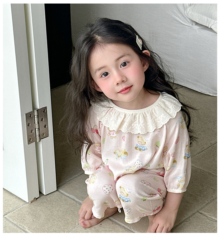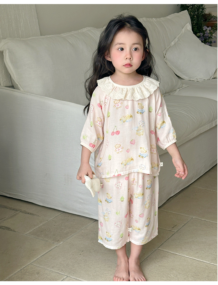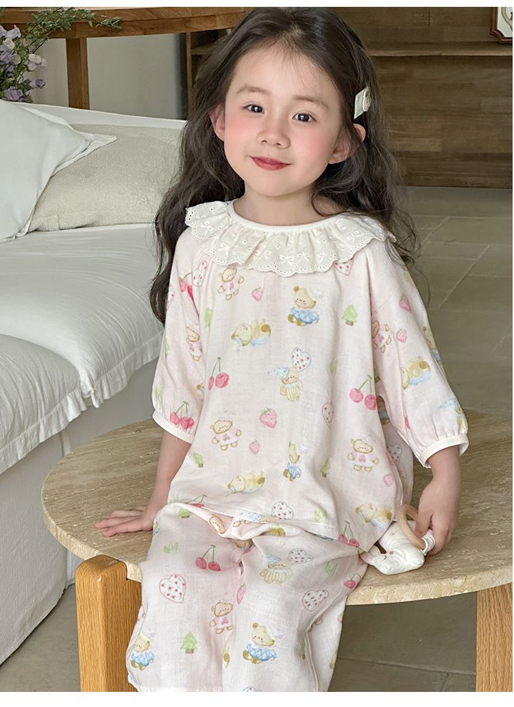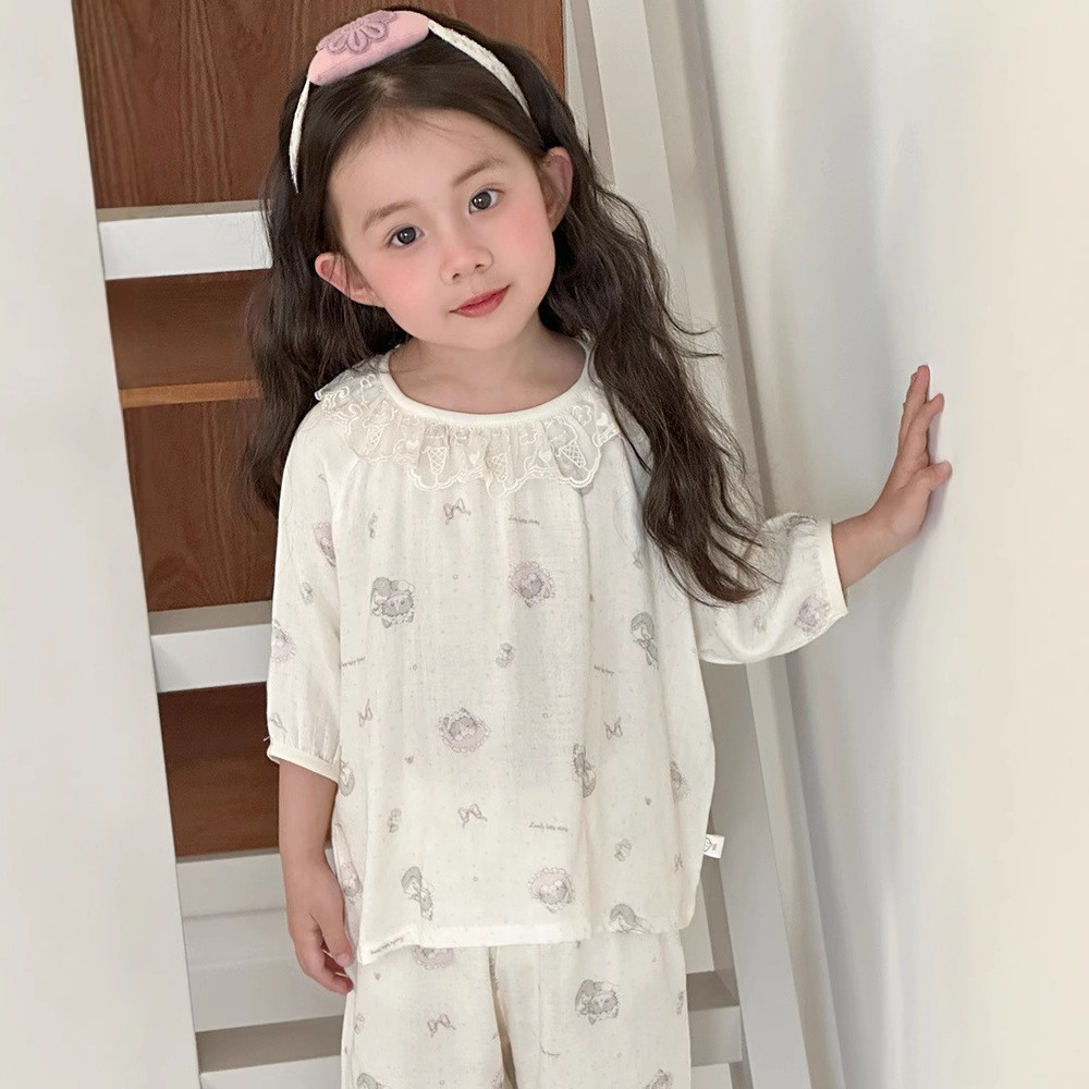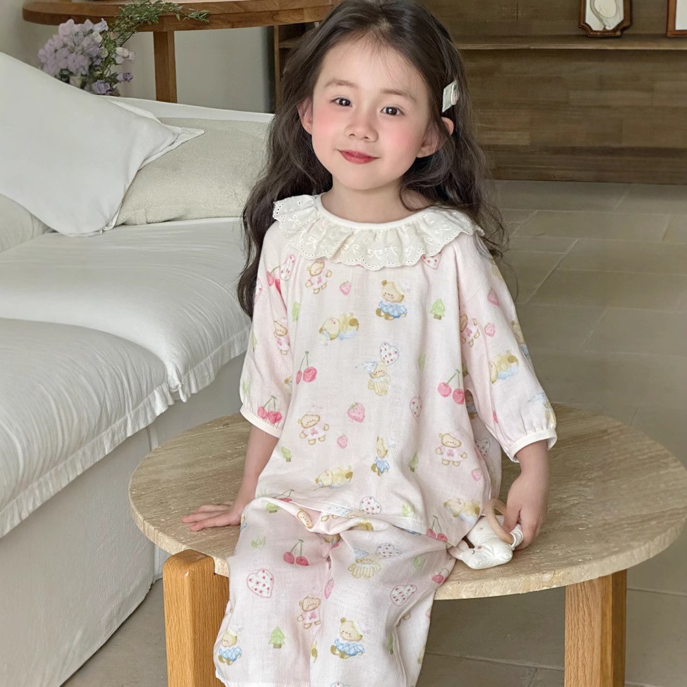 【100-160cm】パジャマ ガーゼ 女の子 ルームウェア 七分袖 上下セット エアコン対策 キッズ 部屋着