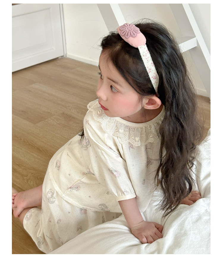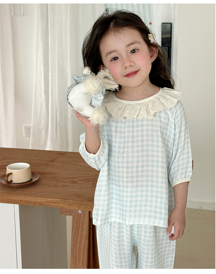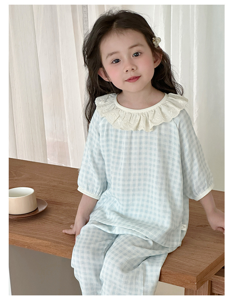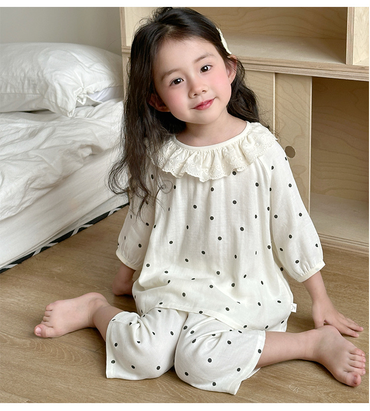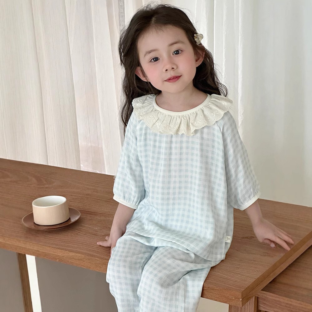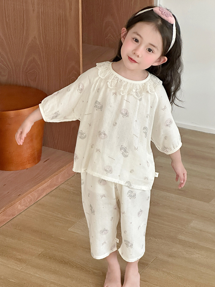 【100-160cm】パジャマ ガーゼ 女の子 ルームウェア 七分袖 上下セット エアコン対策 キッズ 部屋着