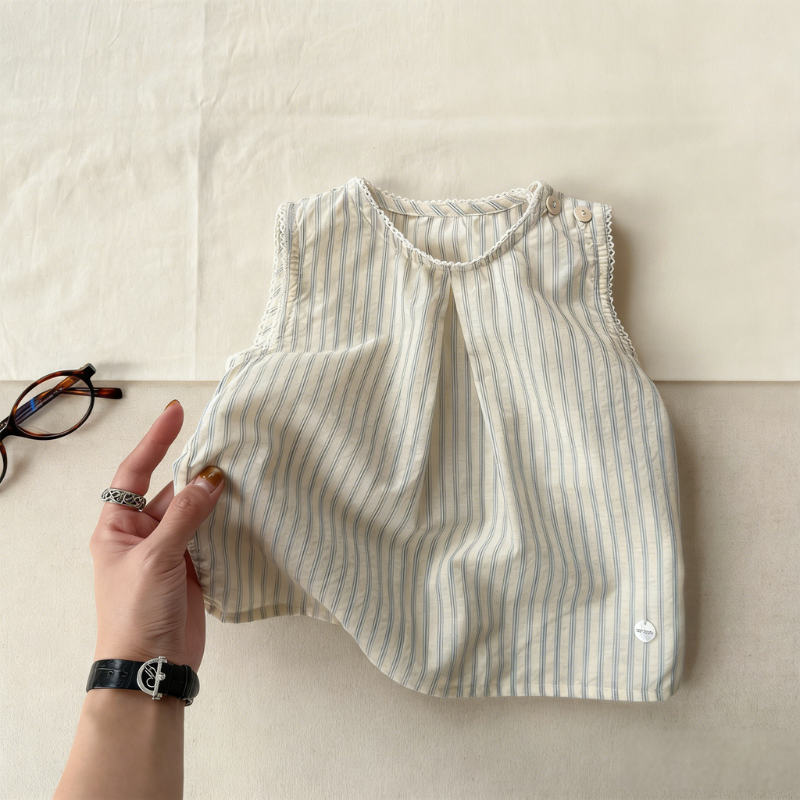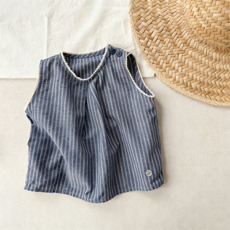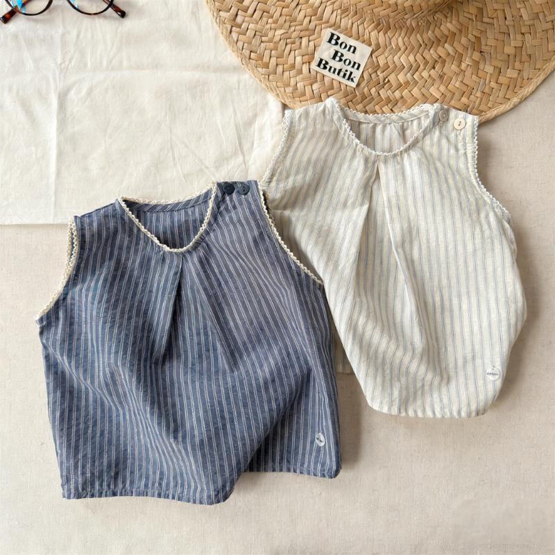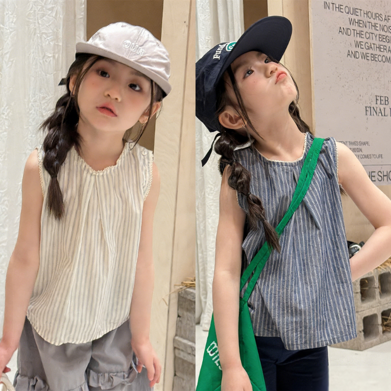 【80-130cm】トップス 女の子 ストライプ ノースリープ
