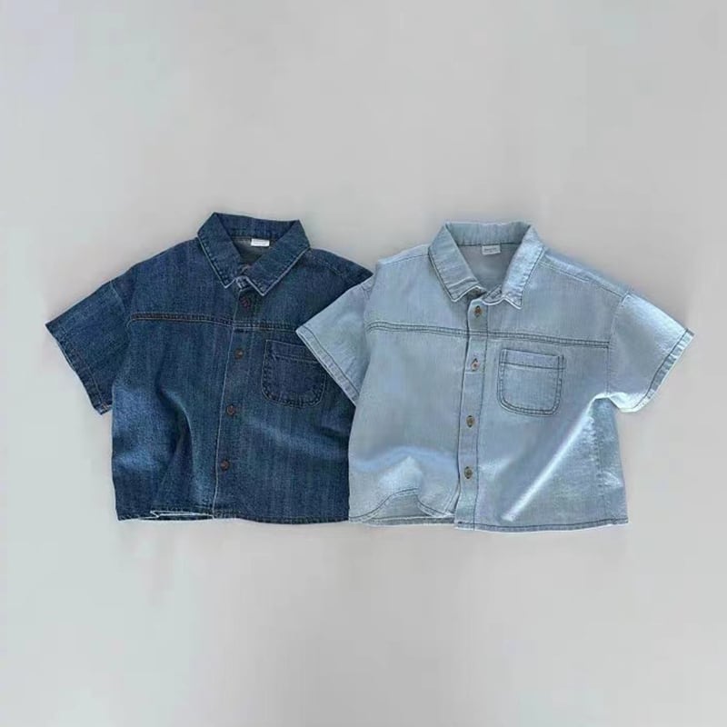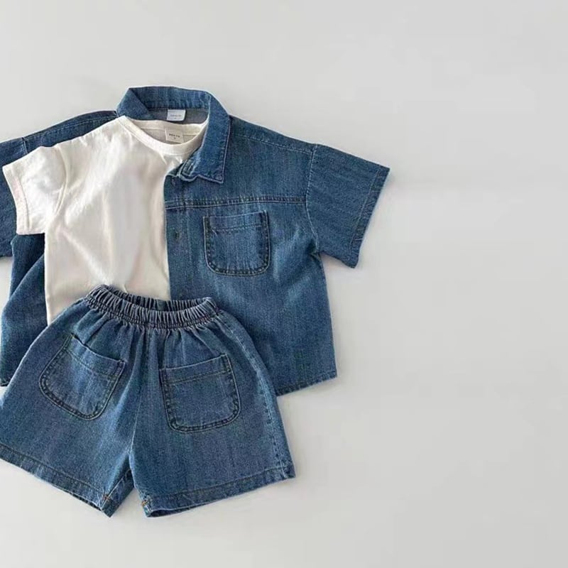【73-100cm】デニム二点セット シンプル カジュアル ルーズ セットアップ