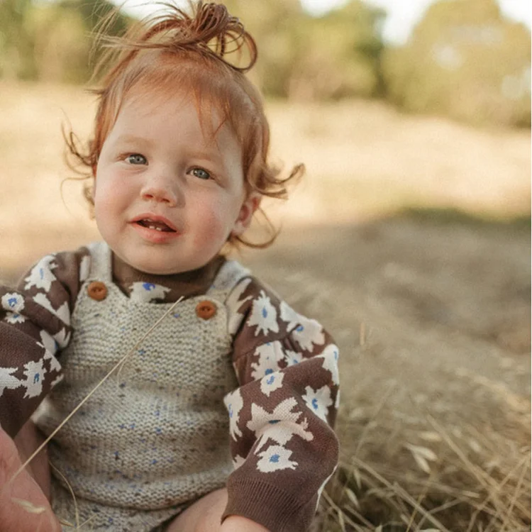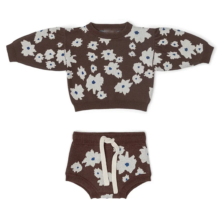 【66-90cm】 ミニマリズム 花柄 ニット セーター &ショート パンツ セット