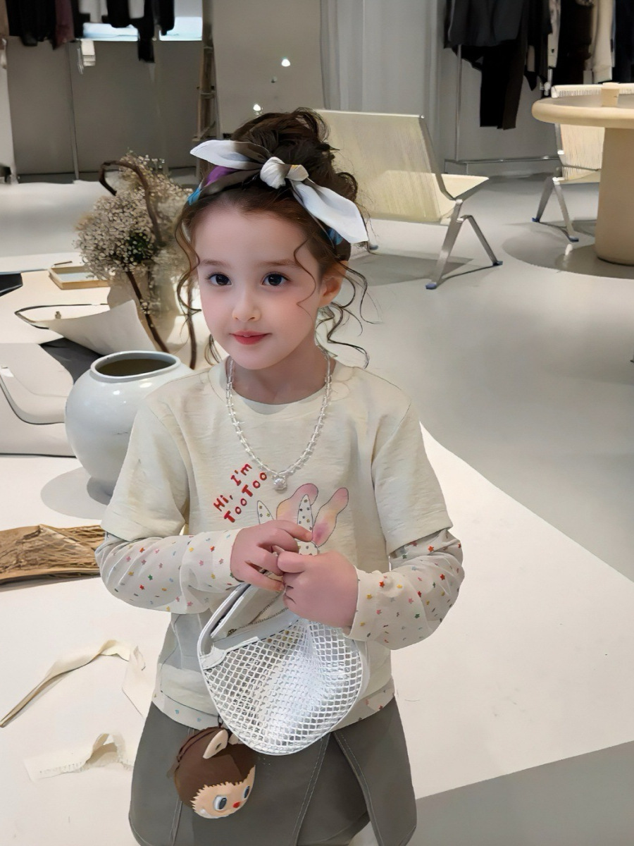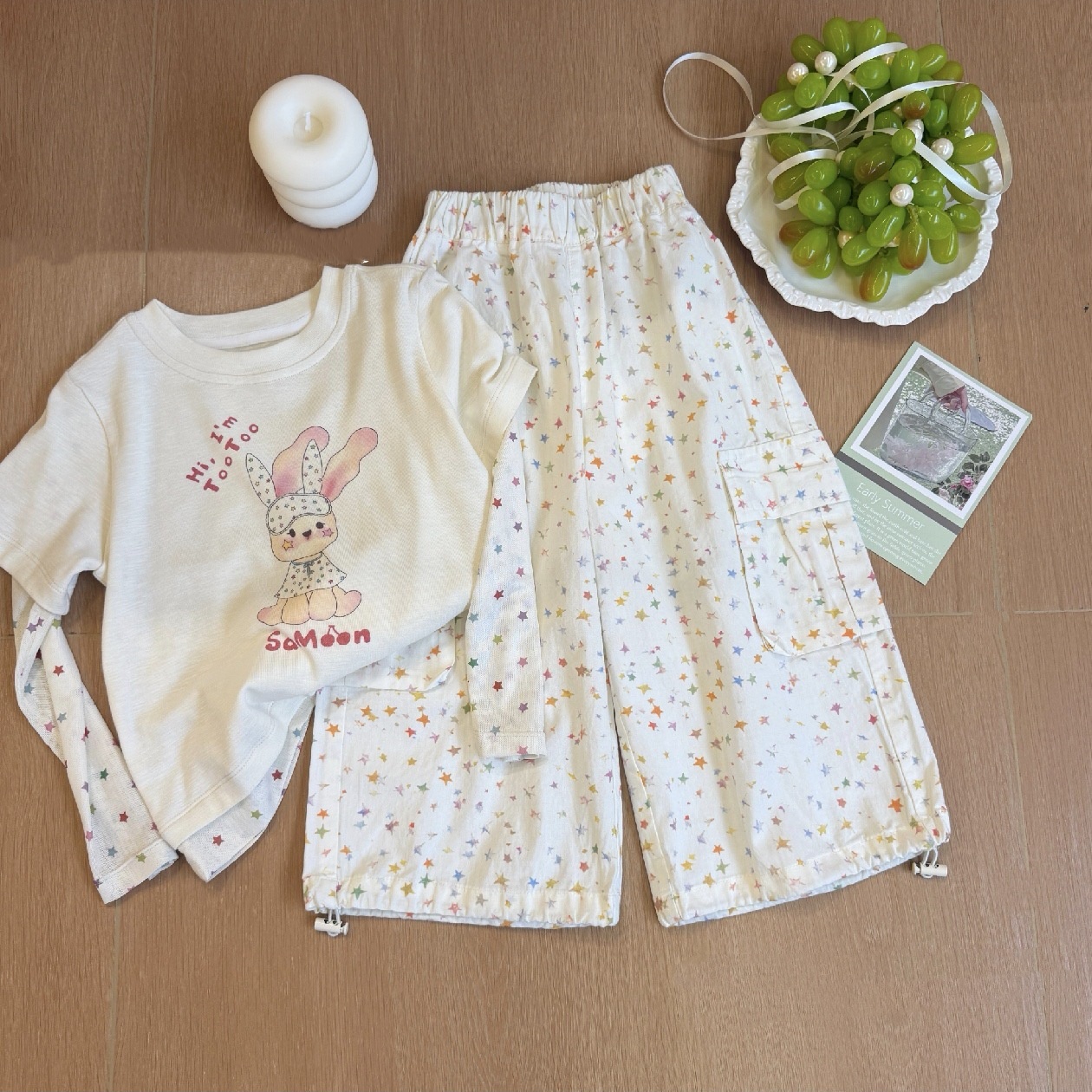 【90-150cm】レイヤードTシャツ or カーゴパンツ 女の子 うさぎ柄 星柄