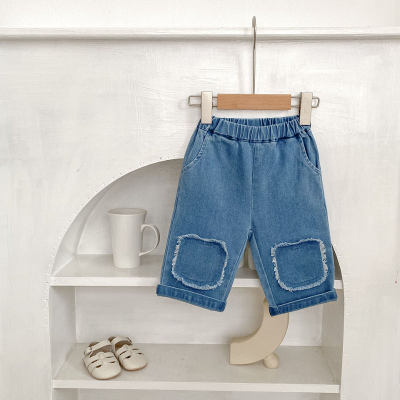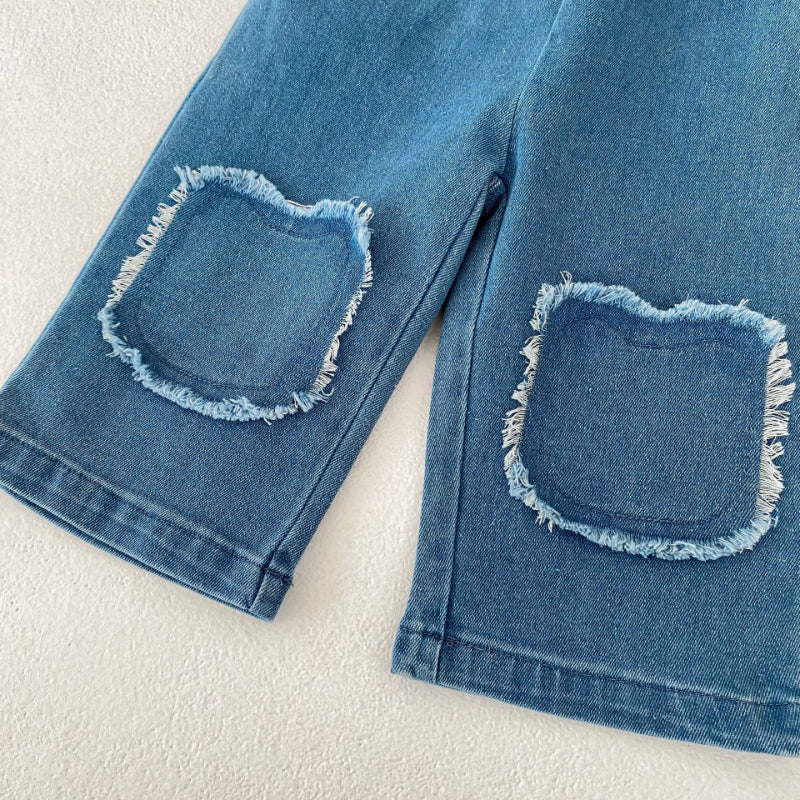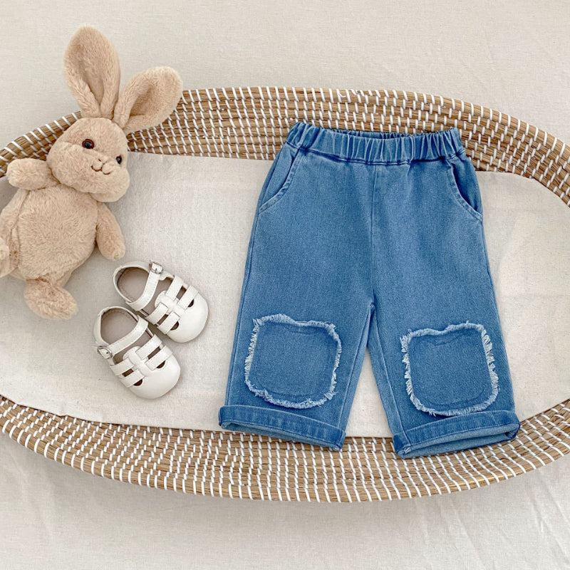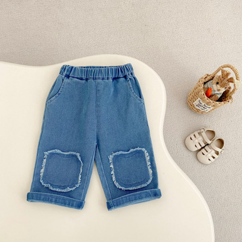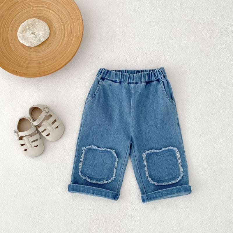【73-110cm】フリンジ ストレート デニムパンツ