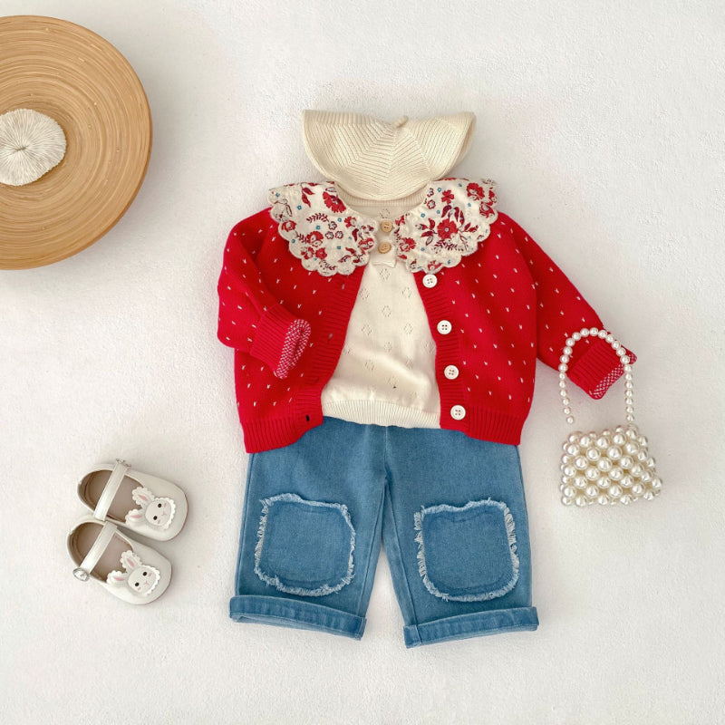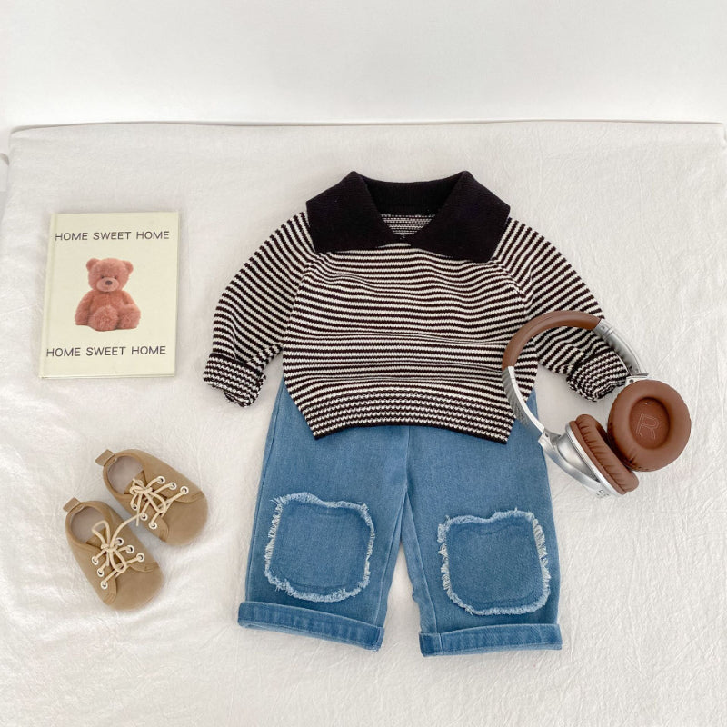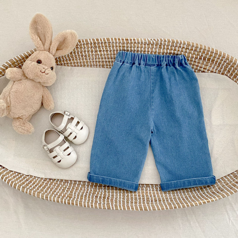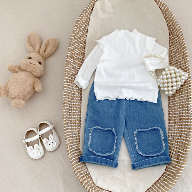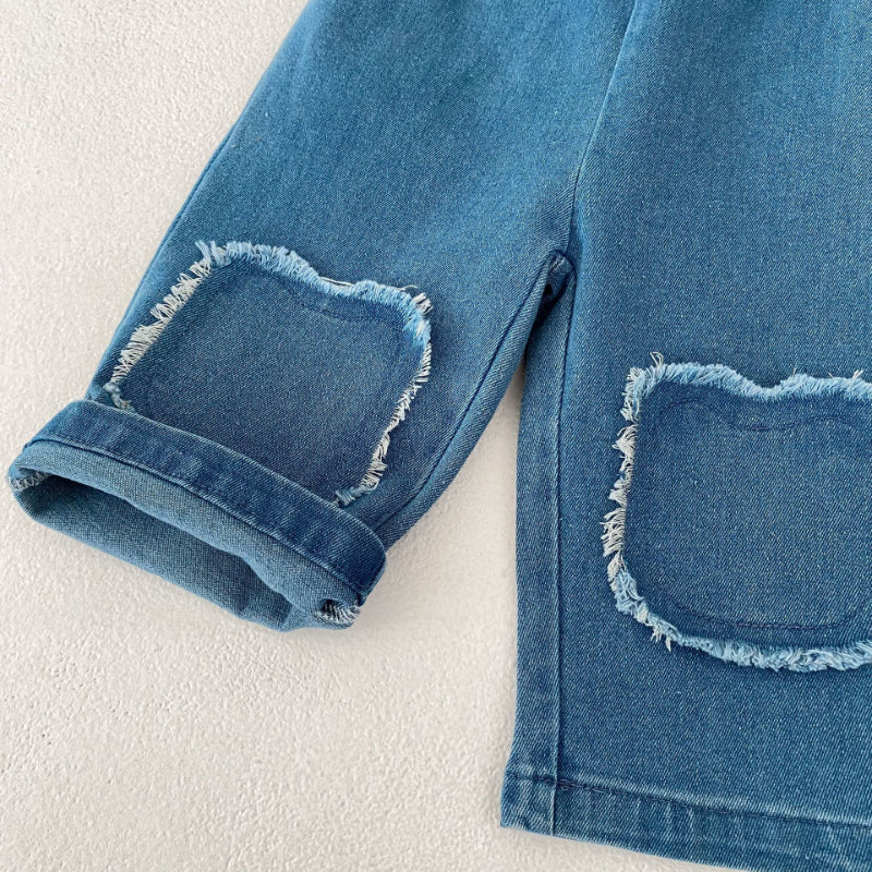 【73-110cm】フリンジ ストレート デニムパンツ