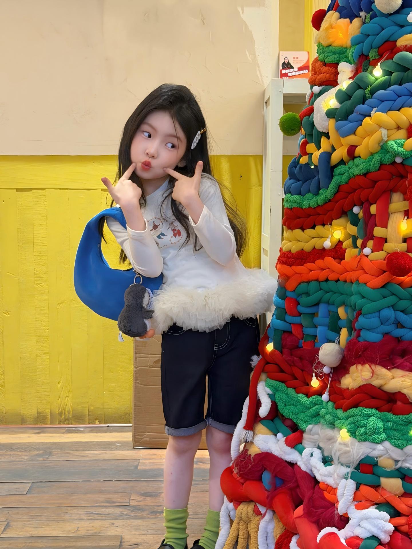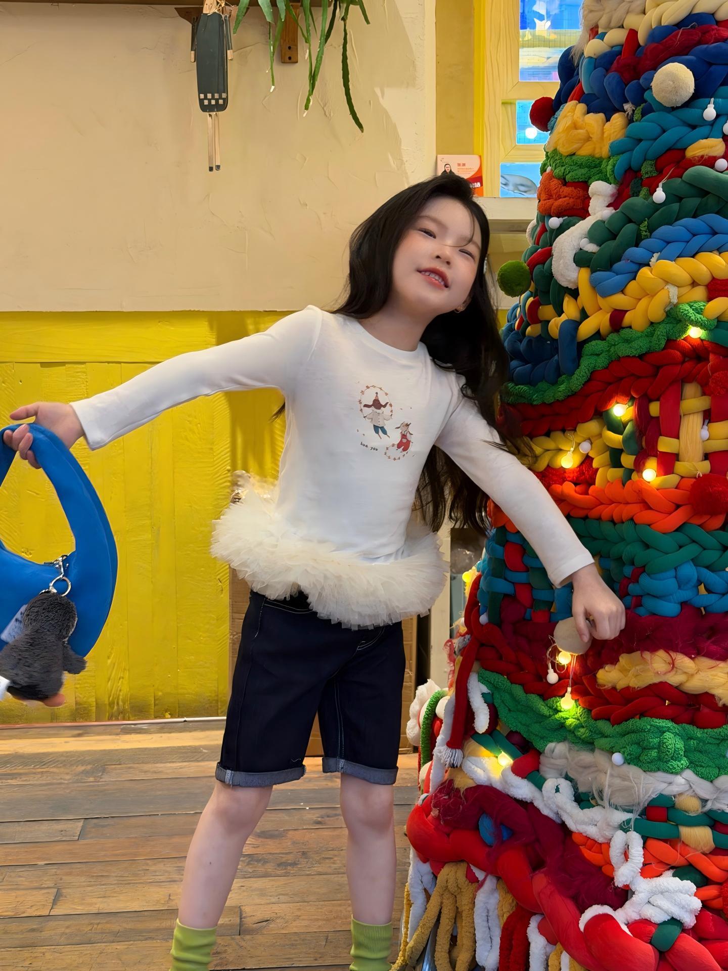 【90-140cm】トップス or デニムハーフパンツ 女の子 チュール切替 可愛い