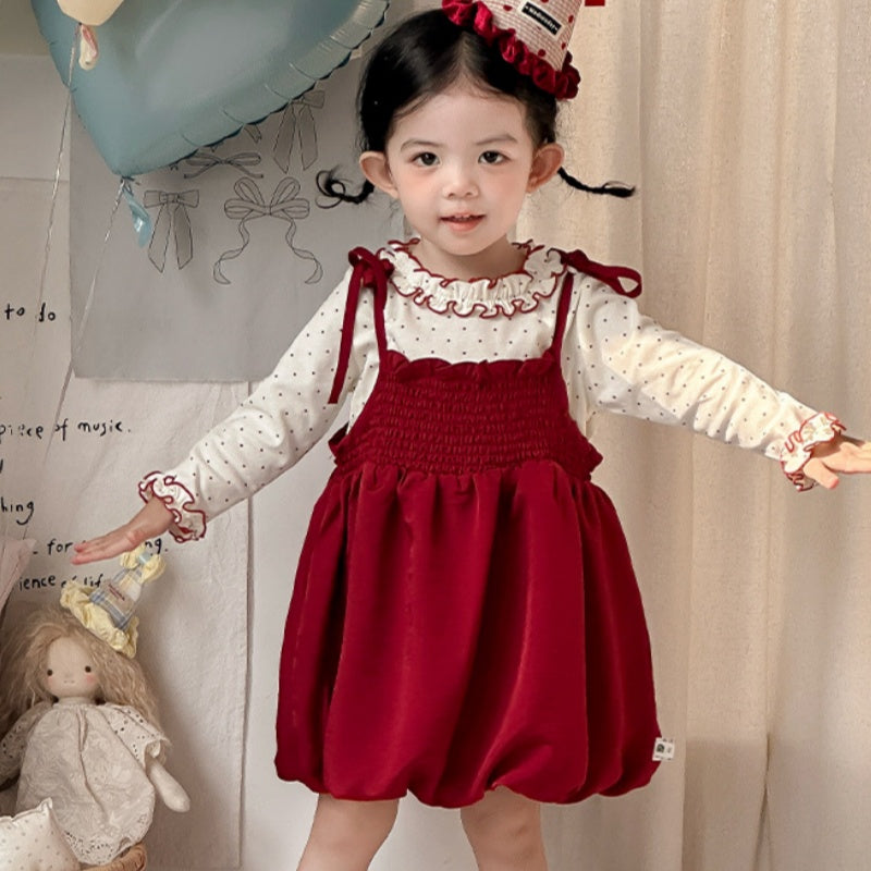 【73-100cm】リボンキャミワンピース&;ドット長袖トップス