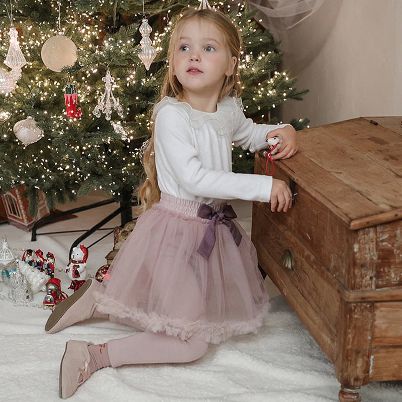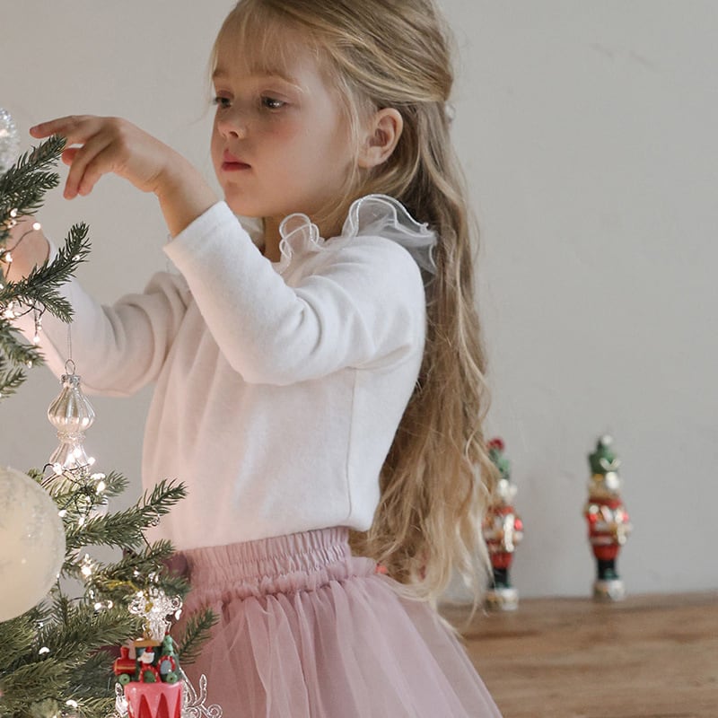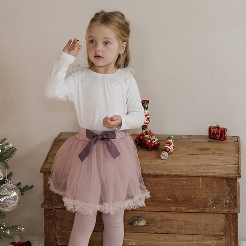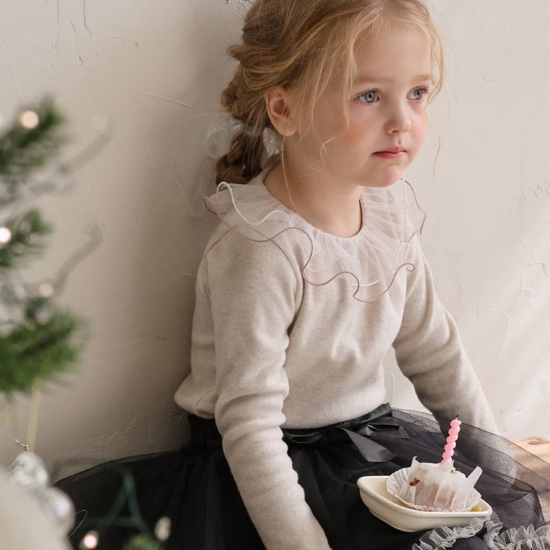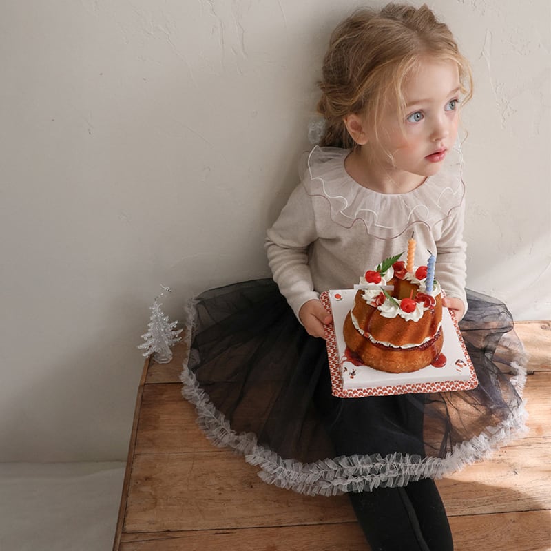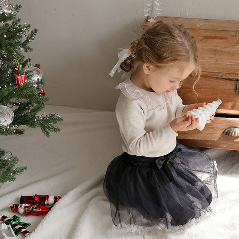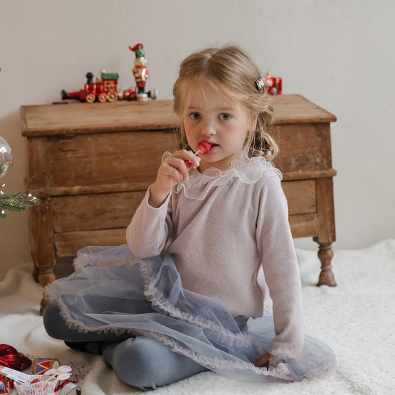 【90-150cm】インナーシャツ チュール フリル襟 トップス