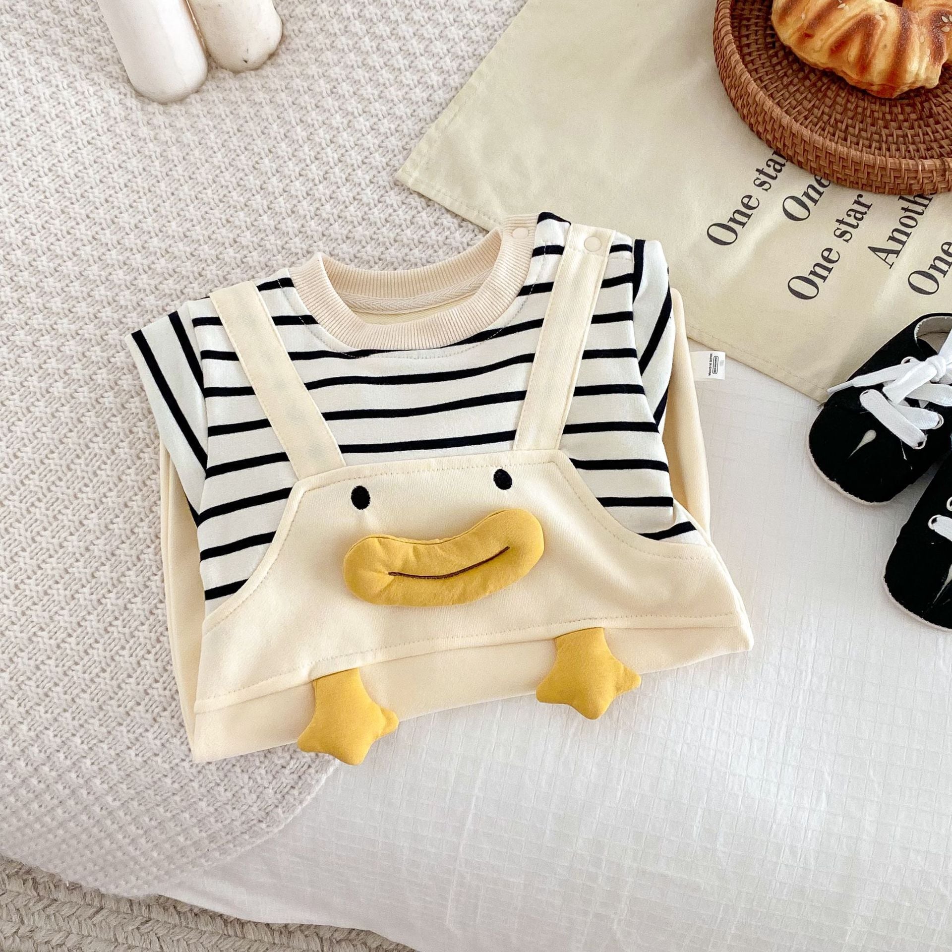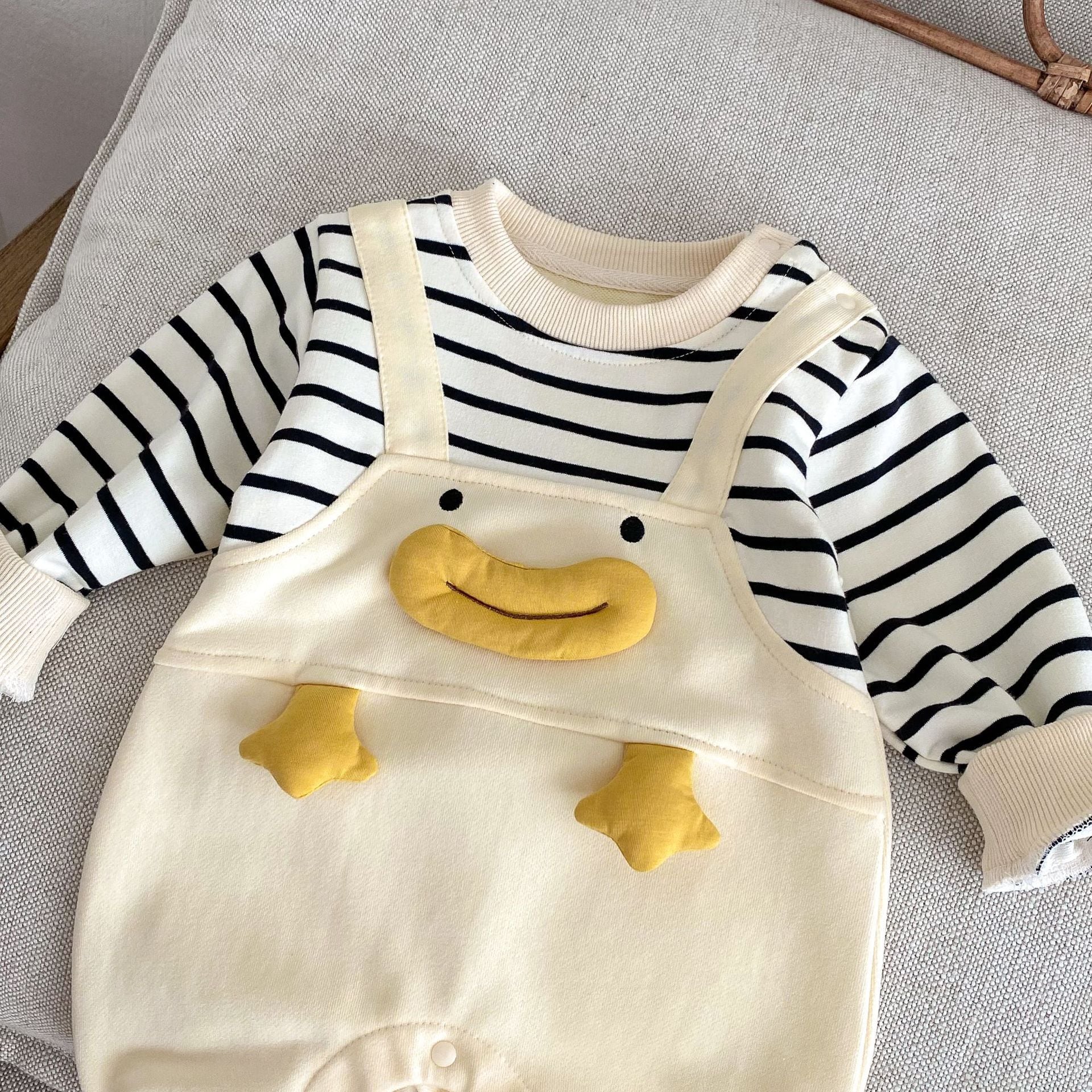 【66-90cm】ロンパース レイヤード ダックボーダー