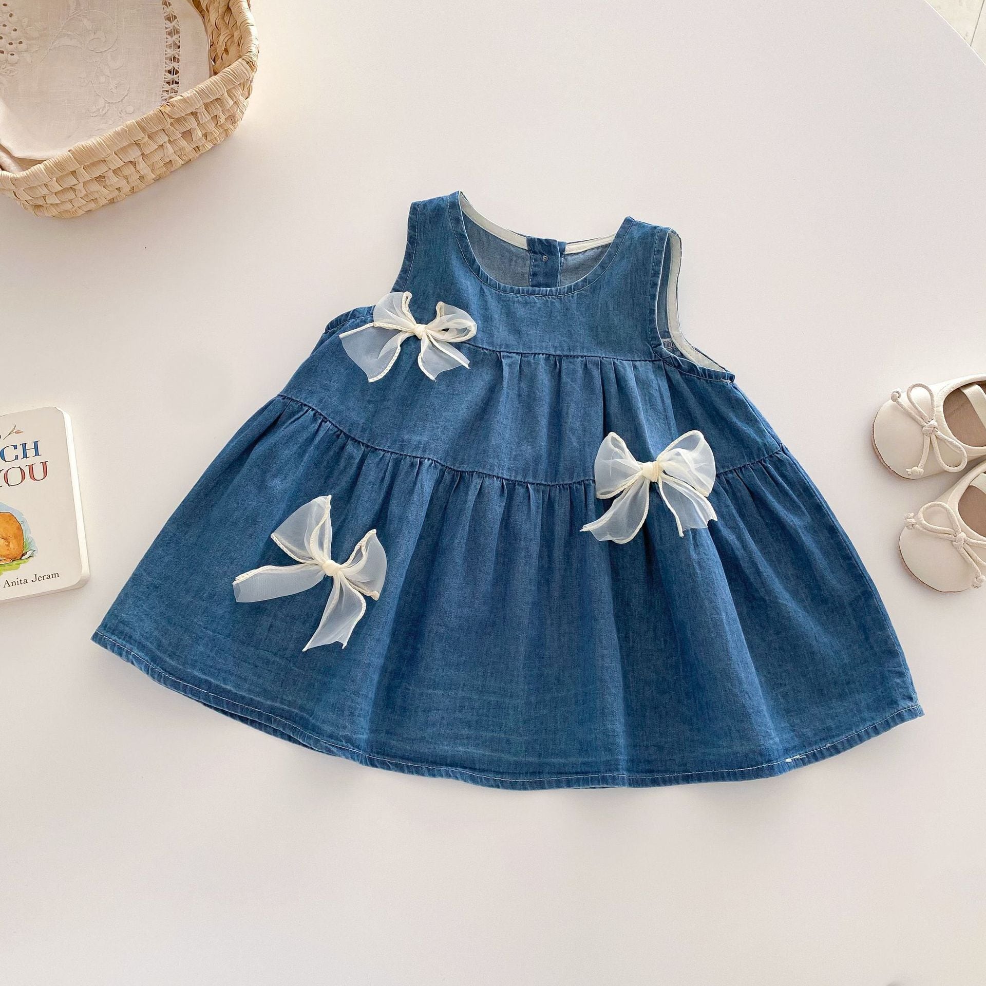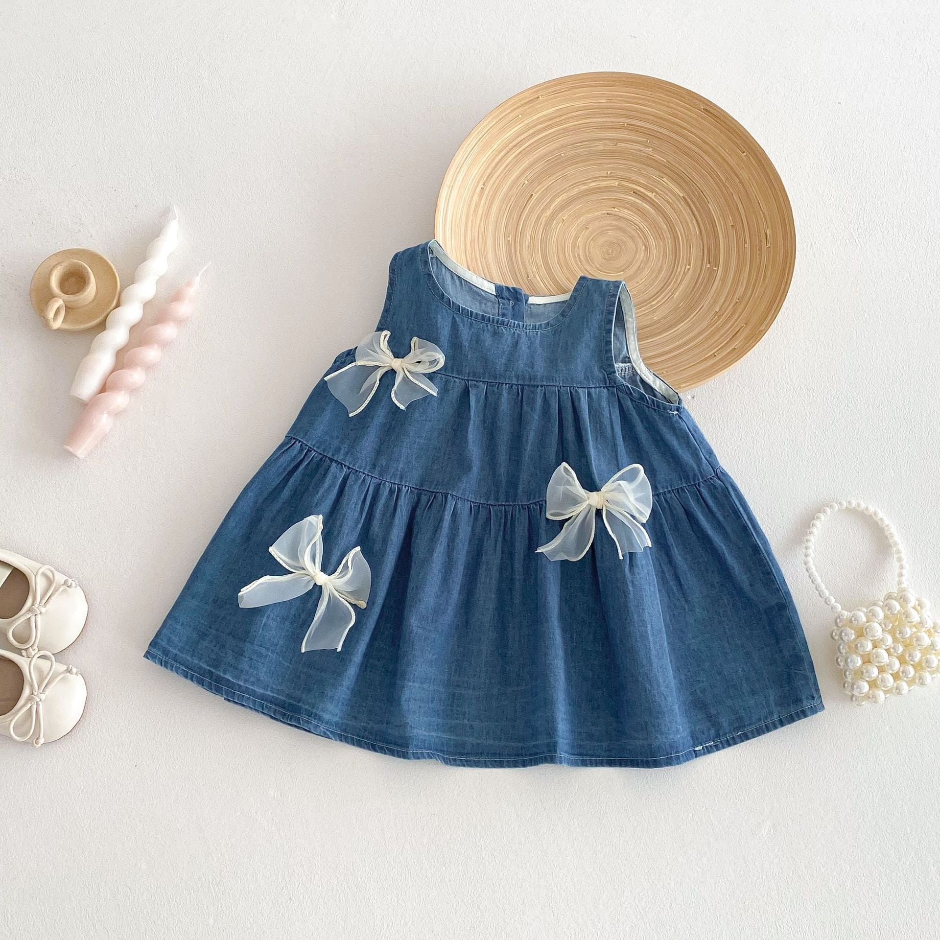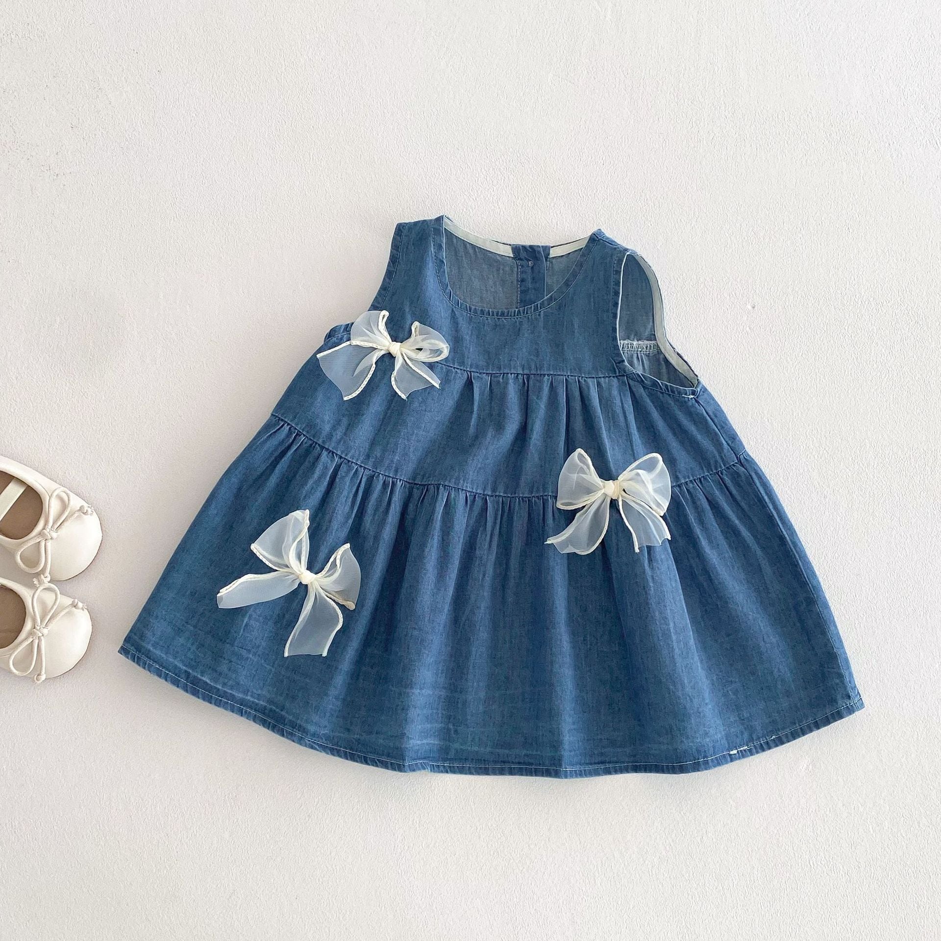 【73-120cm】デニムワンピース 蝶結び付き おしゃれ 可愛い