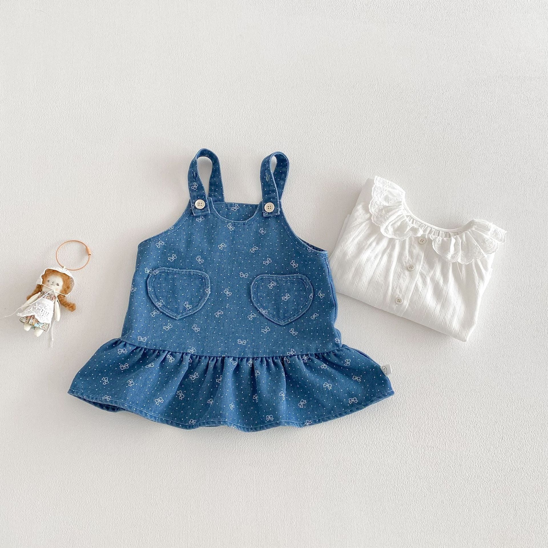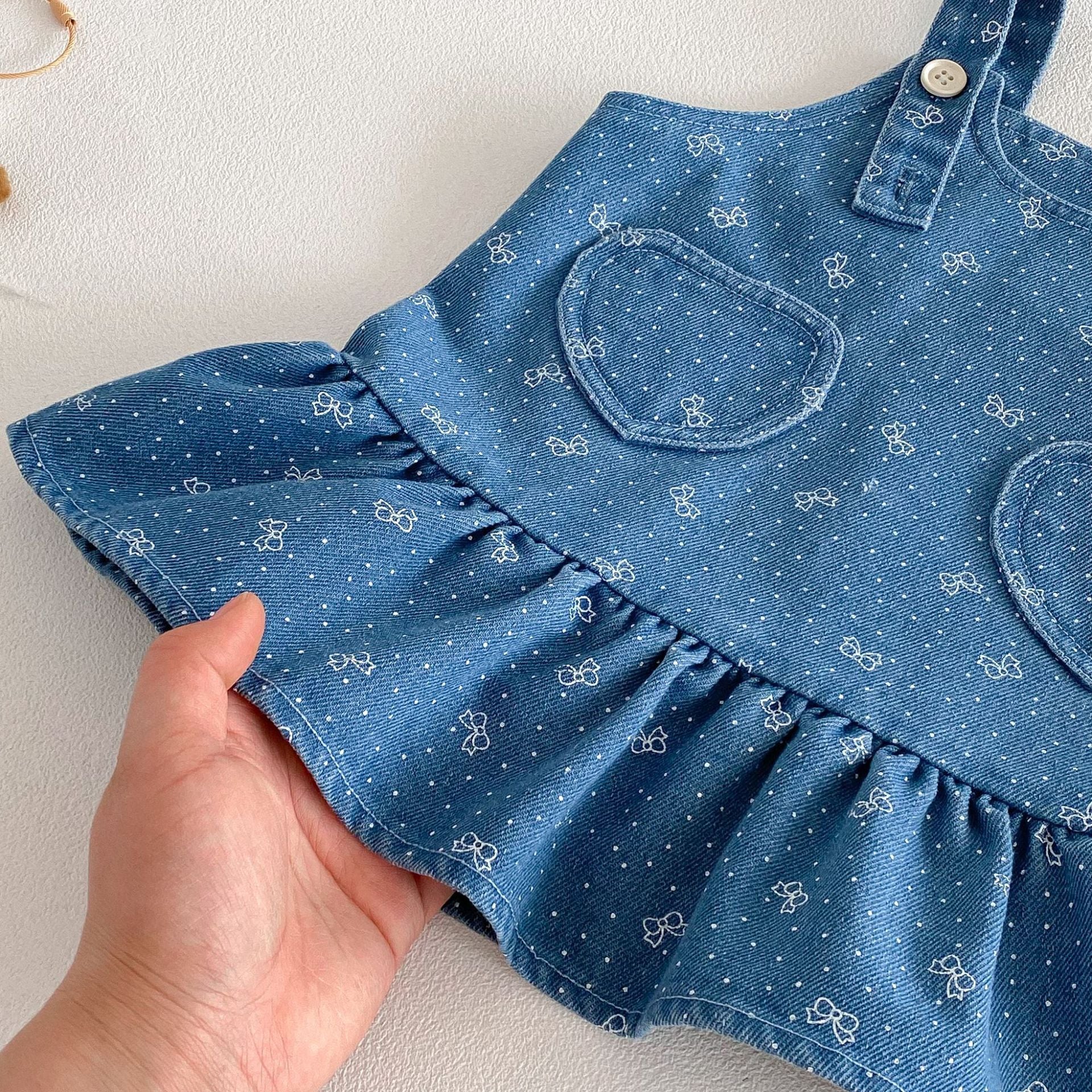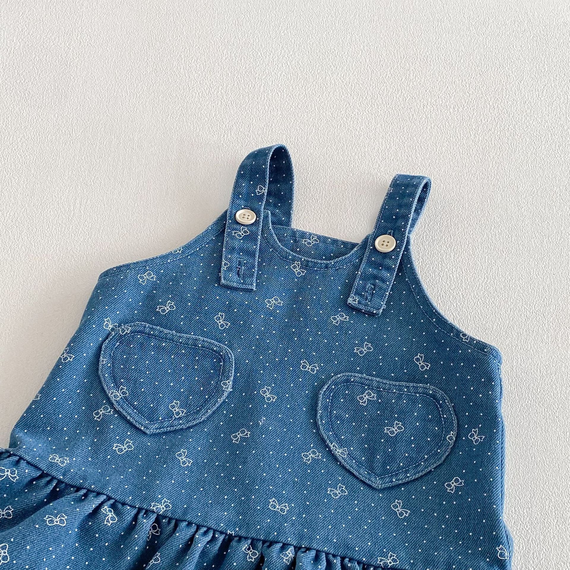 【73-110cm】ワンピース デニム ハート 蝶結び おしゃれ 女の子