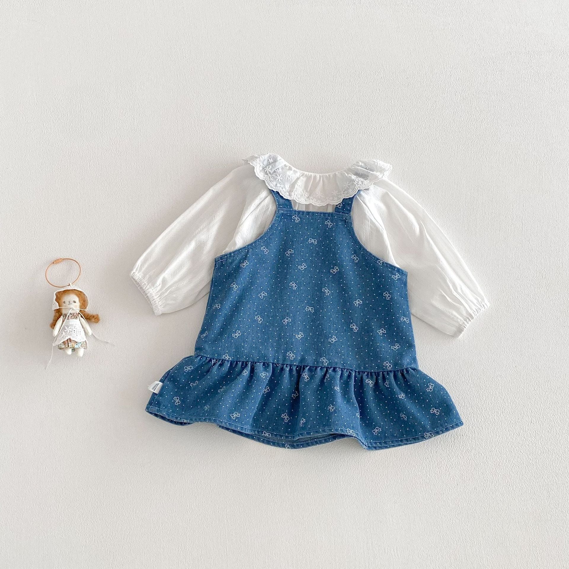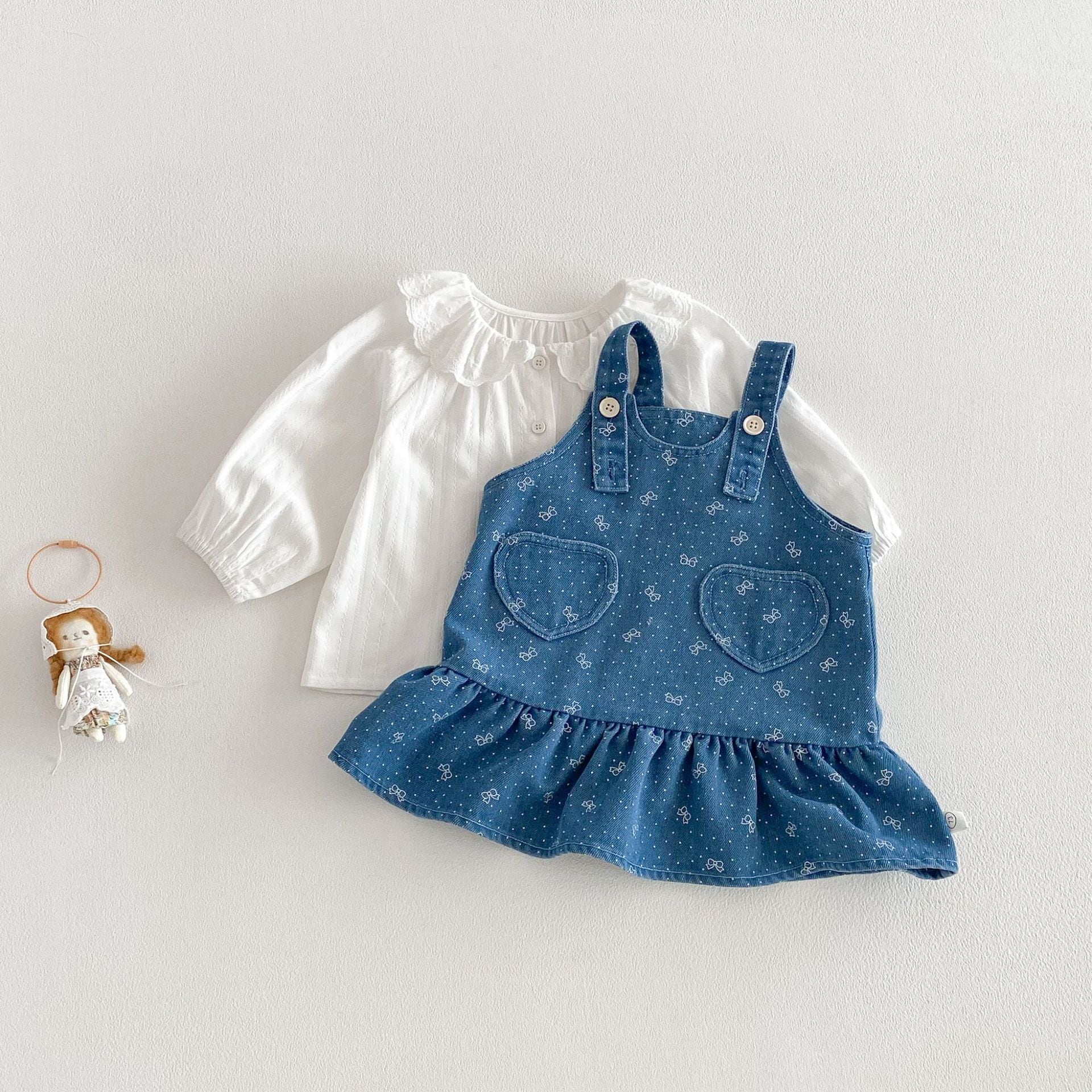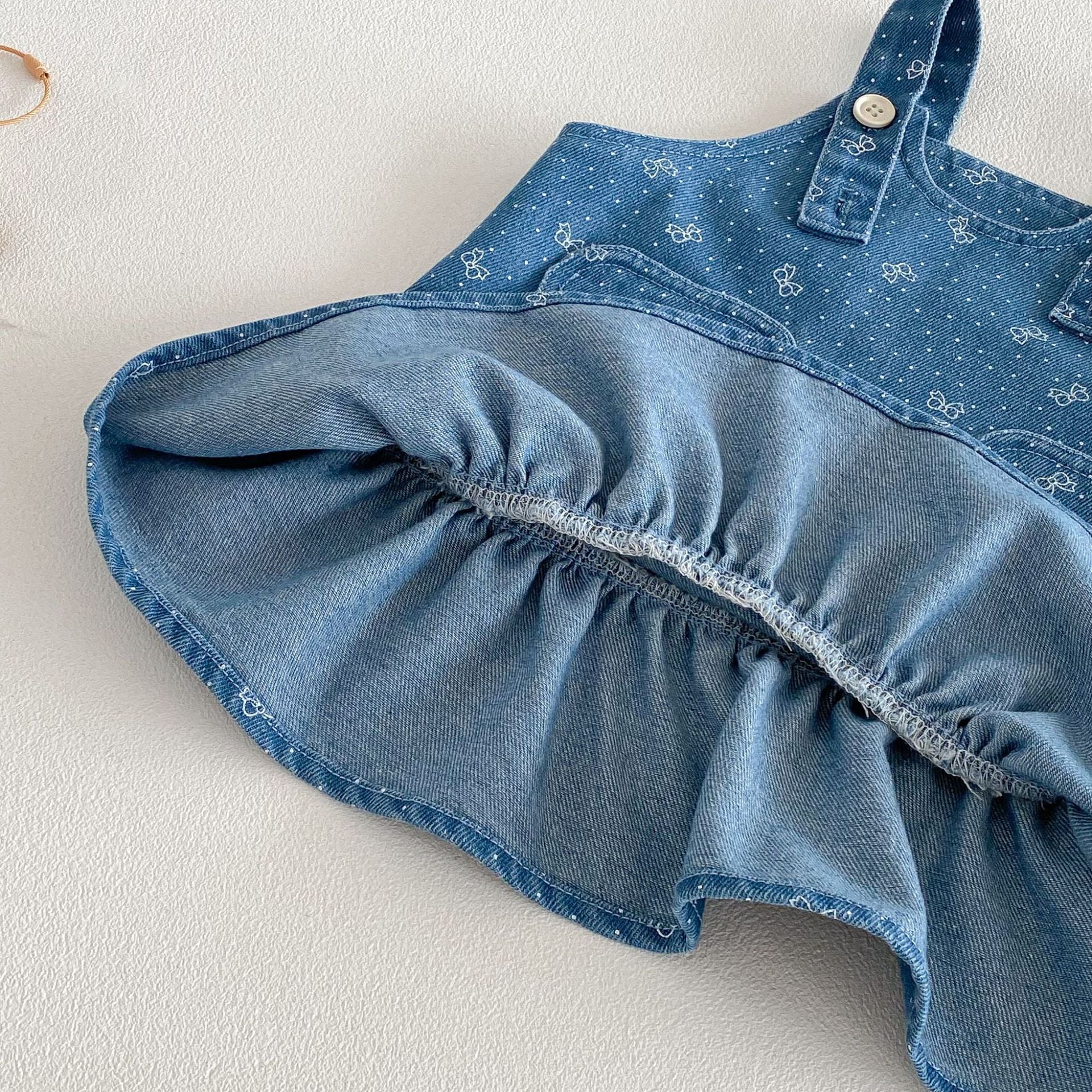 【73-110cm】ワンピース デニム ハート 蝶結び おしゃれ 女の子