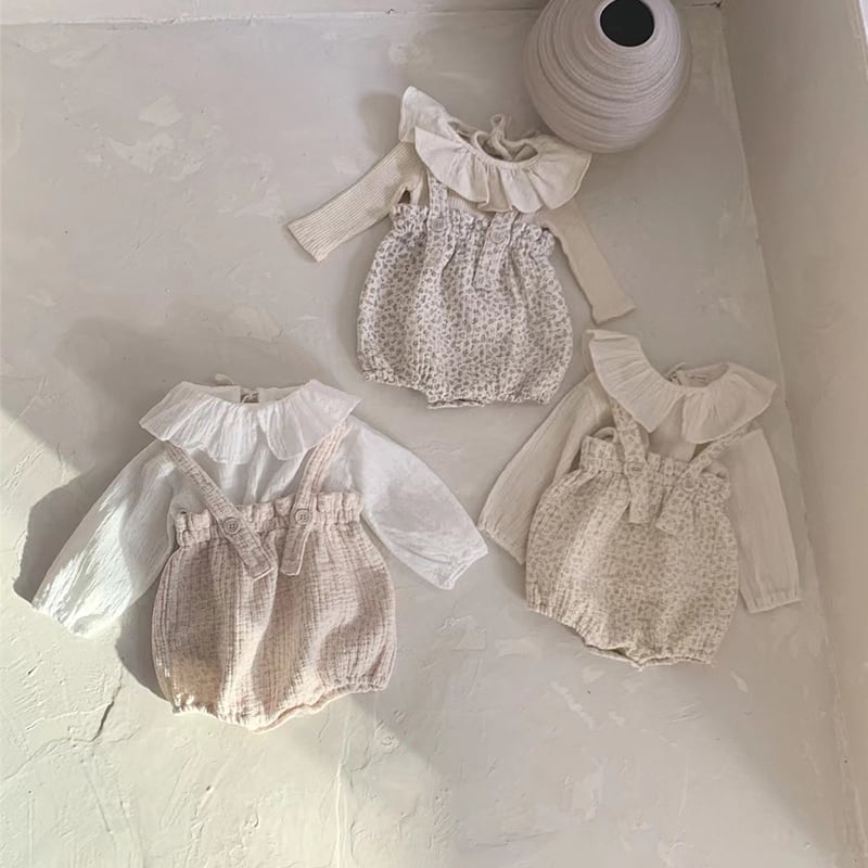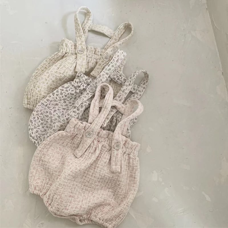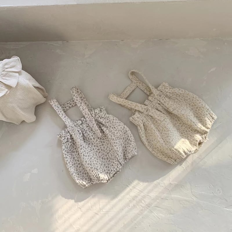 【66-90cm】サロペット フラワー柄 ロンパース 可愛い ディリー
