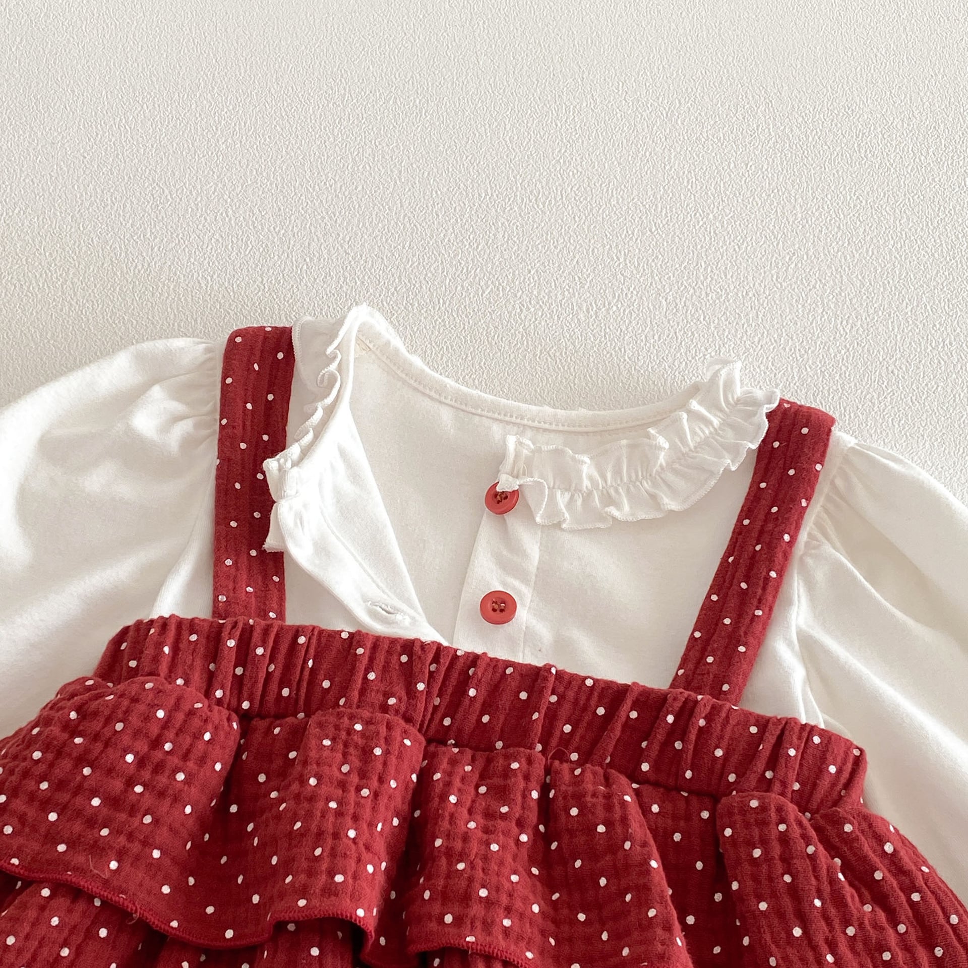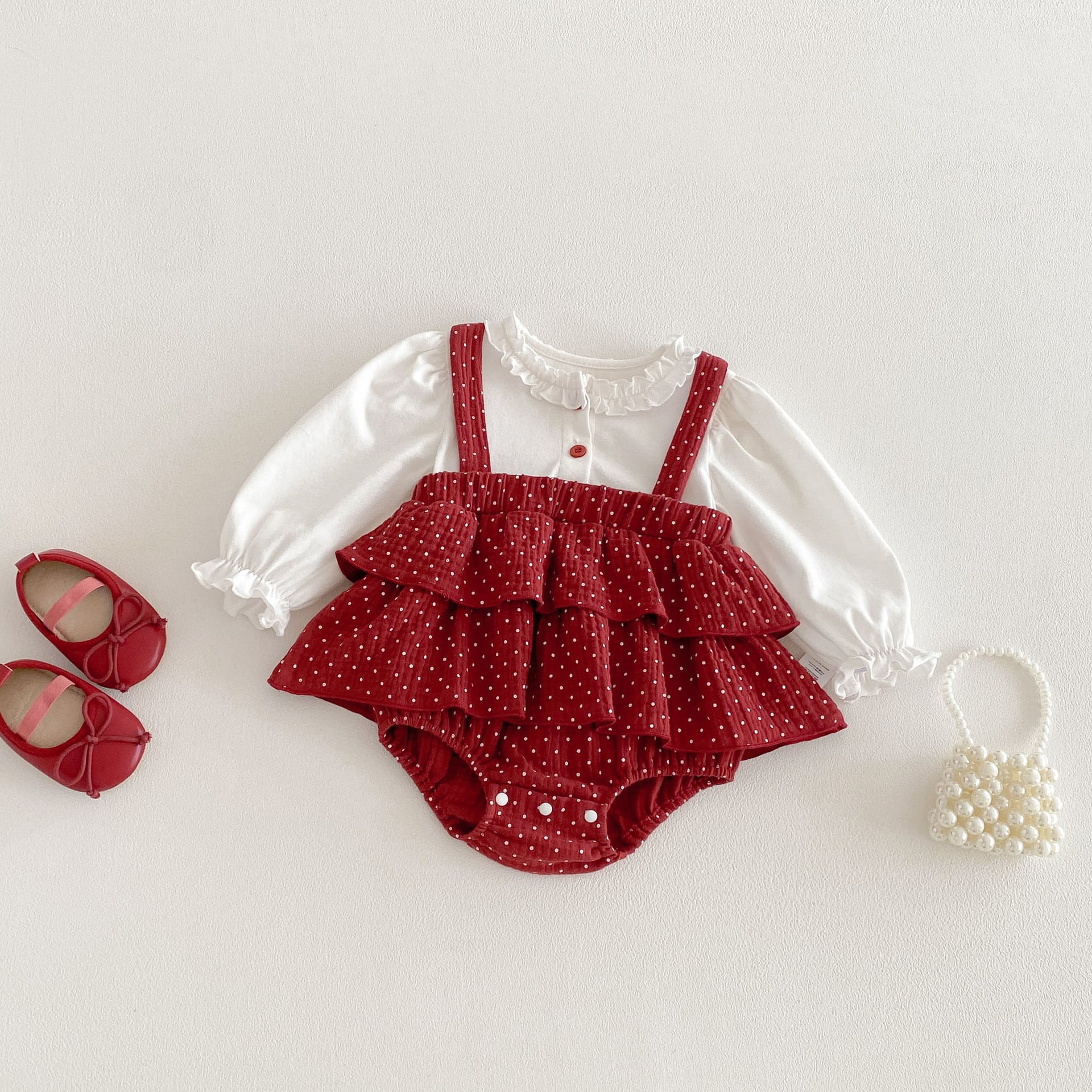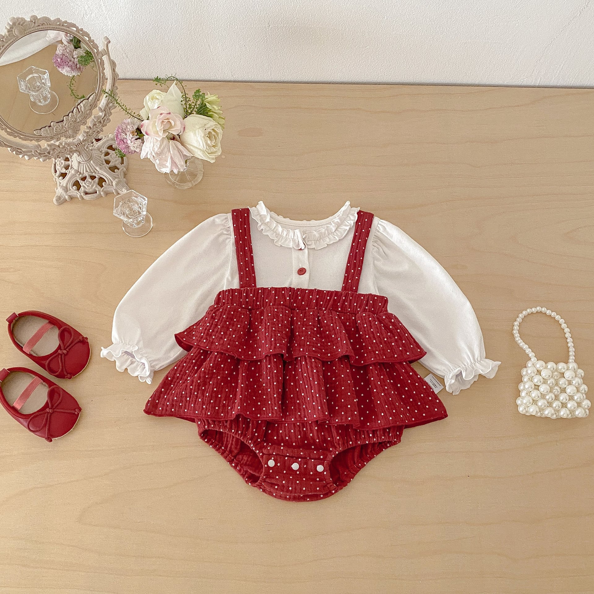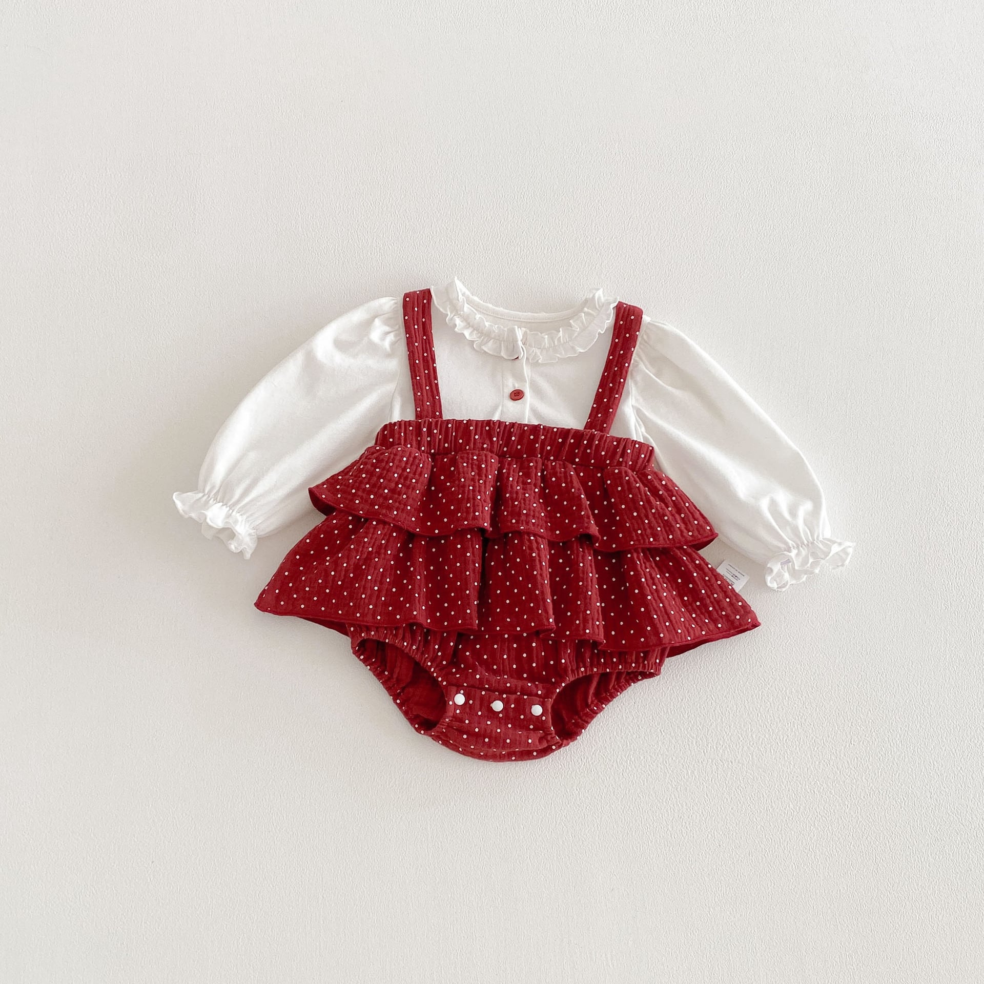 【66-90cm】ロンパース レイヤード ドット レッド 可愛い ベビー服