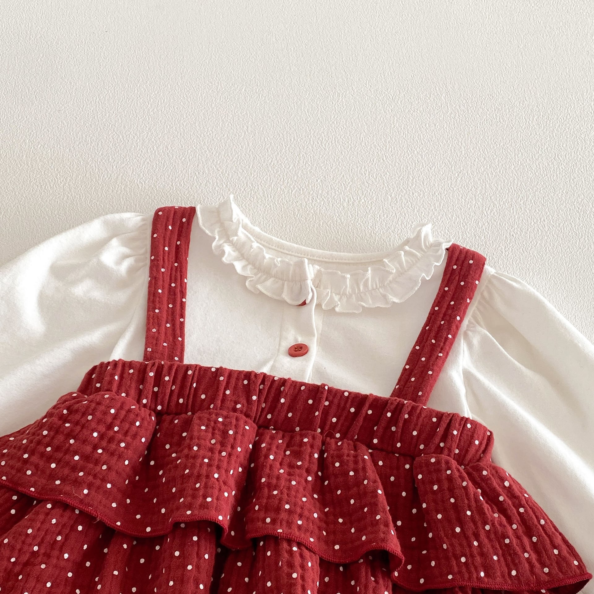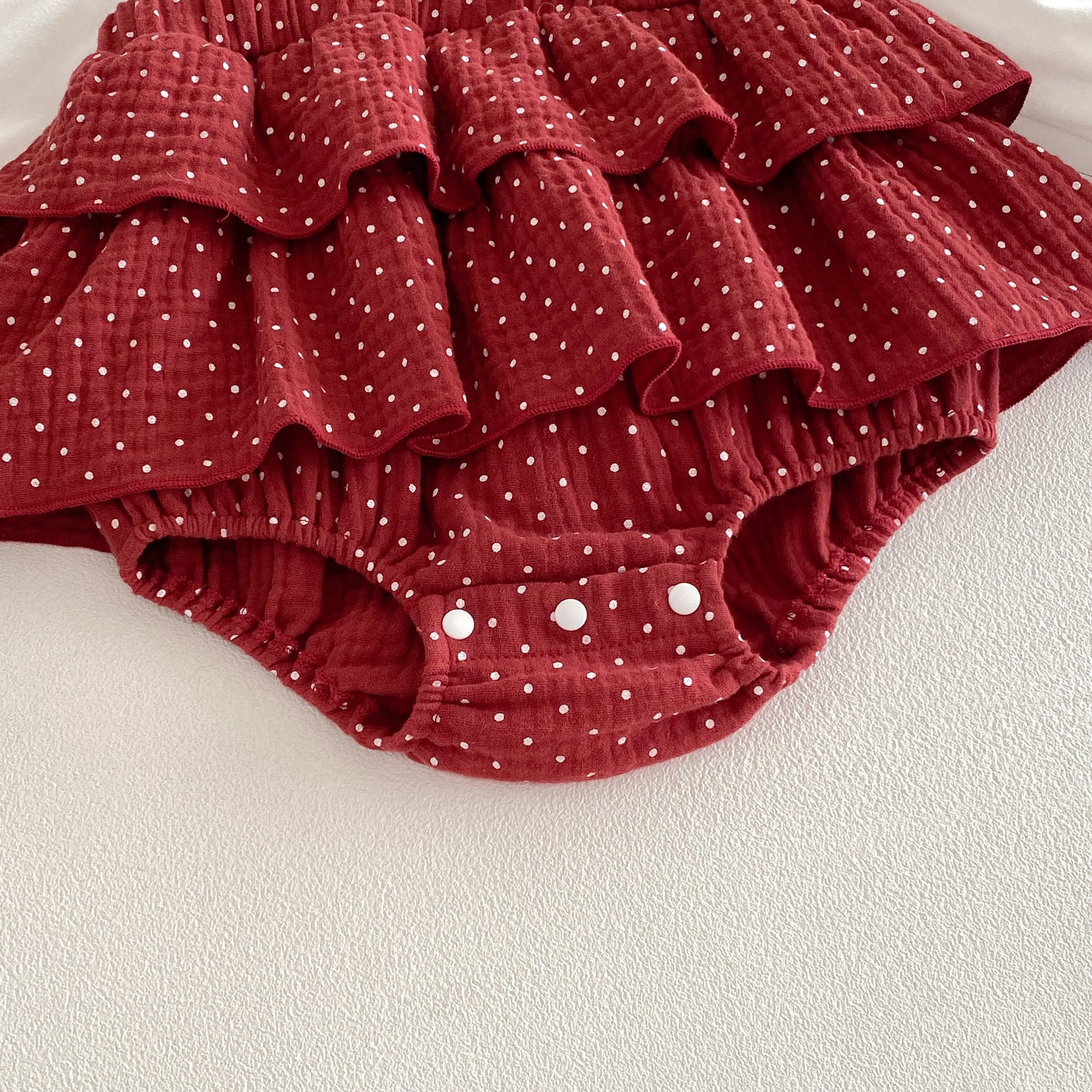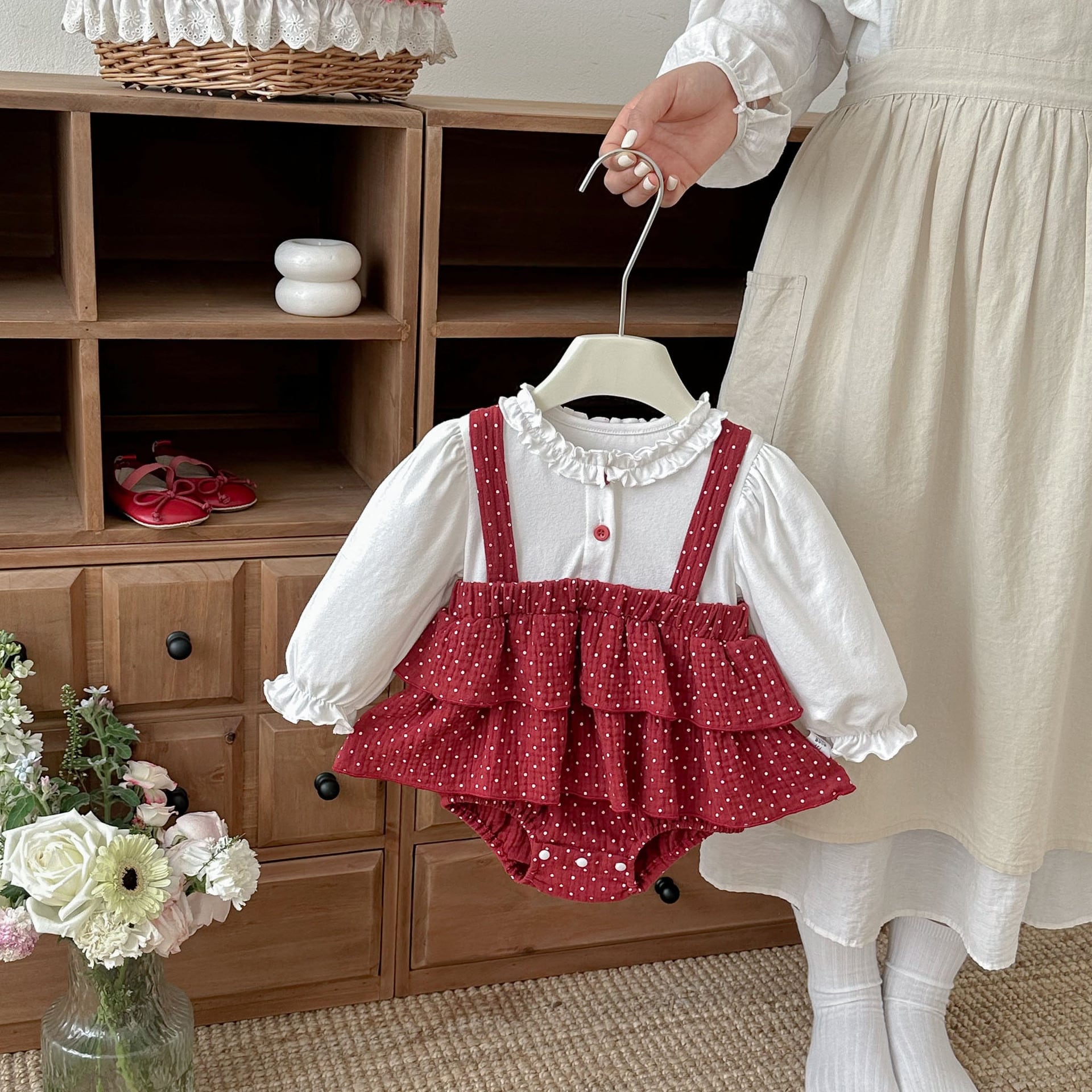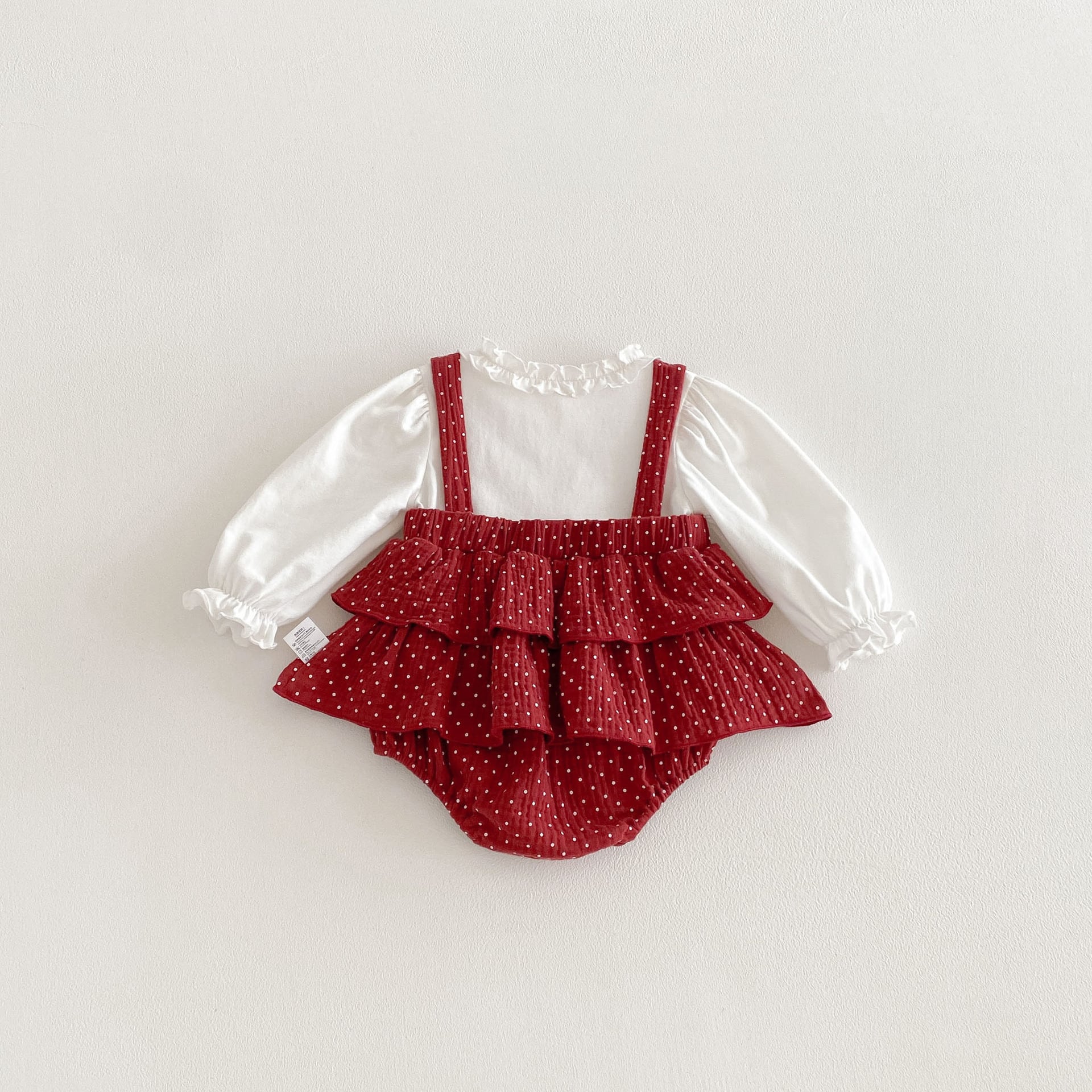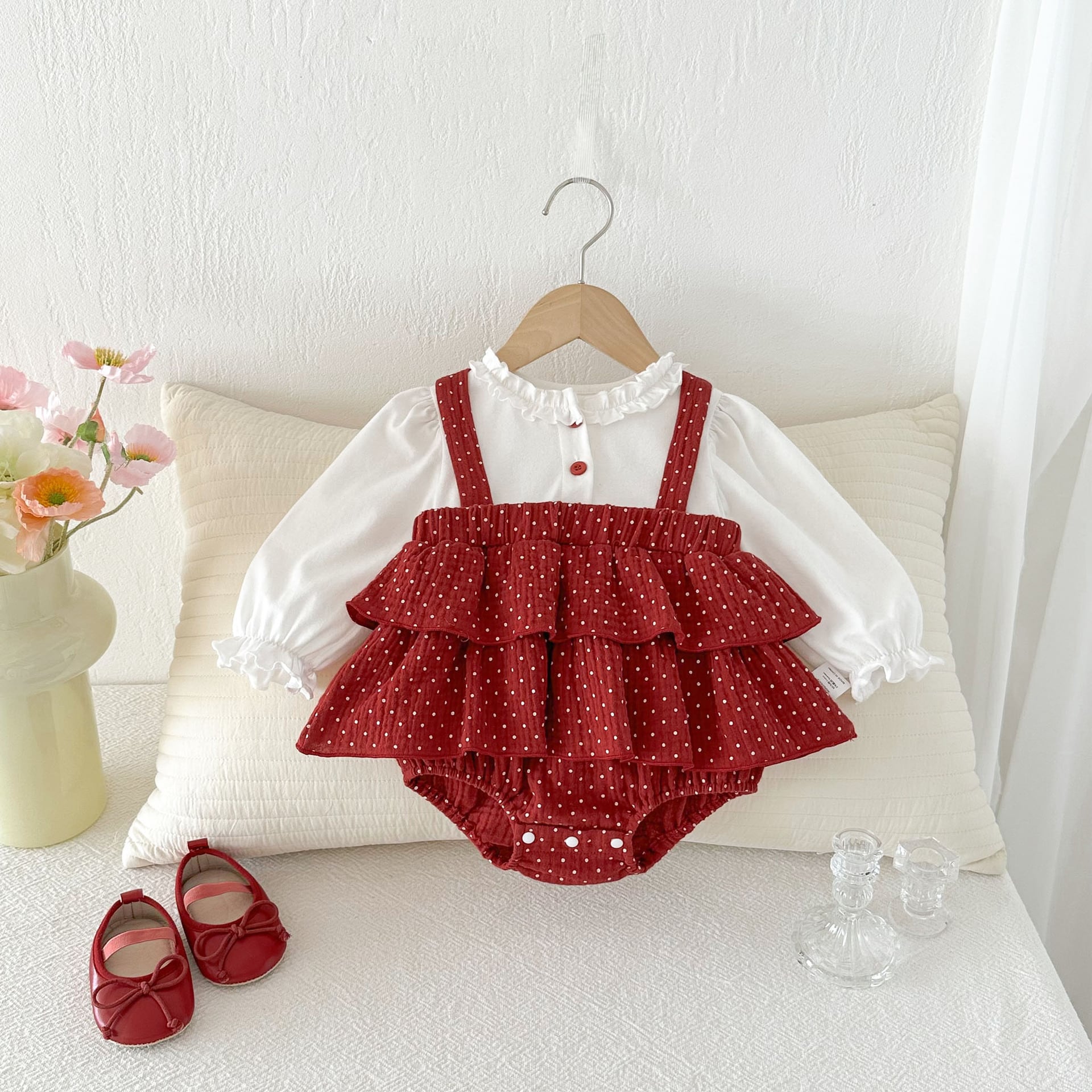 【66-90cm】ロンパース レイヤード ドット レッド 可愛い ベビー服