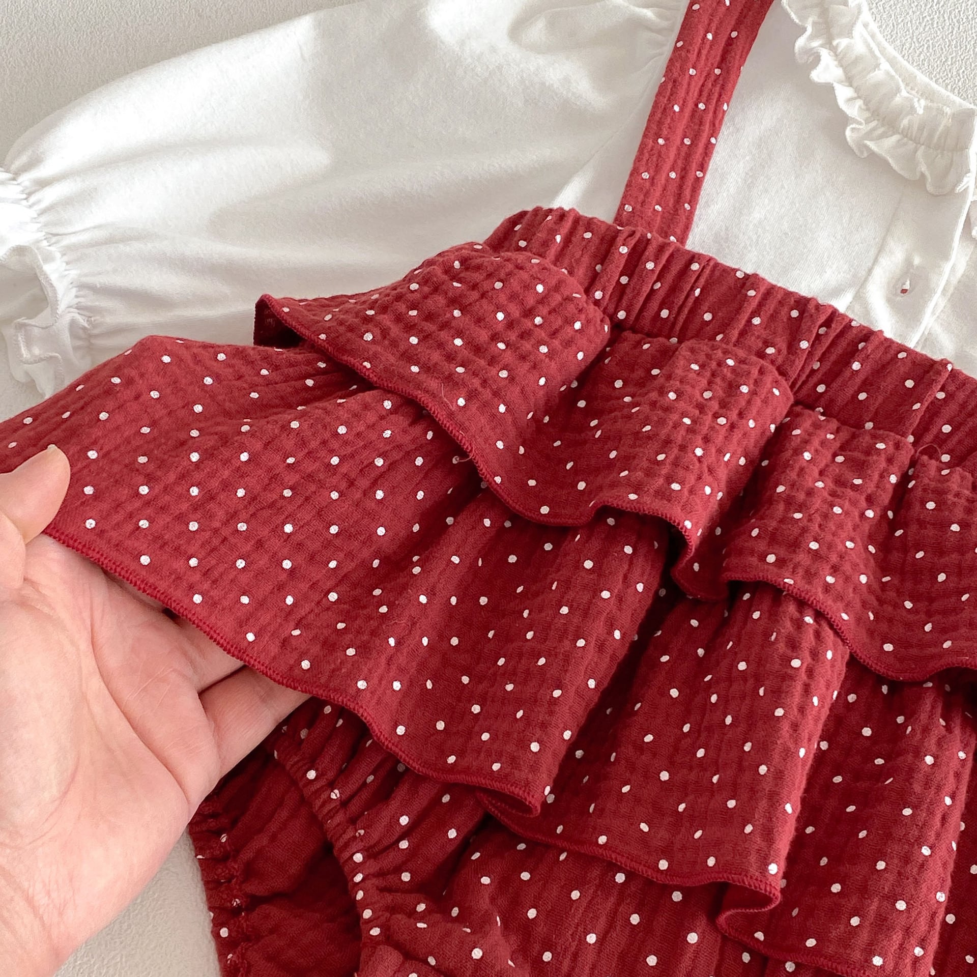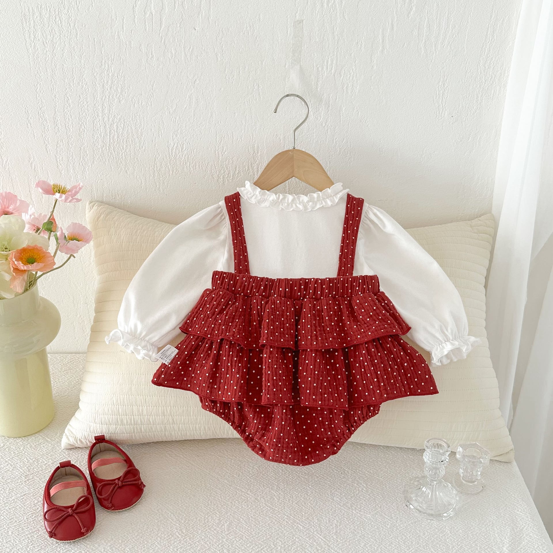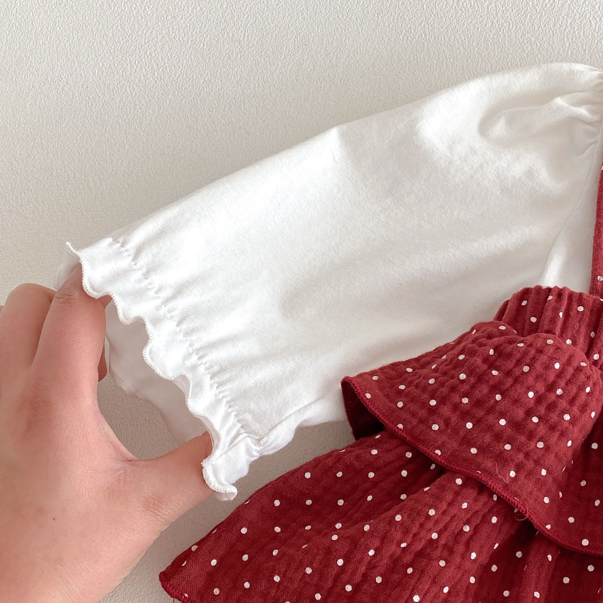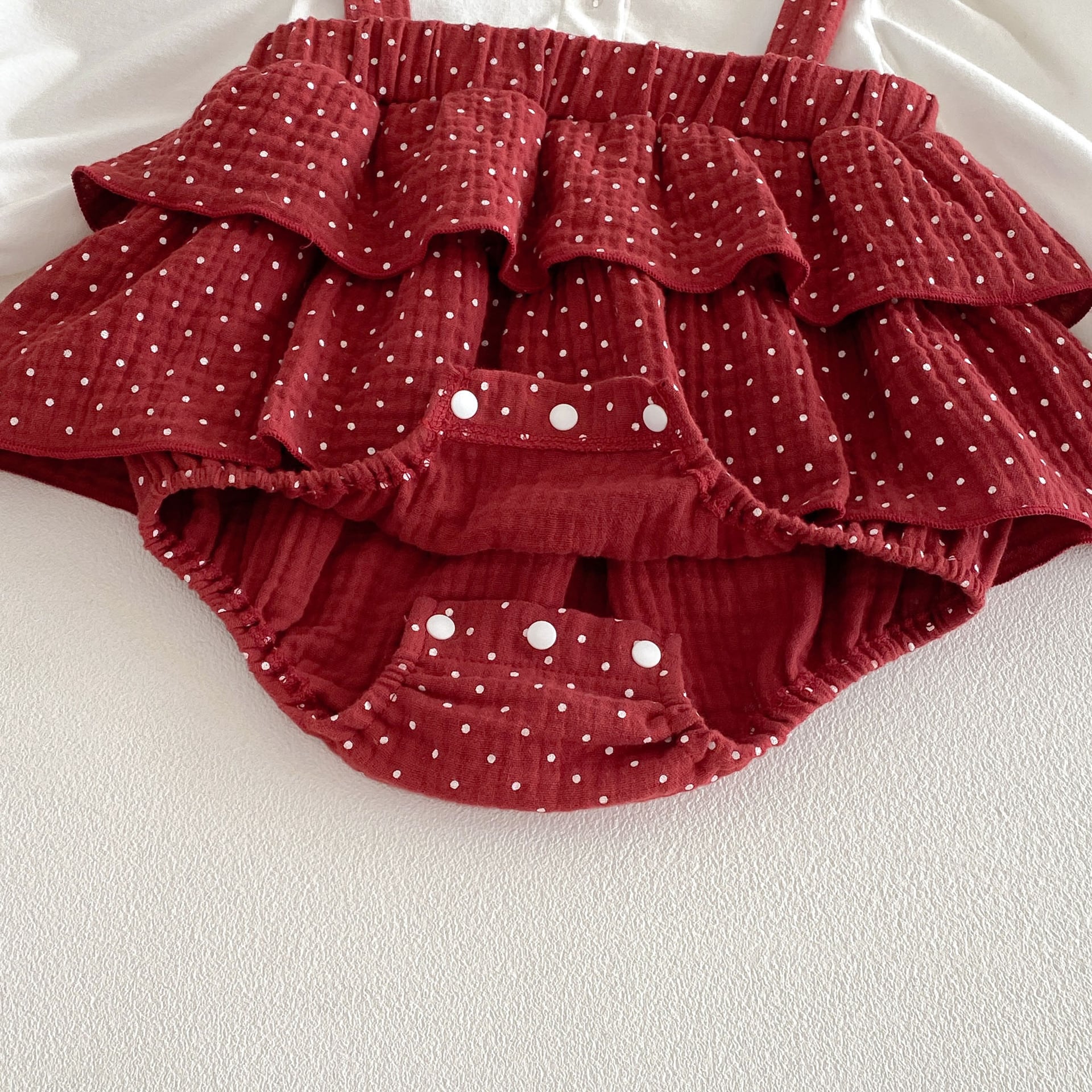 【66-90cm】ロンパース レイヤード ドット レッド 可愛い ベビー服