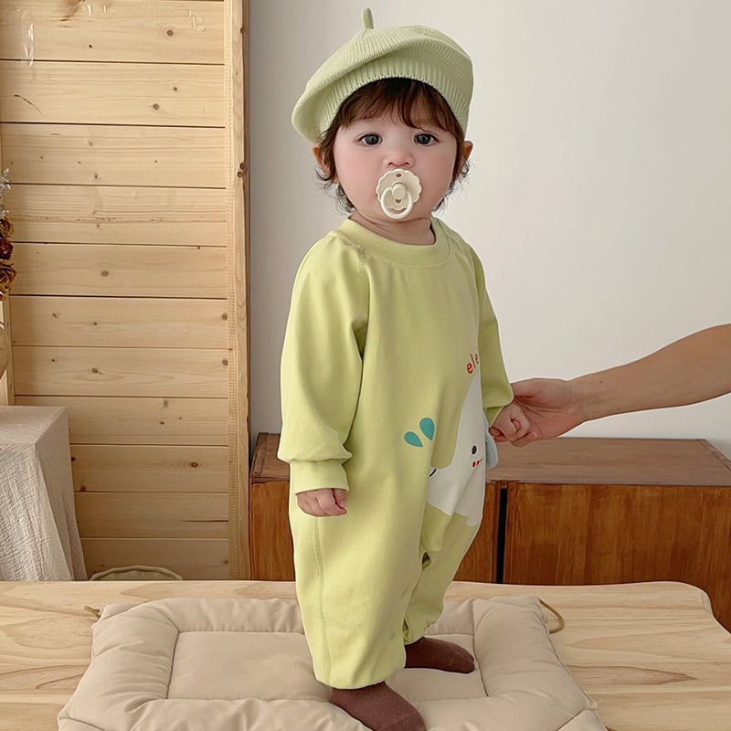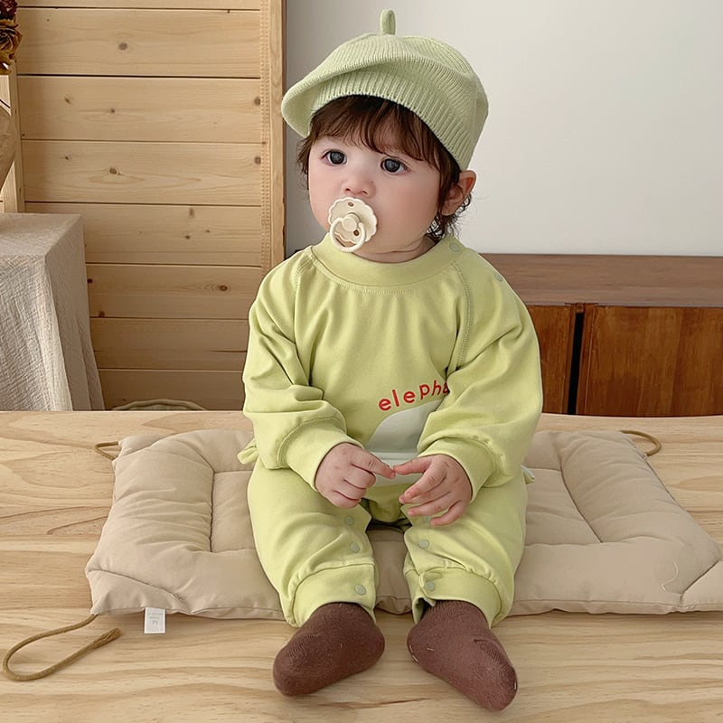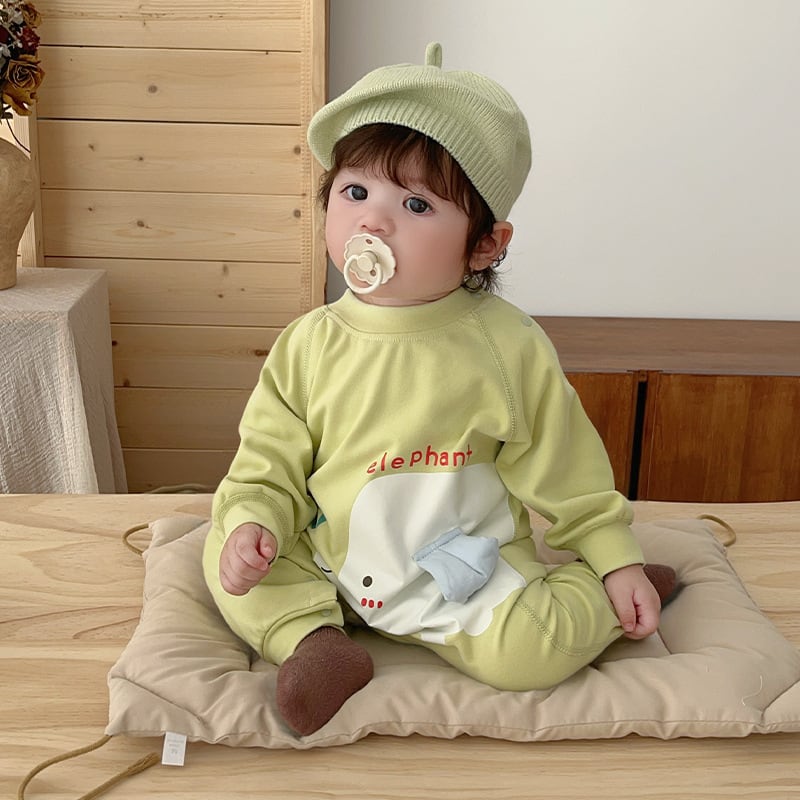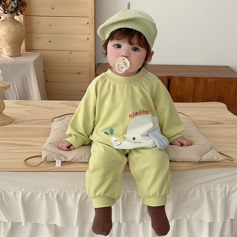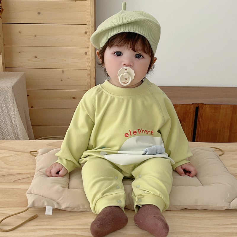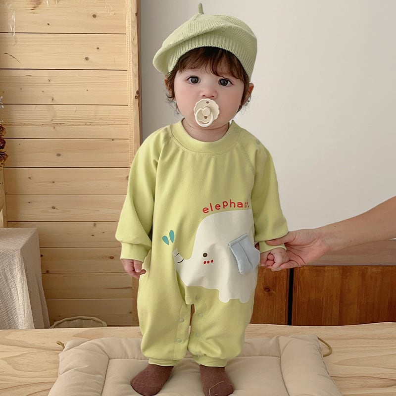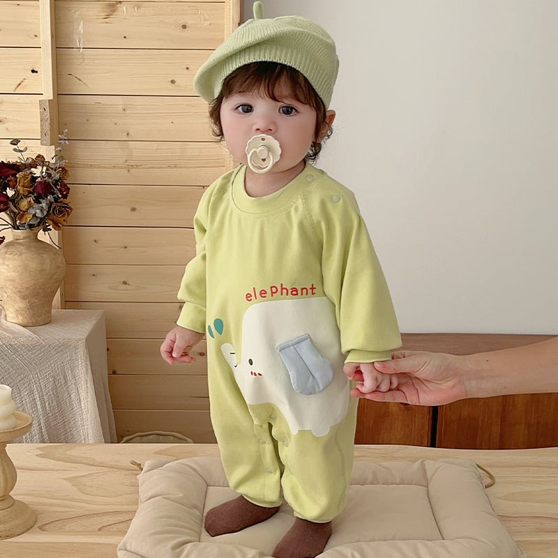 【66-90cm】ロンパース ゾウ柄 グリーン 可愛い 肌触り良い ベビー服