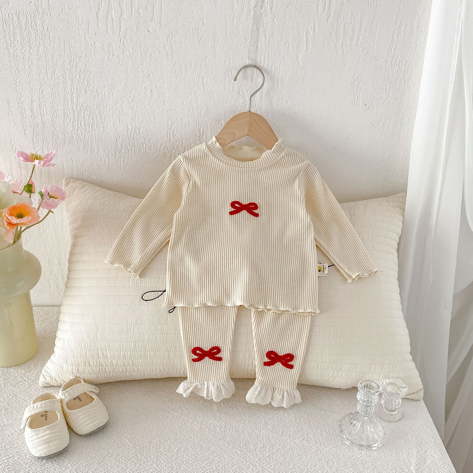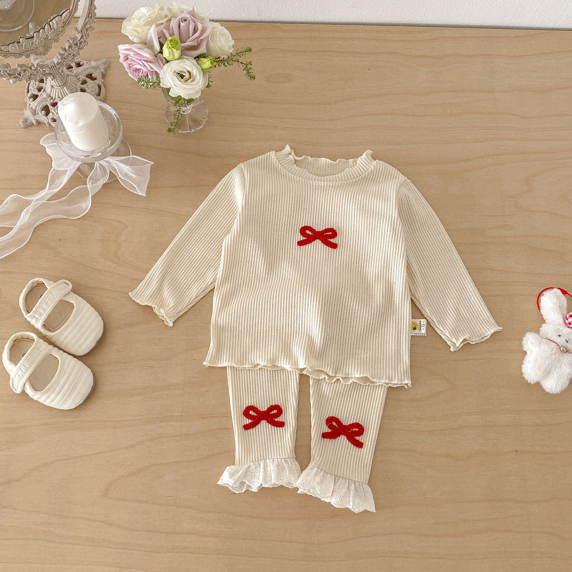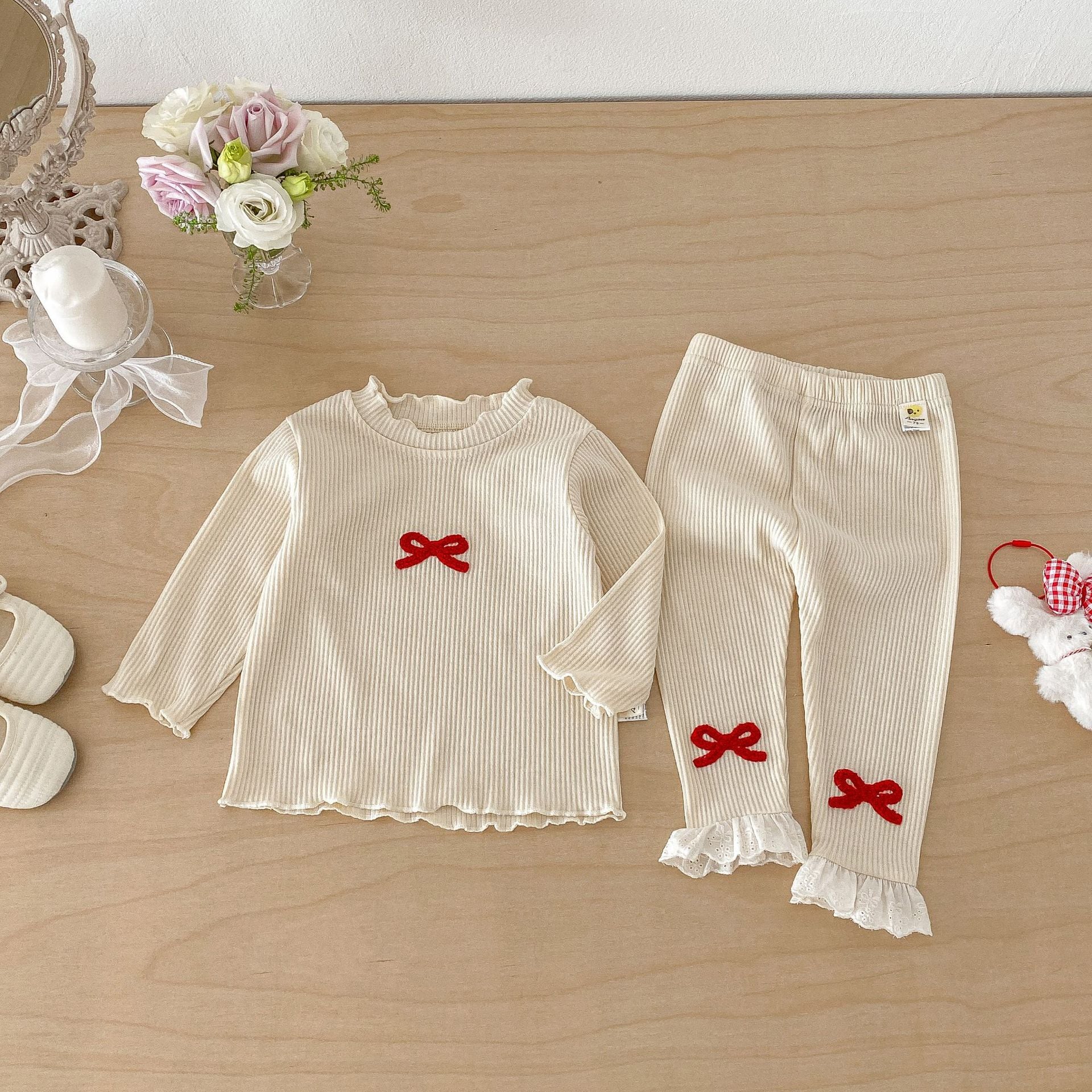 【73-110cm】セットアップ 蝶結び 柔らか おしゃれ 肌に優しい 二点セット