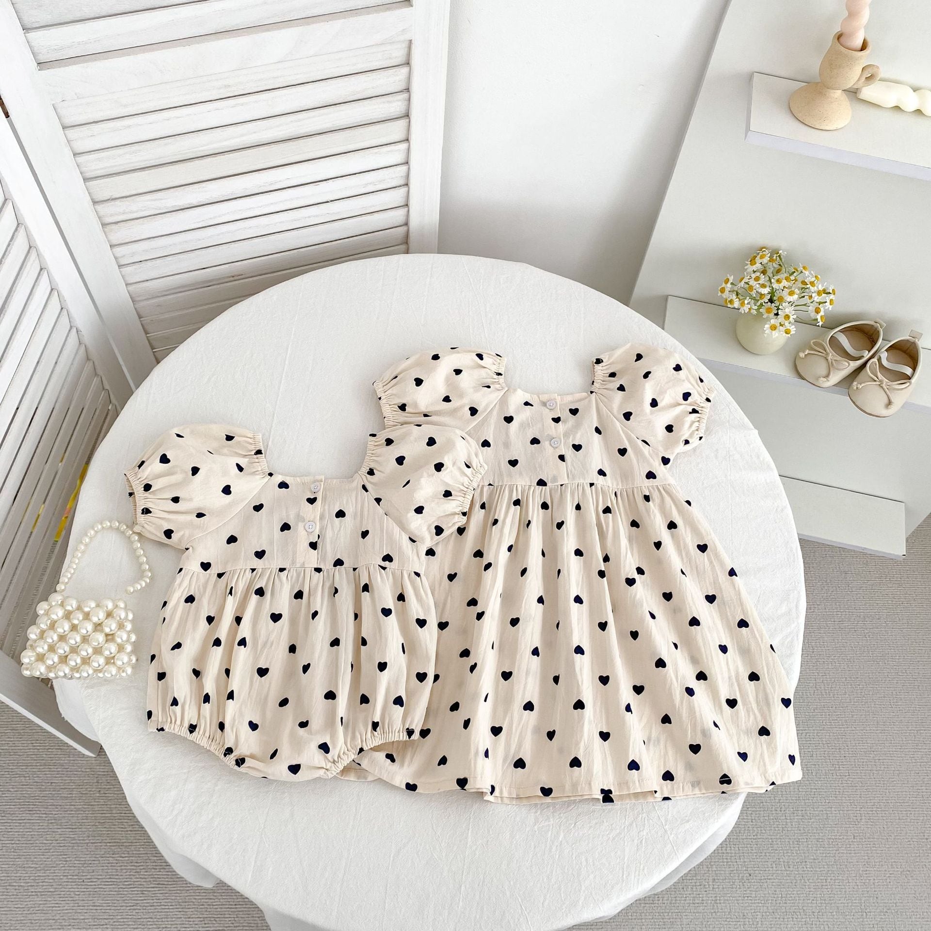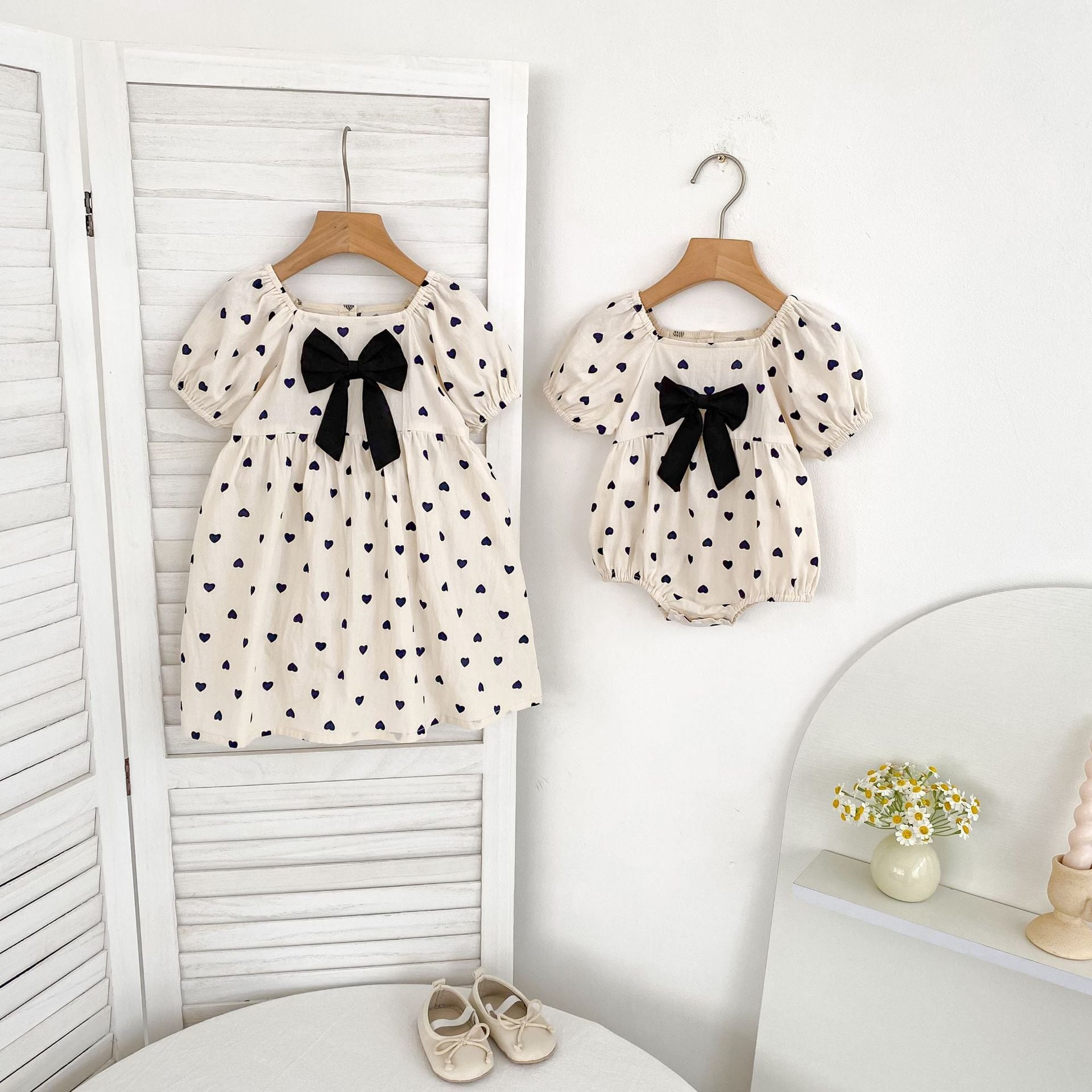 【66-130cm】ロンパースorワンピース 姉妹服 蝶結び ハート 可愛い
