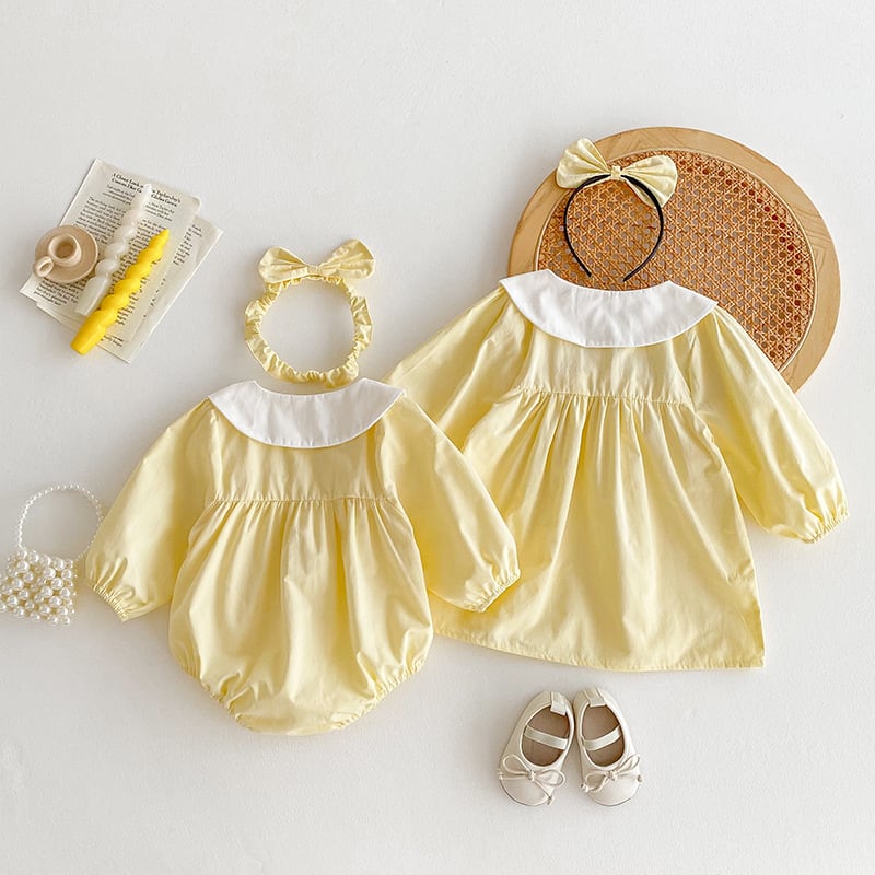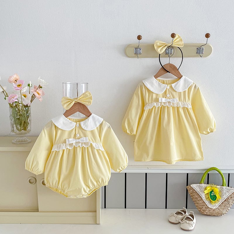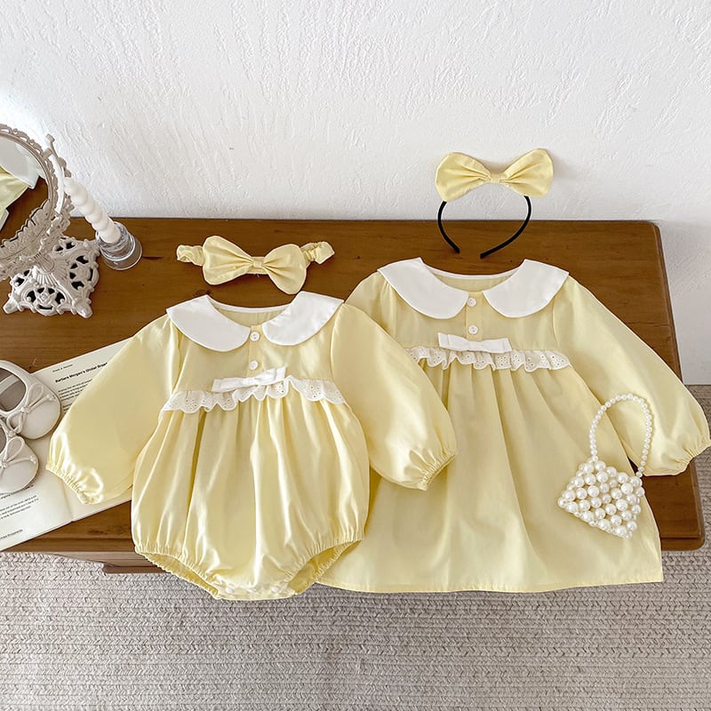 【66-120cm】ロンパース/ワンピース 可愛い キイロ 姉妹服