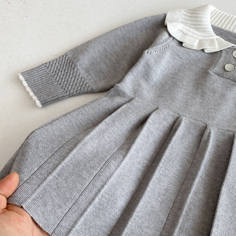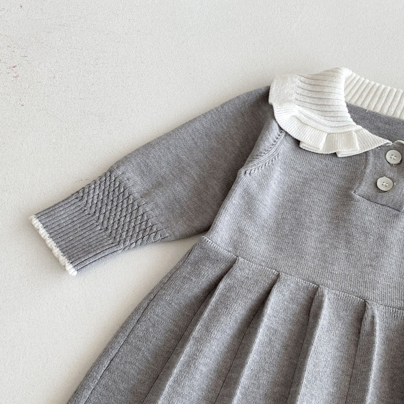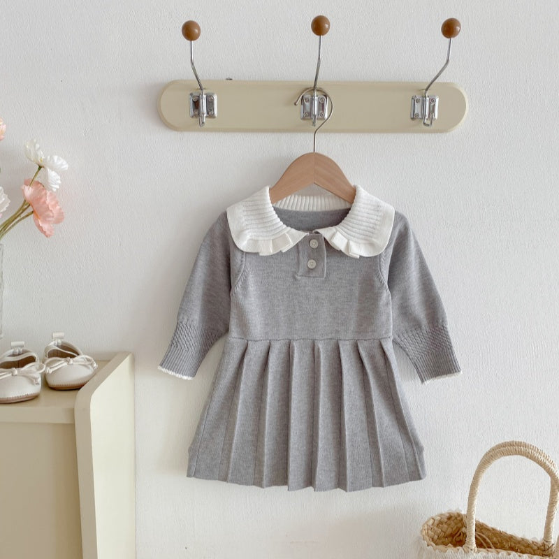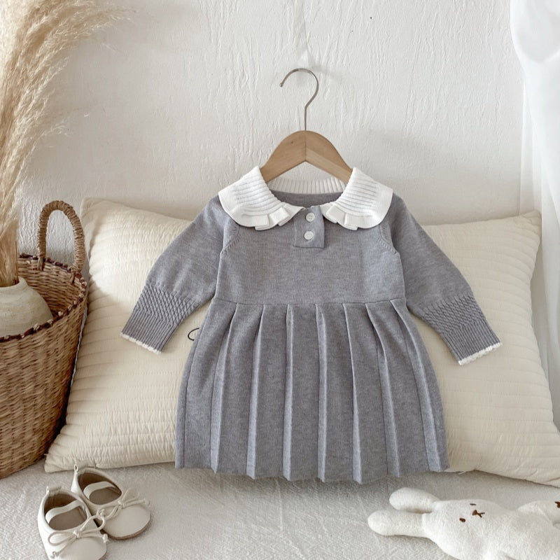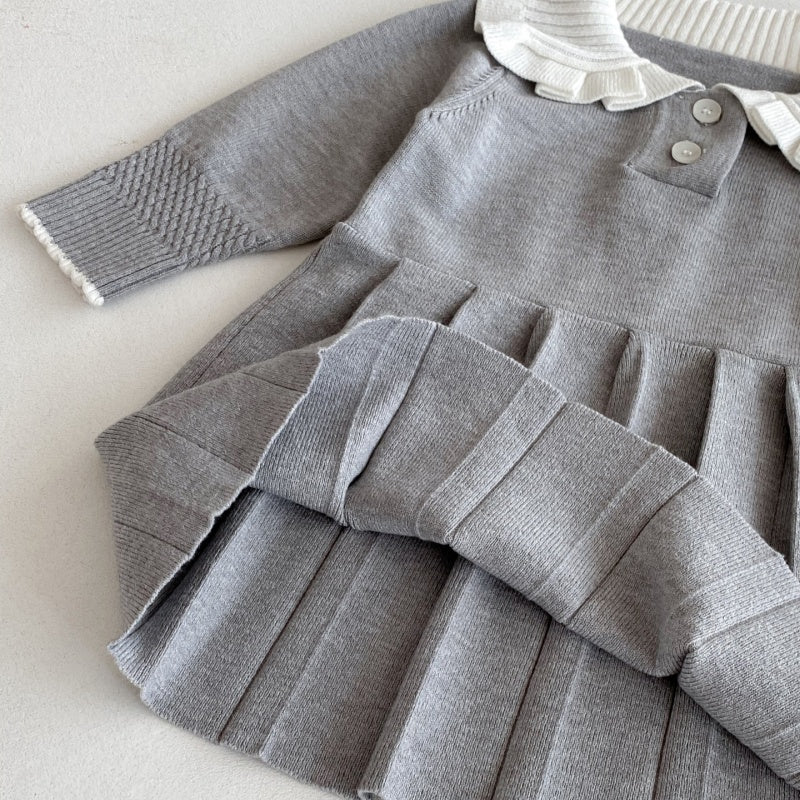 【73-110cm】韓国風 ニット プリーツワンピース