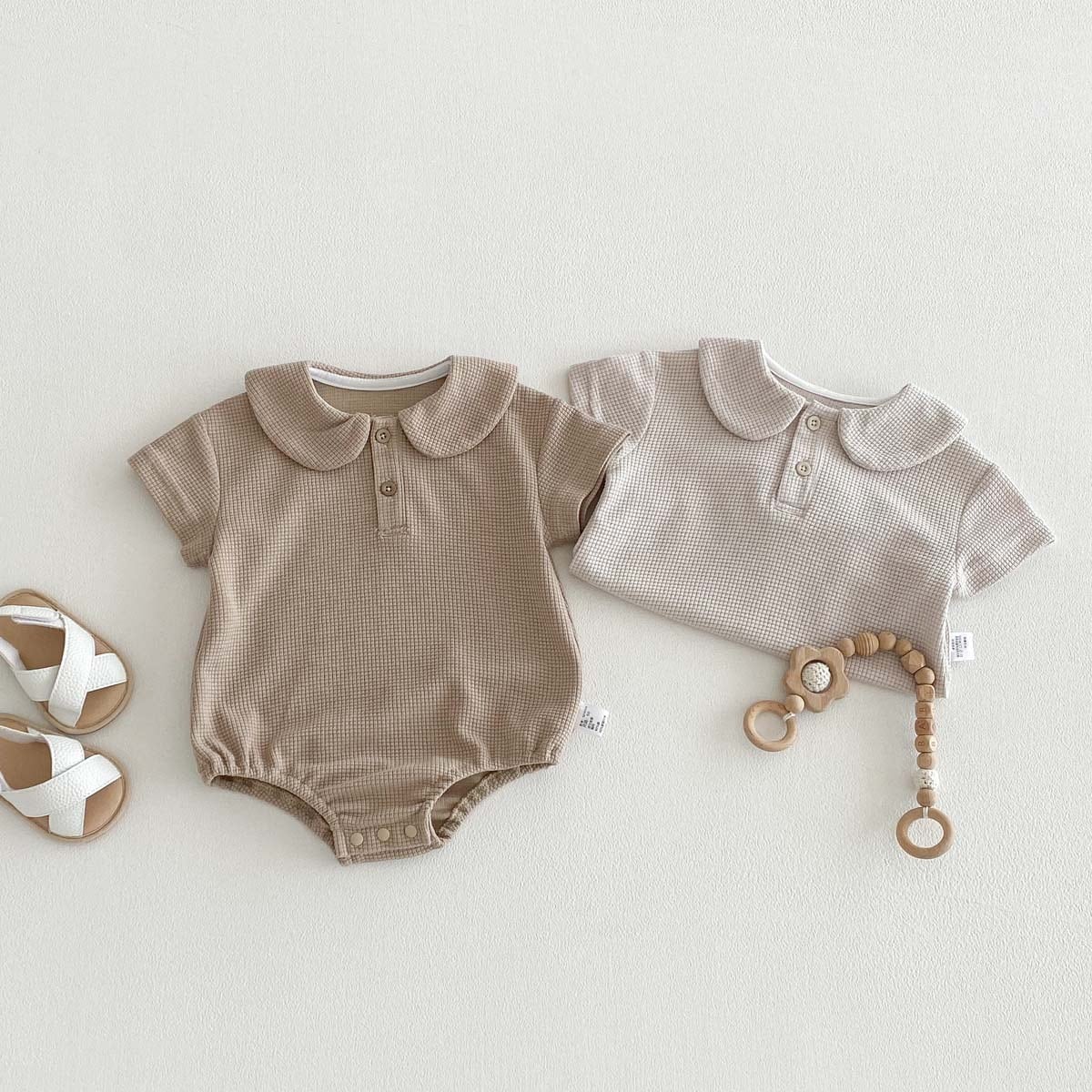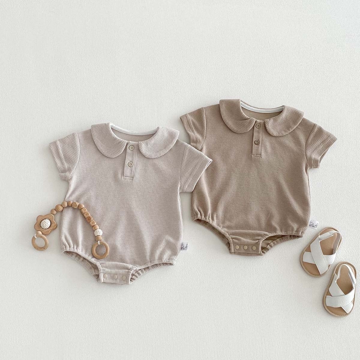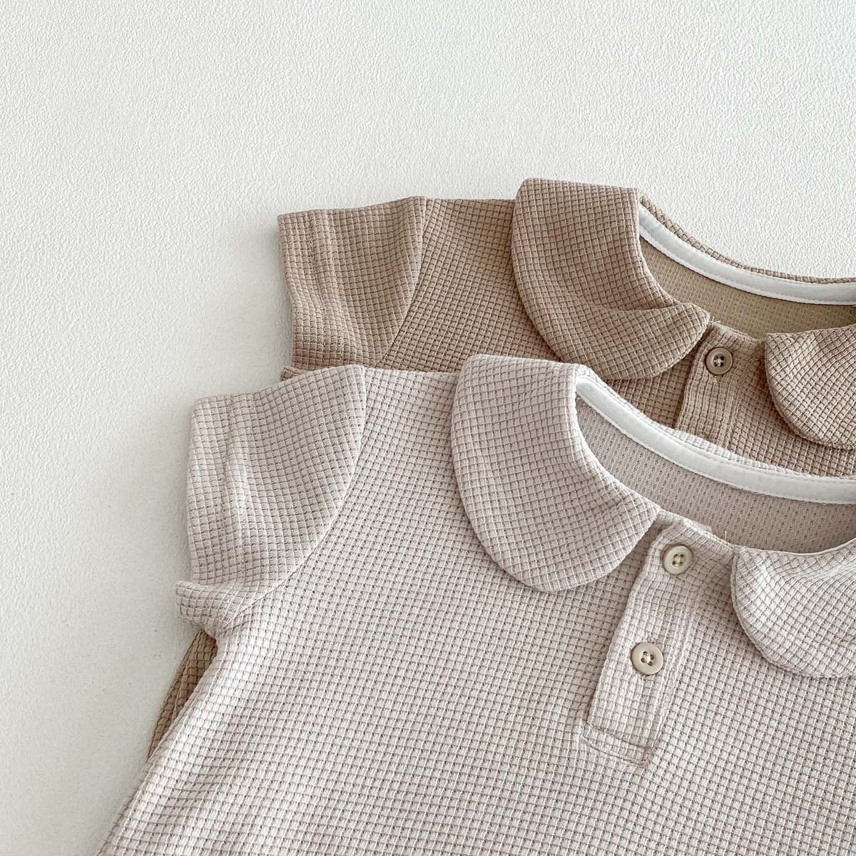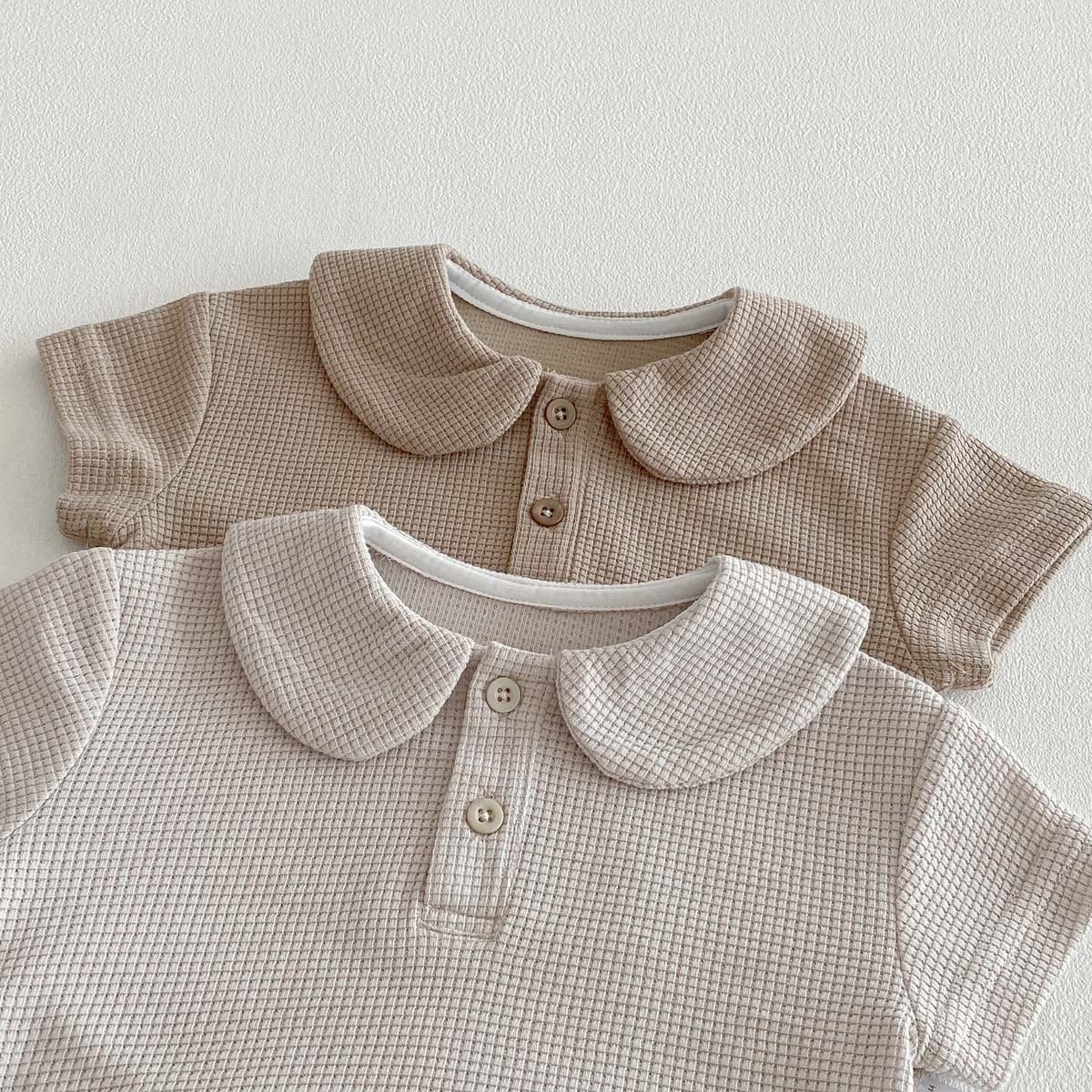 【66-90cm】ロンパース ワッフル 無地 シンプル 肌に優しい