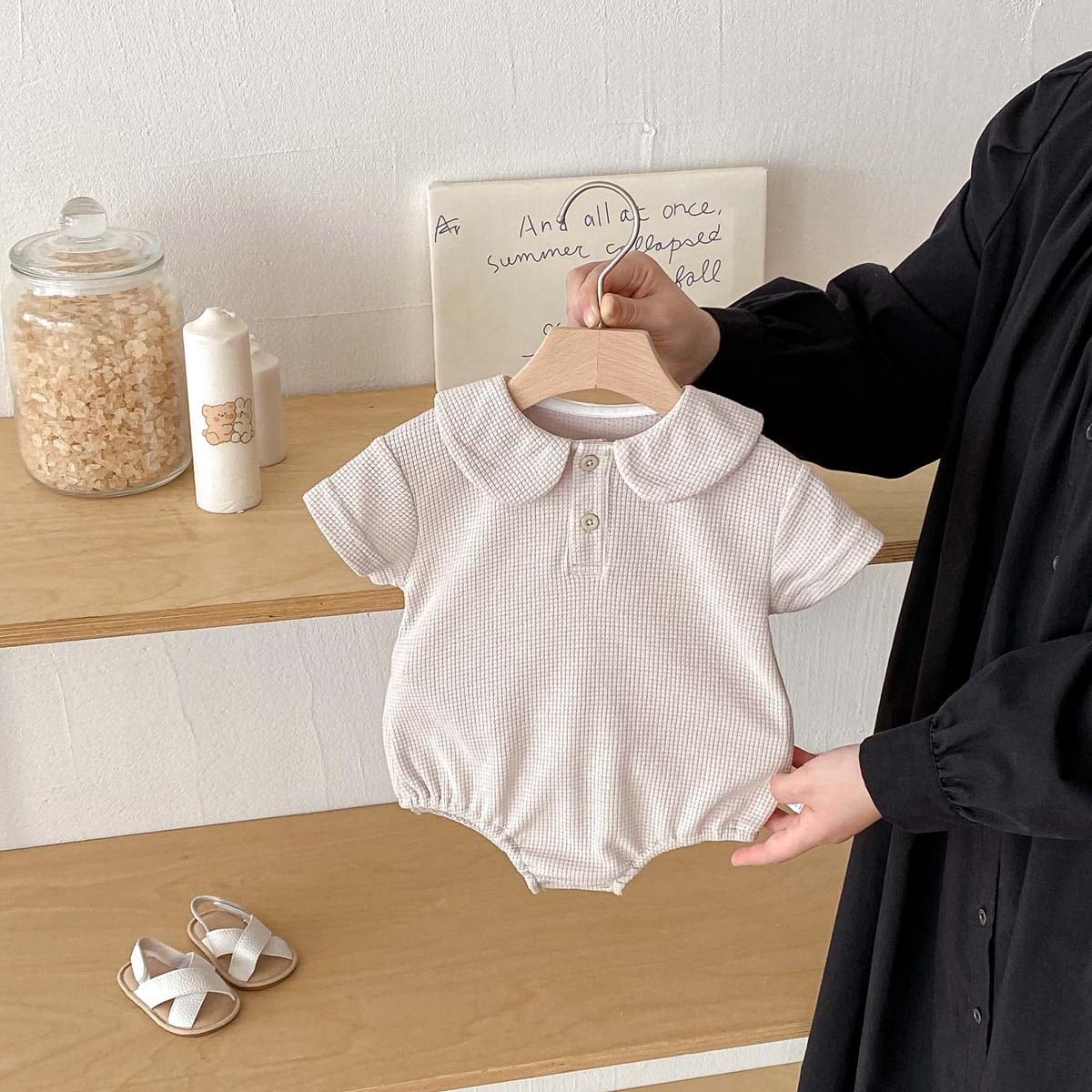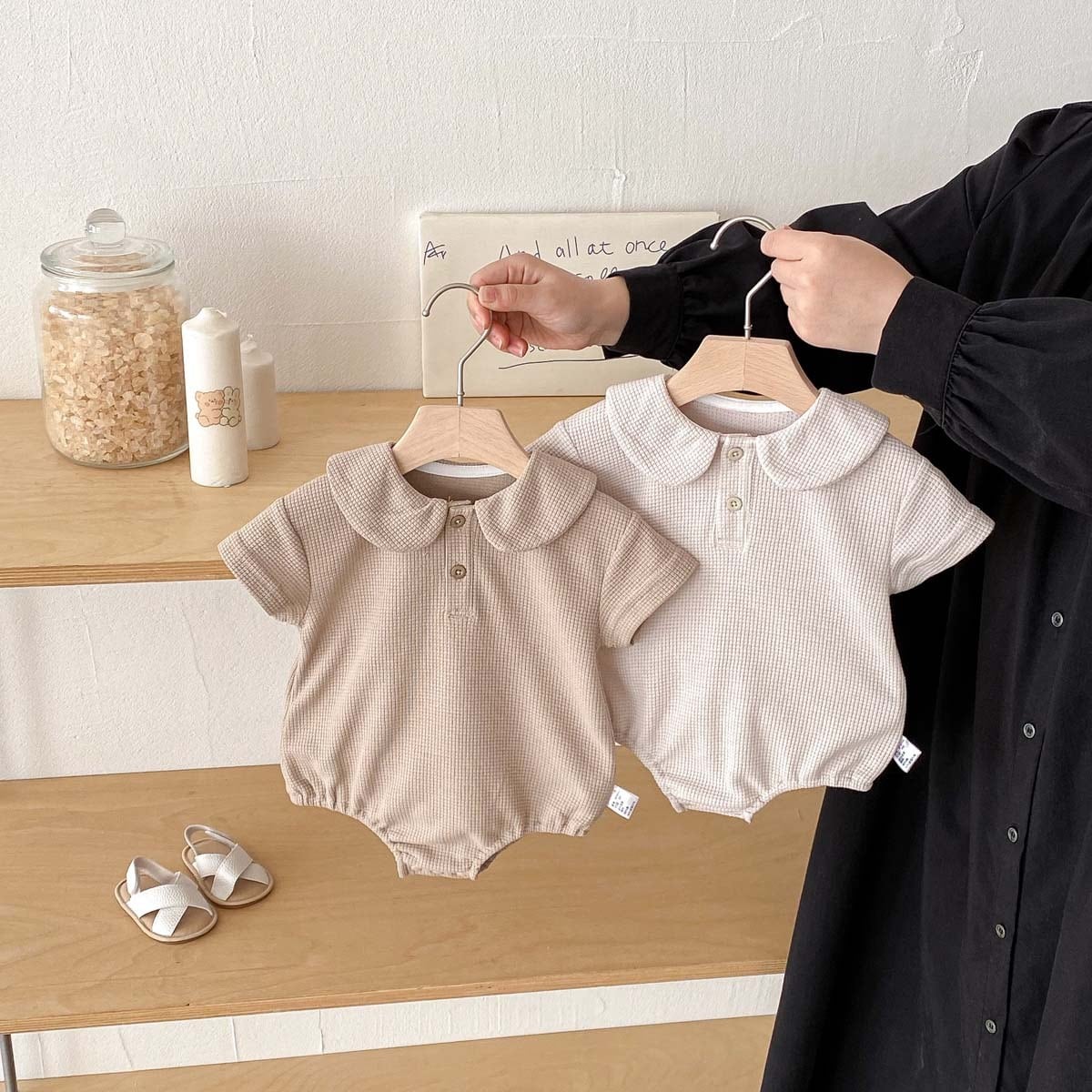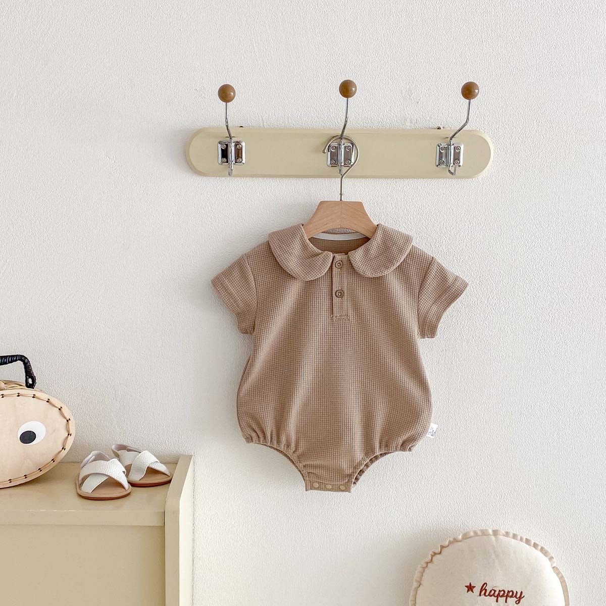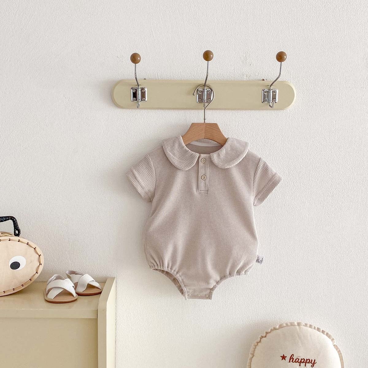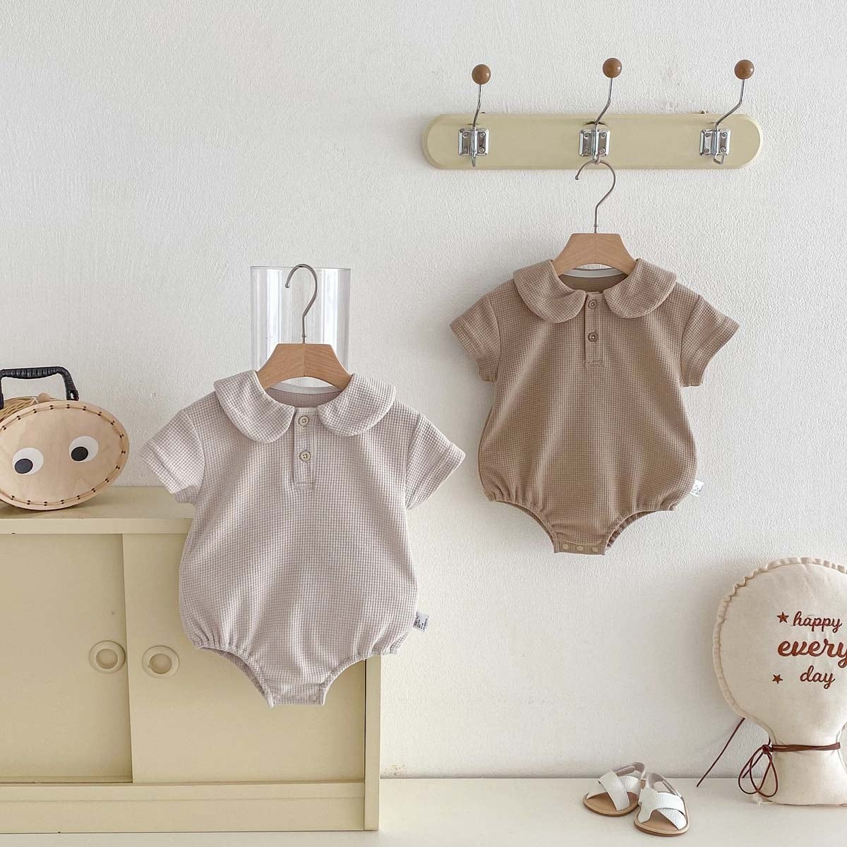 【66-90cm】ロンパース ワッフル 無地 シンプル 肌に優しい
