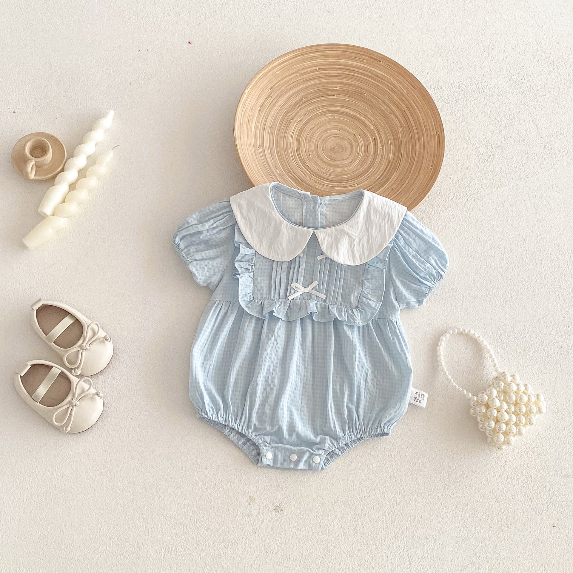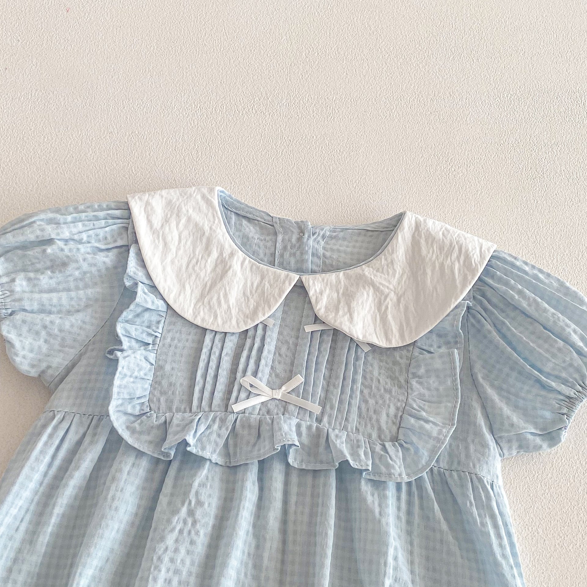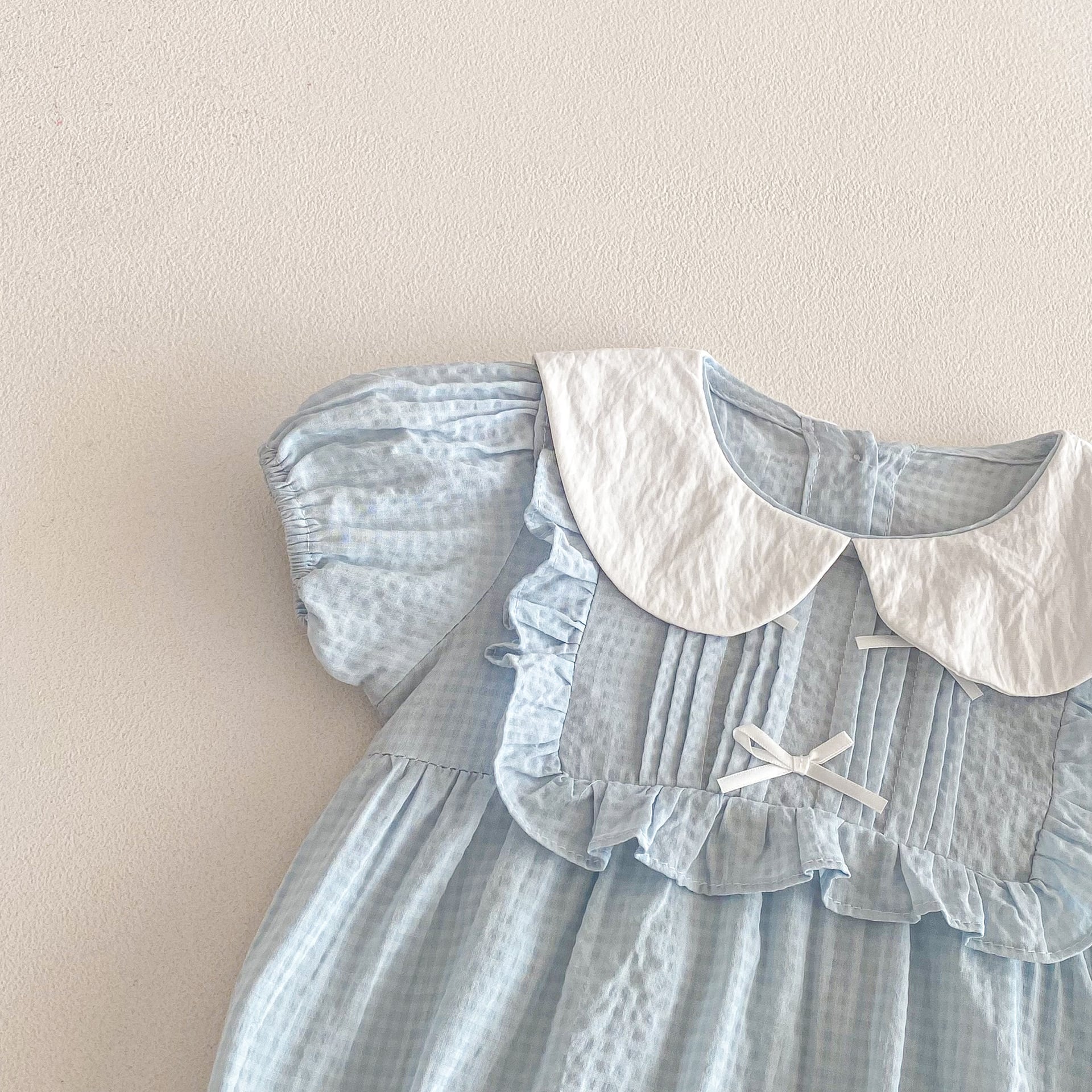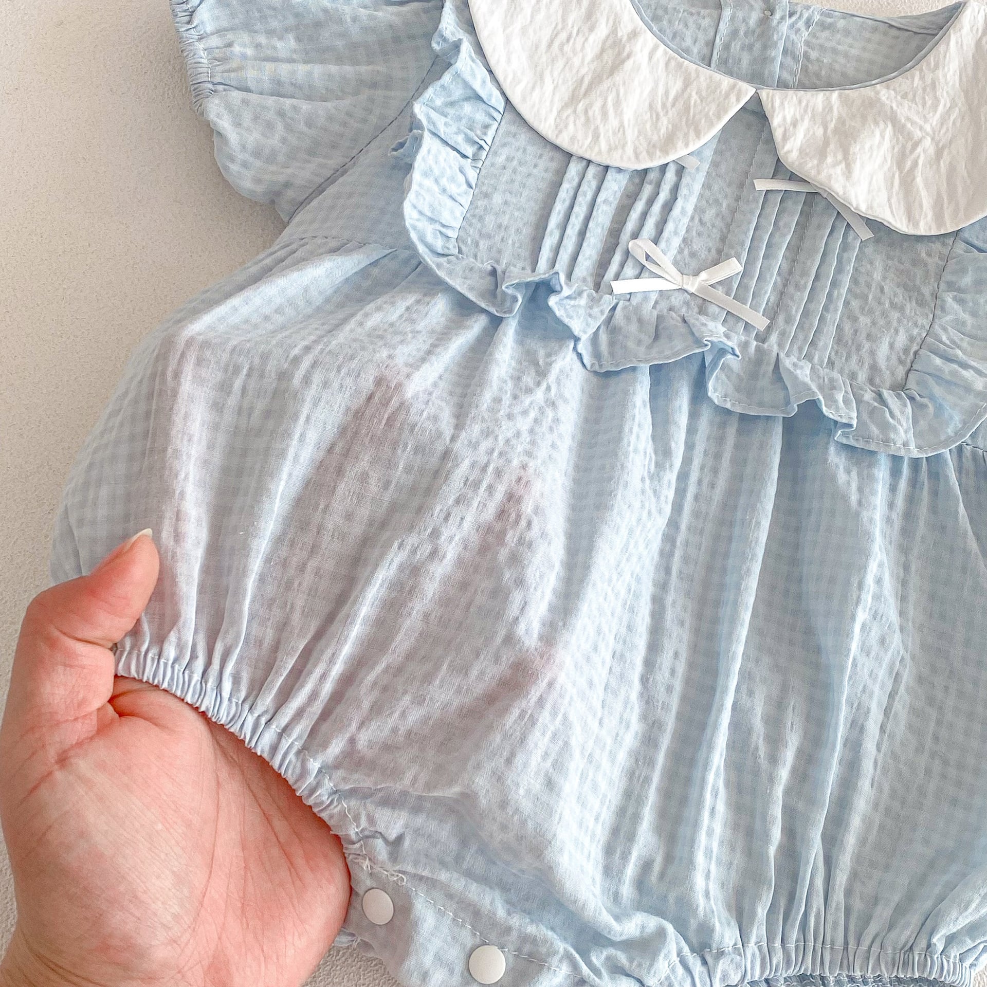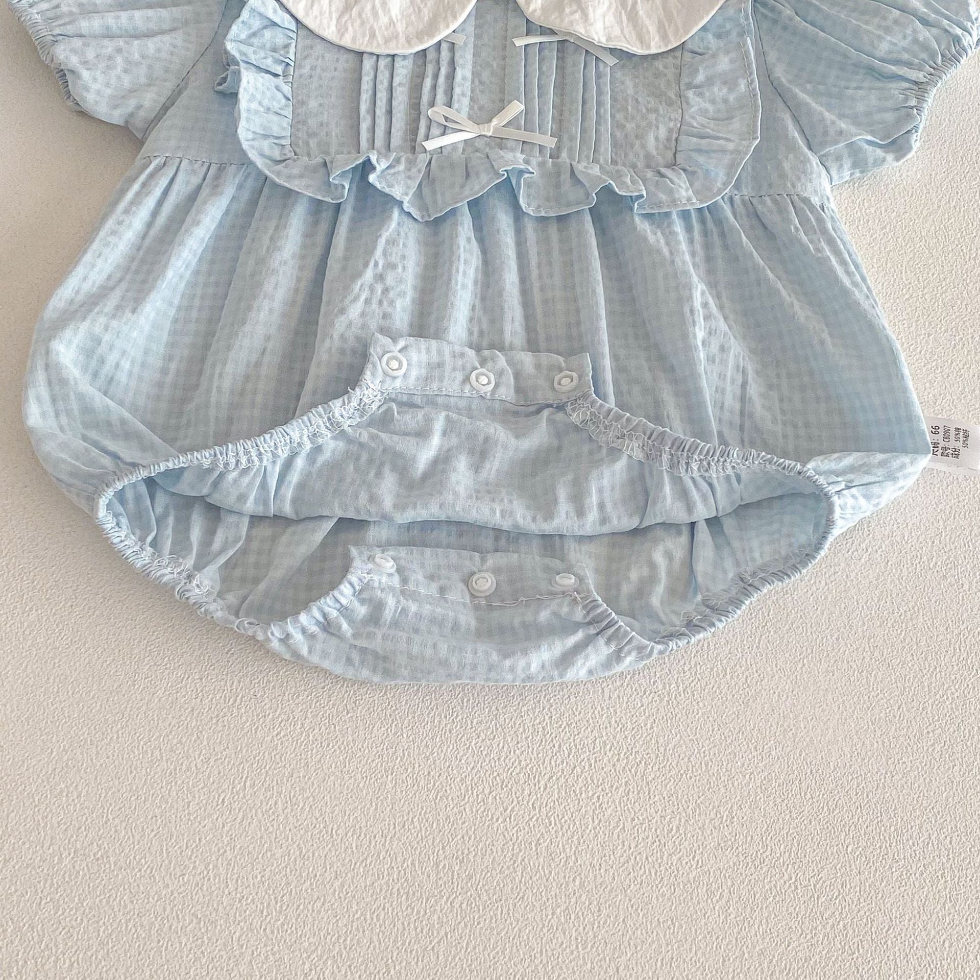 【66-90cm】ロンパース リボン付き ブルー 可愛い 女の子
