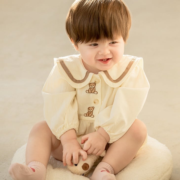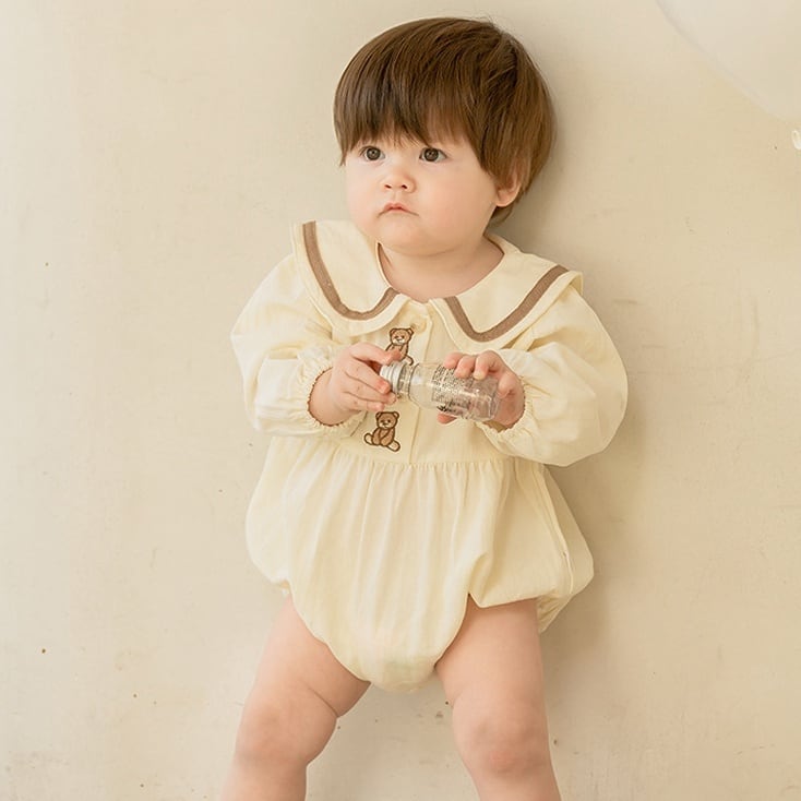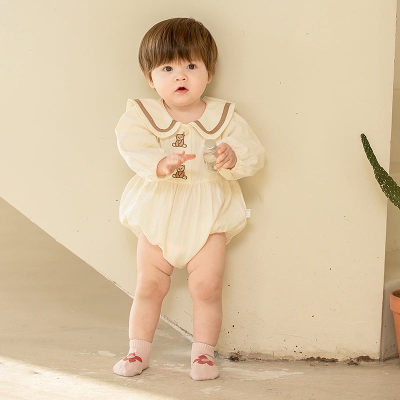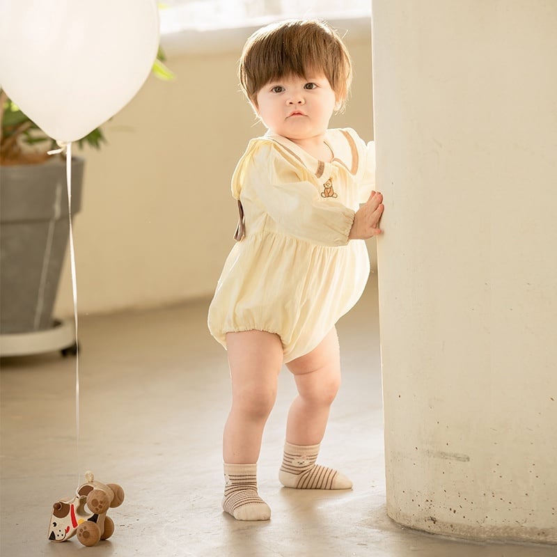 【66-90cm】ロンパース クマ柄 セーラー風 シンプル 着心地良い ベビー服