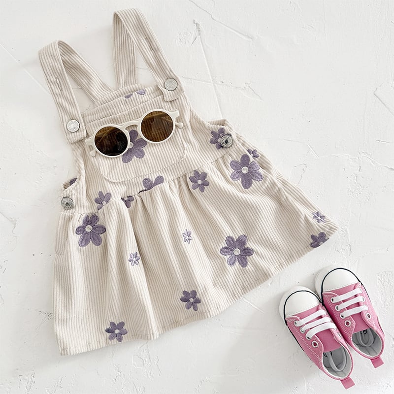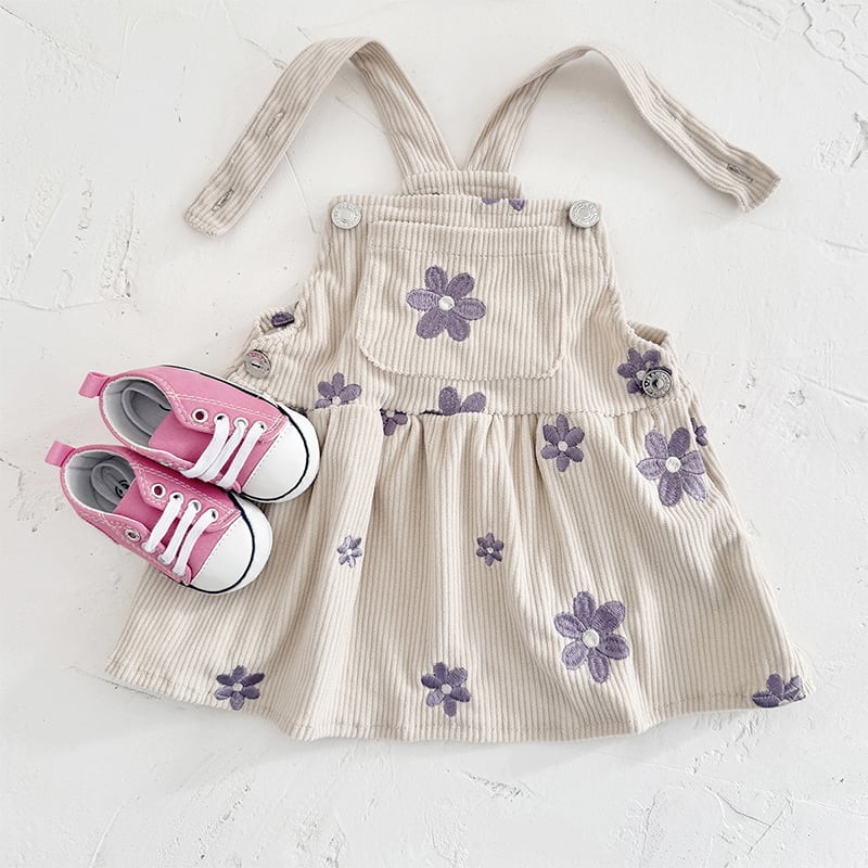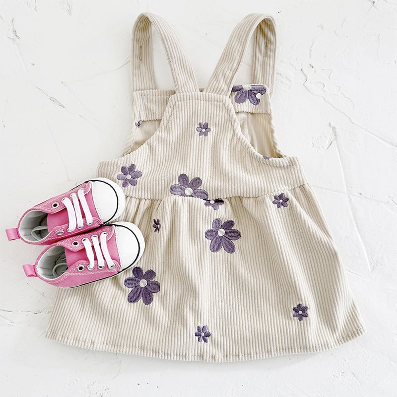 【73-110cm】サロペットワンピース パープル 花柄 刺しゅう おしゃれ 女の子