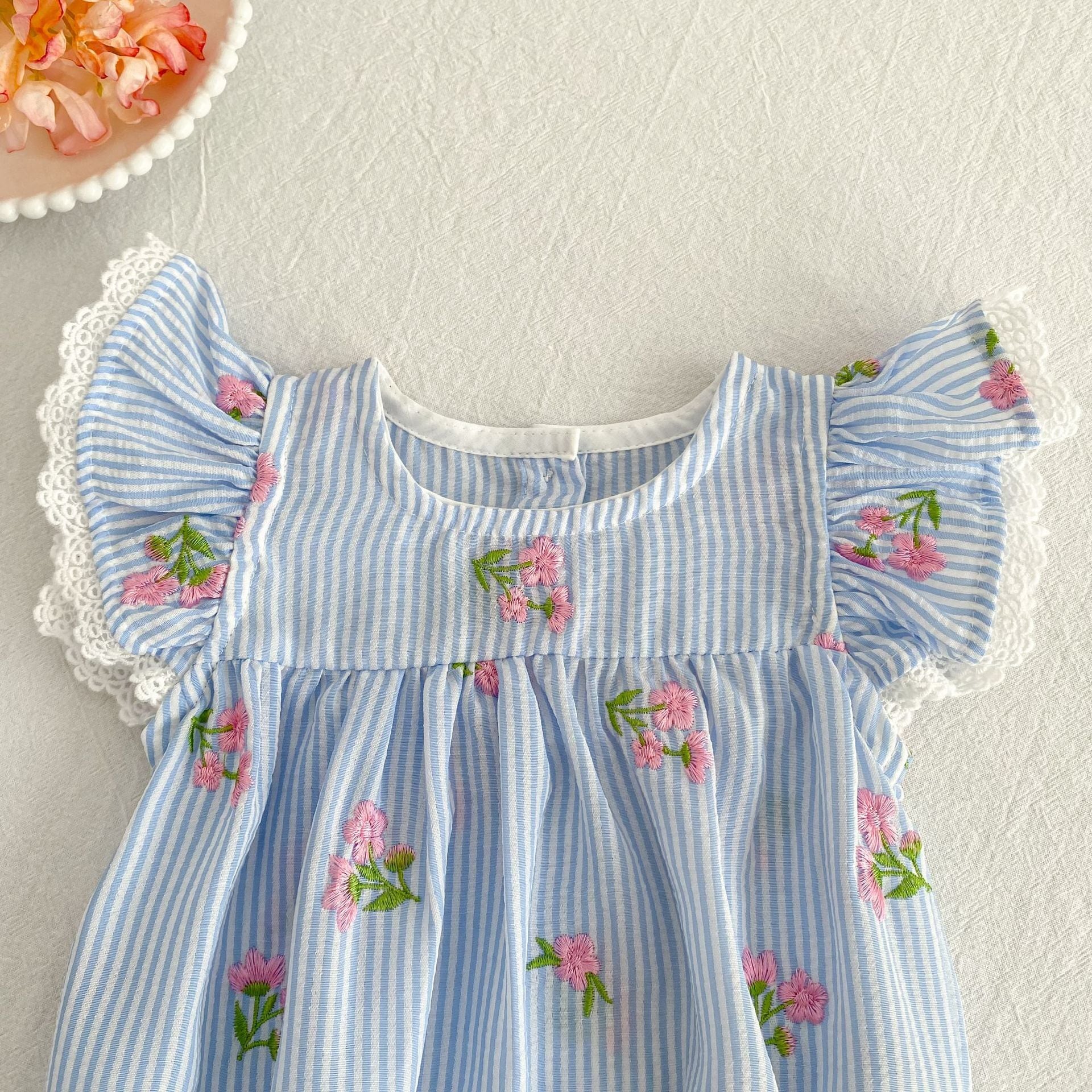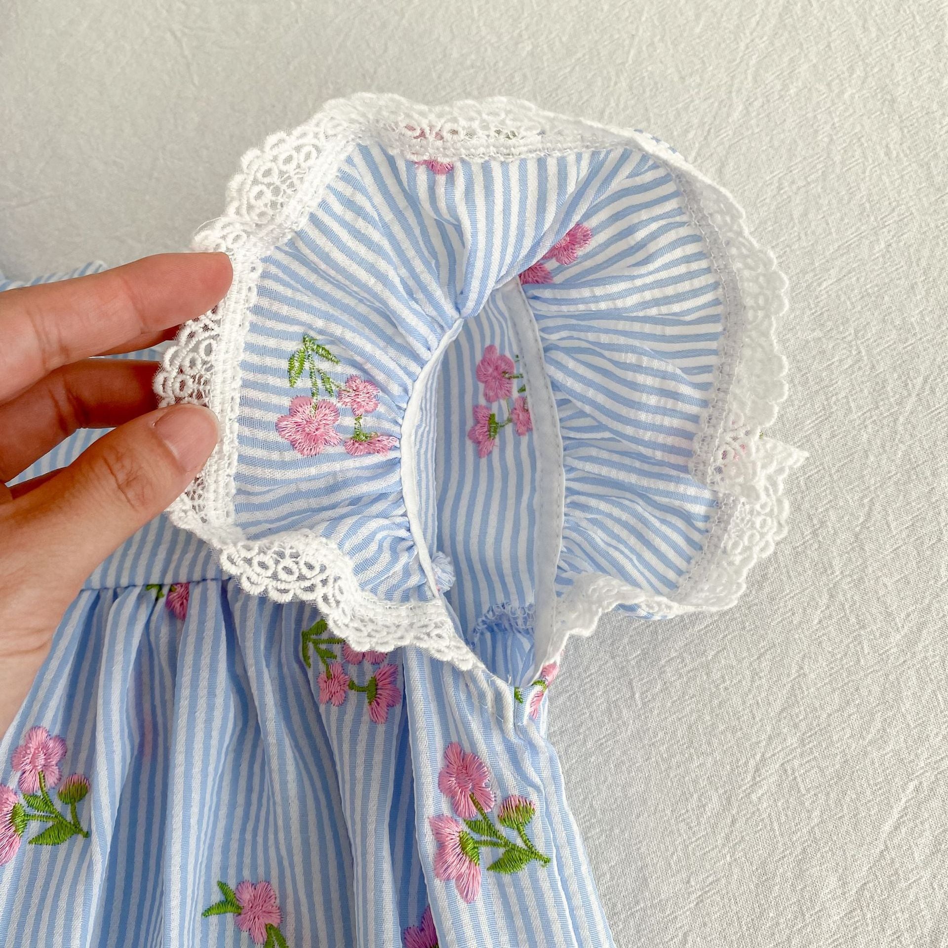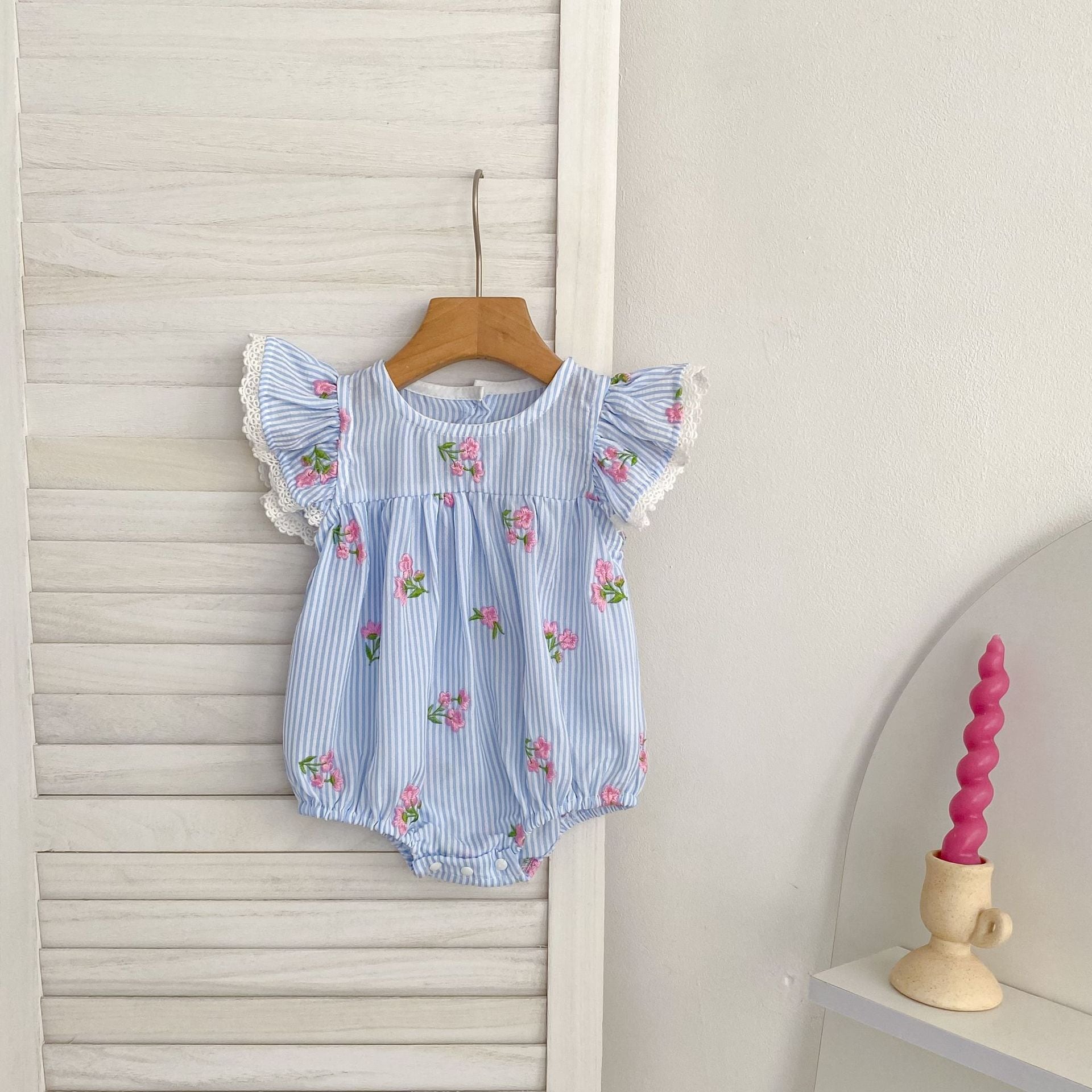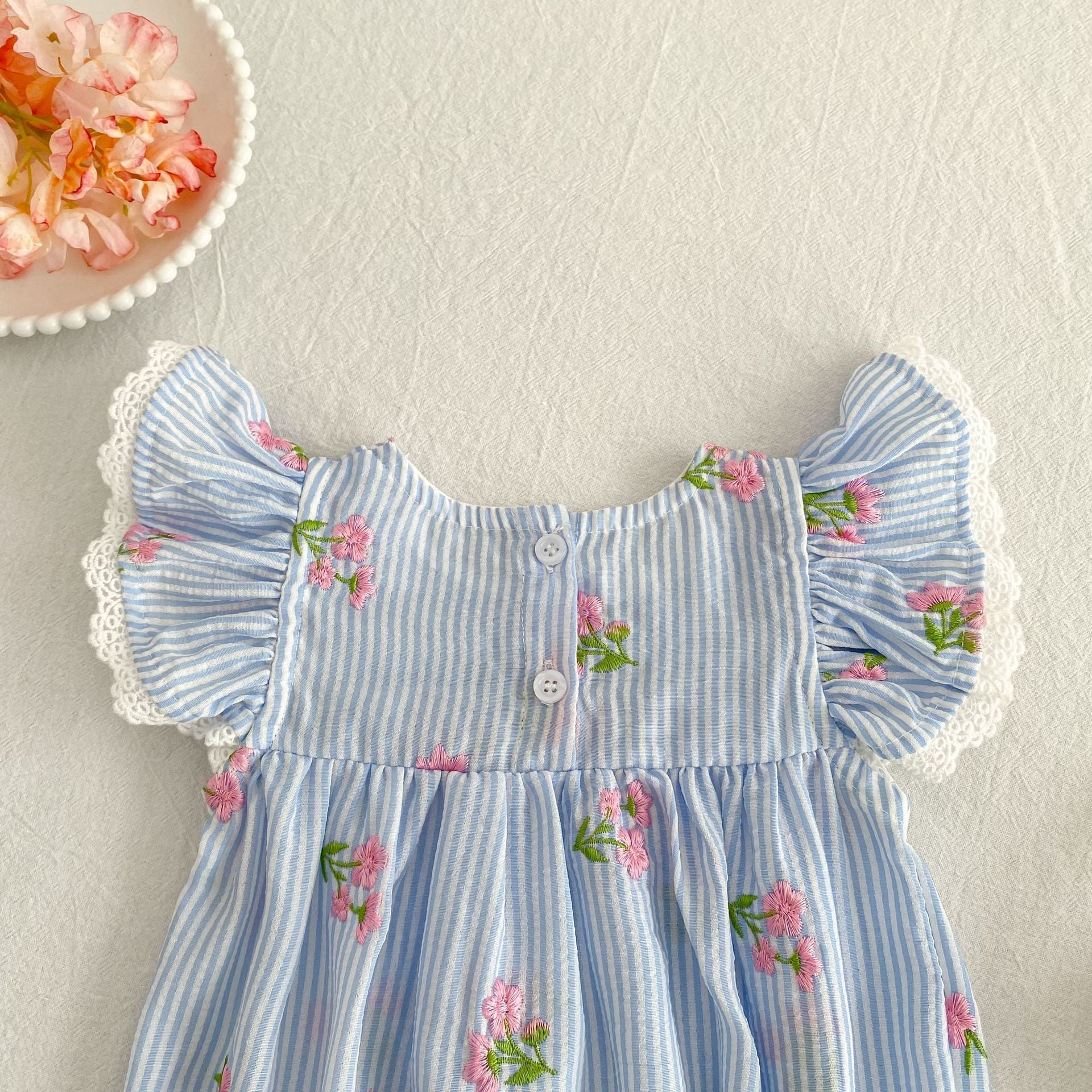 【66-130cm】ロンパース/ワンピース ブルーストライプ フリル 姉妹服