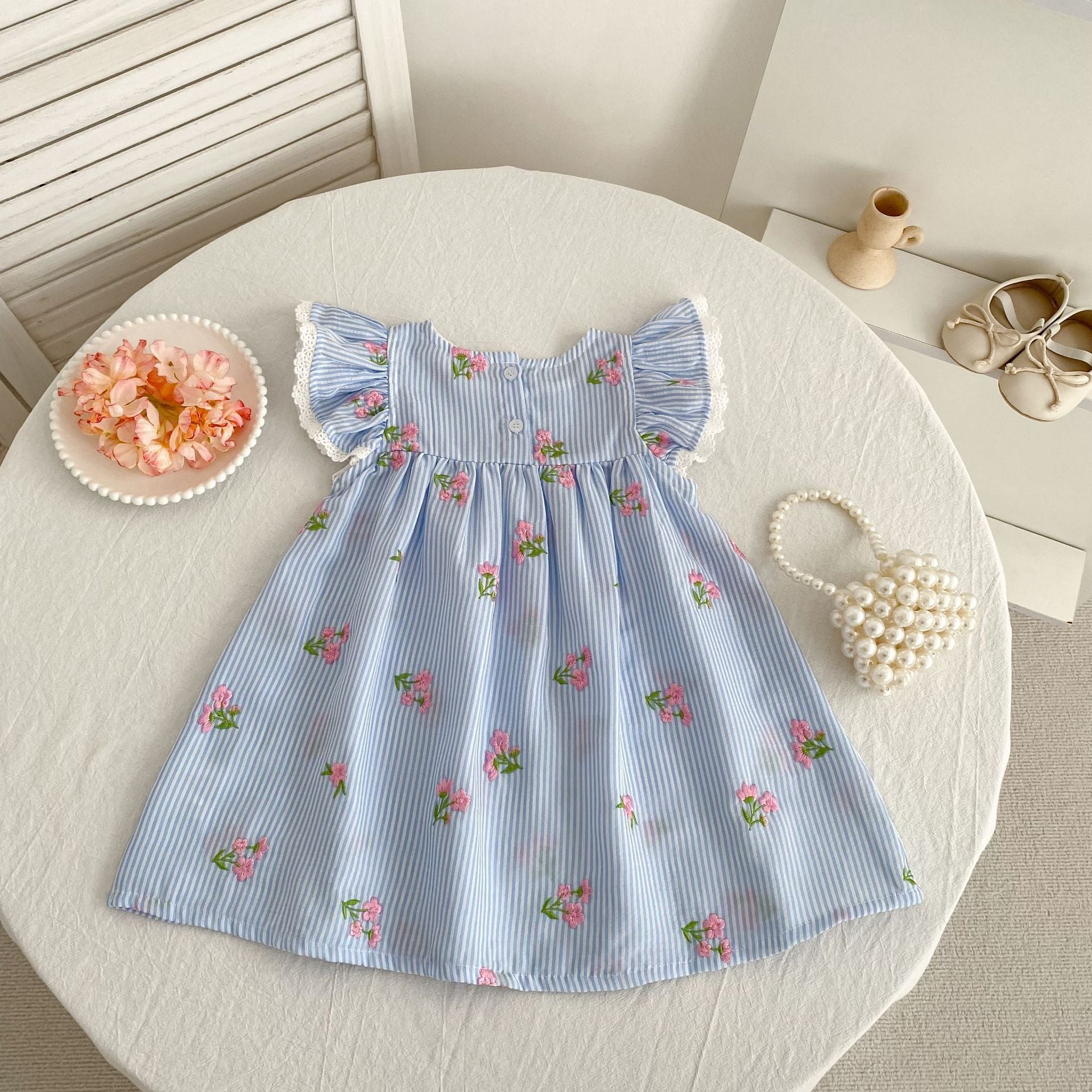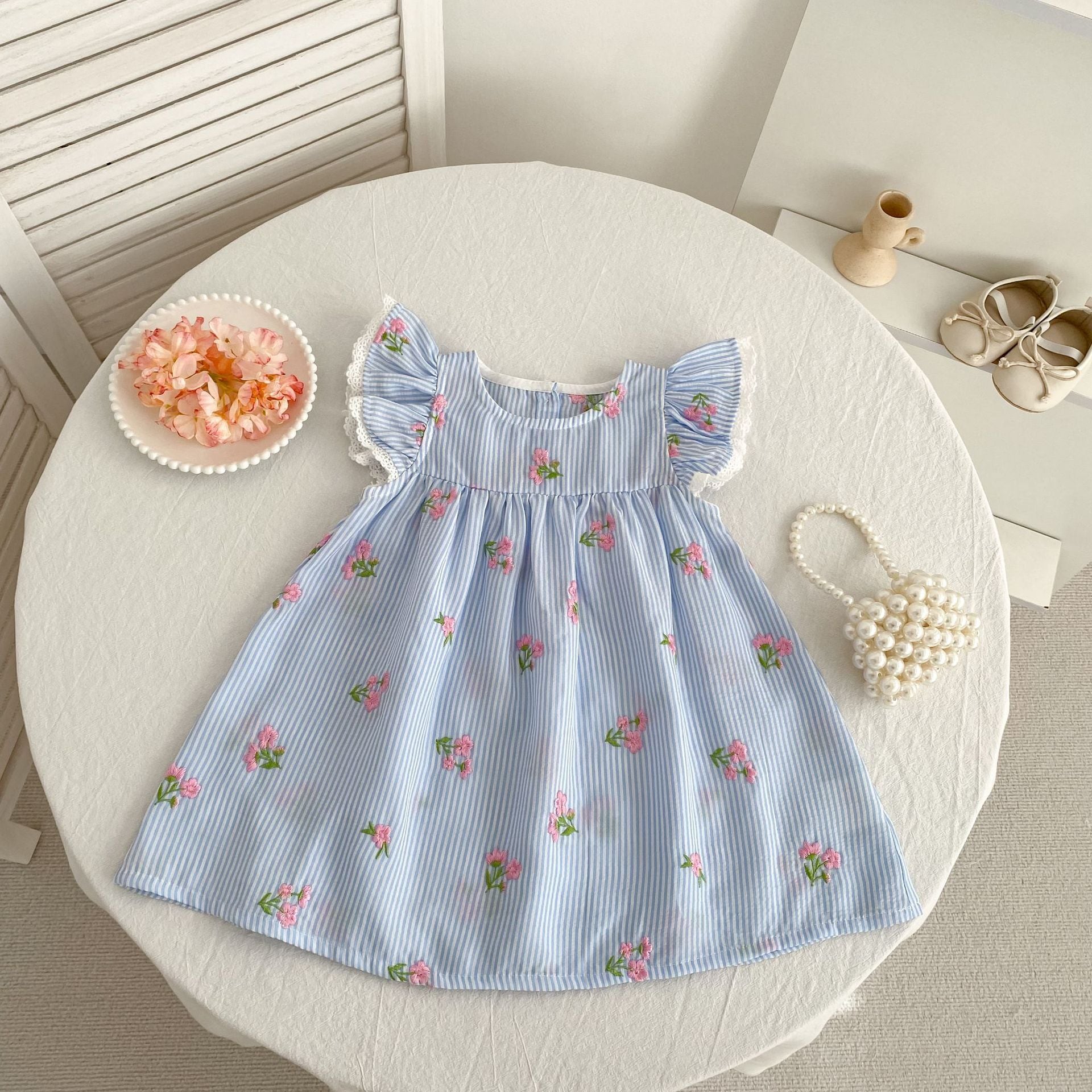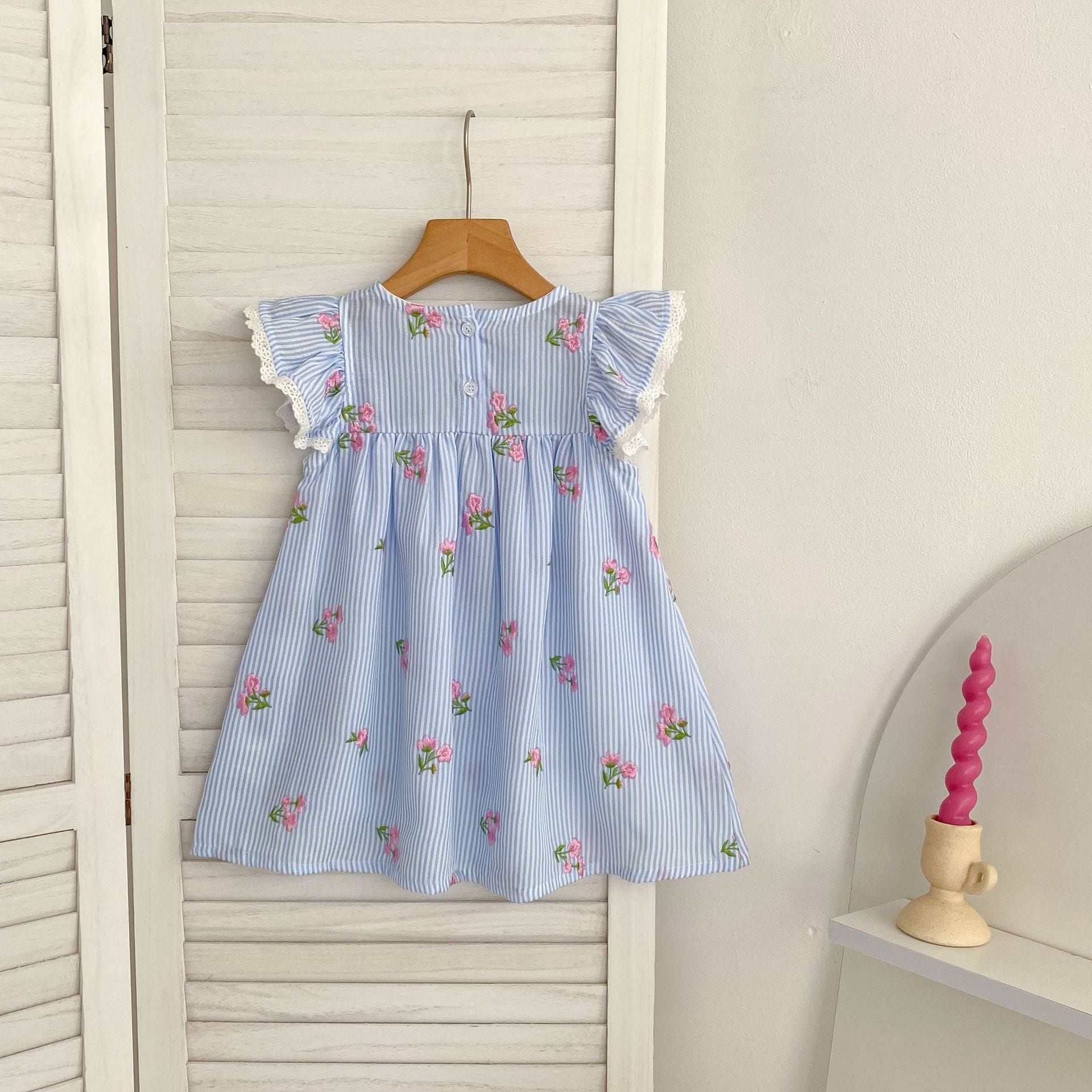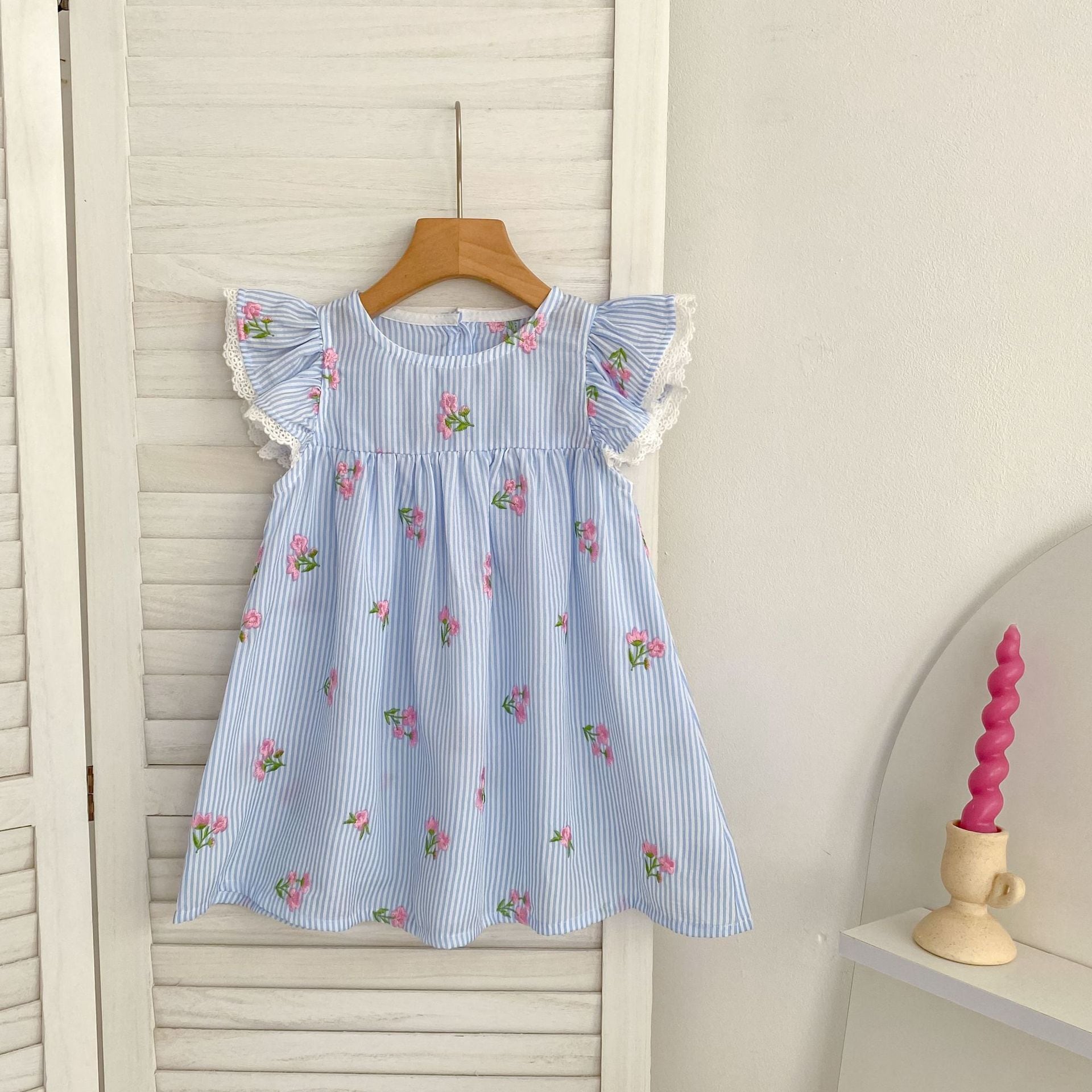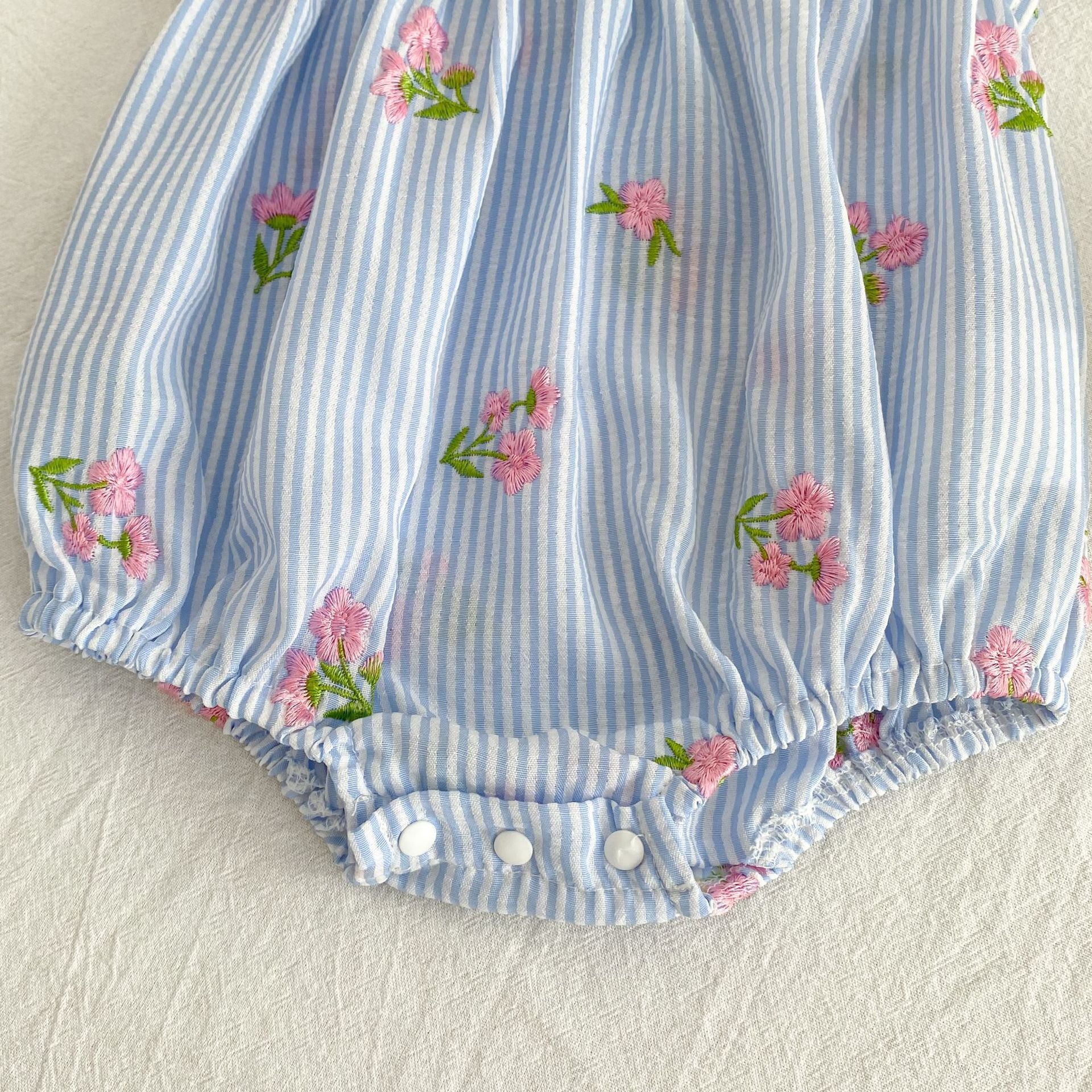 【66-130cm】ロンパース/ワンピース ブルーストライプ フリル 姉妹服