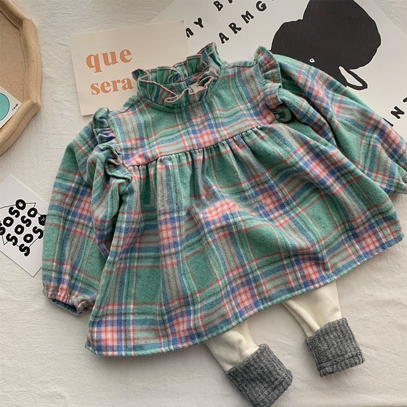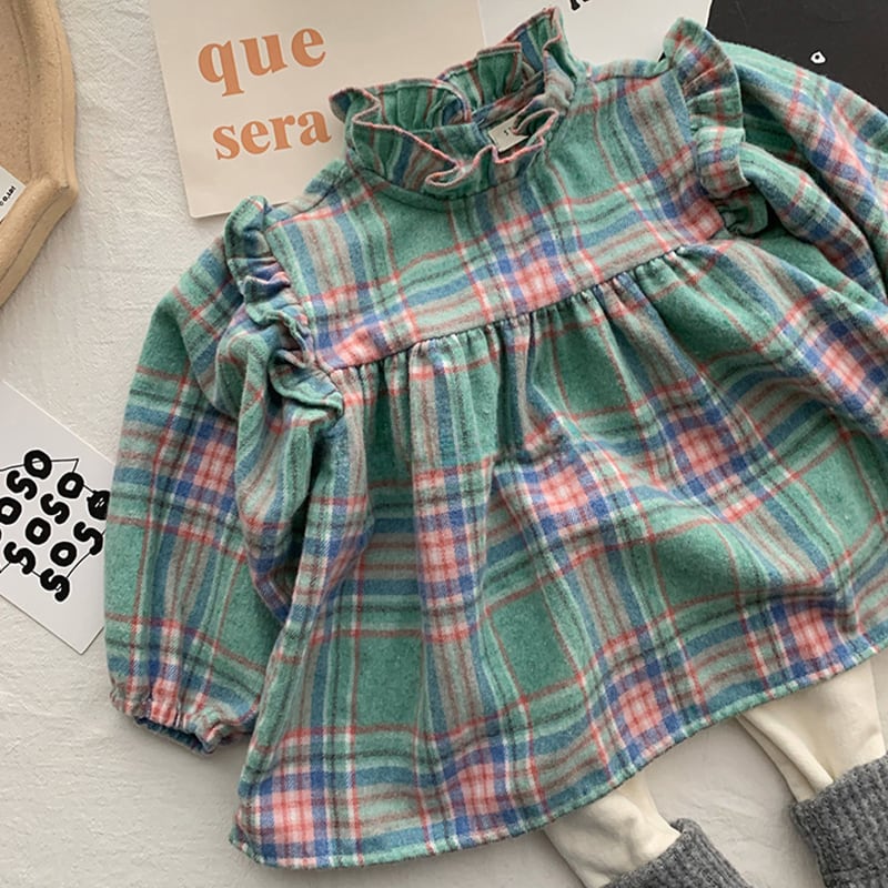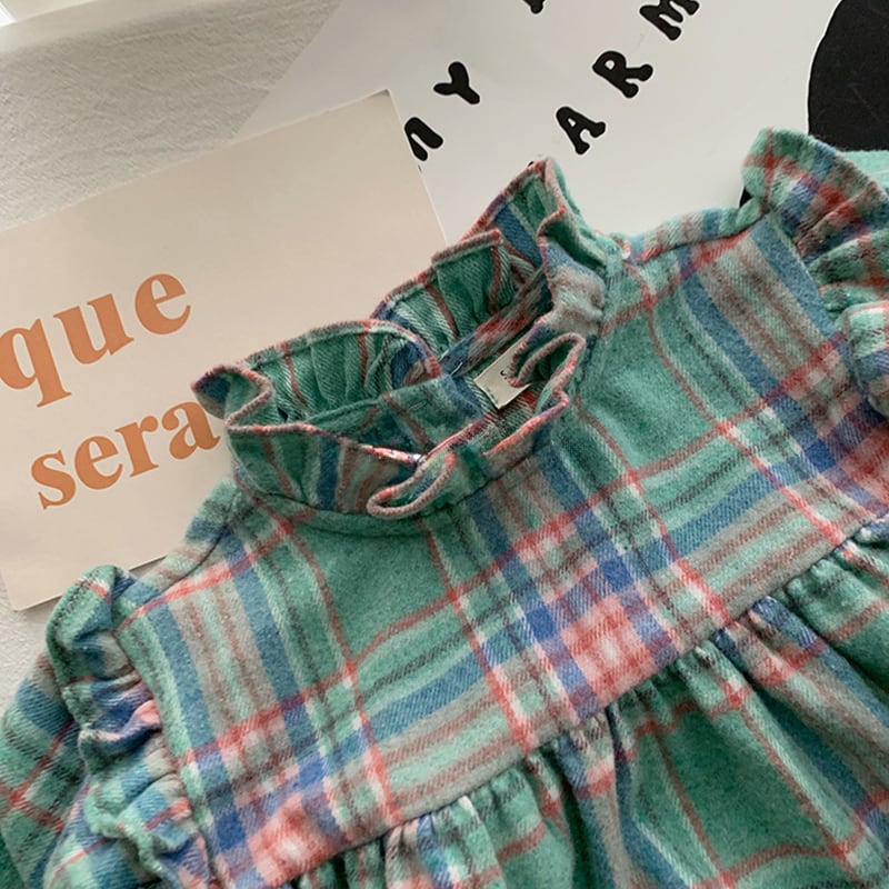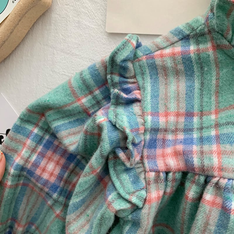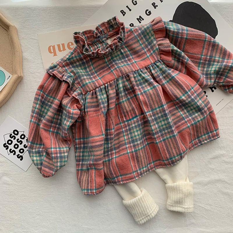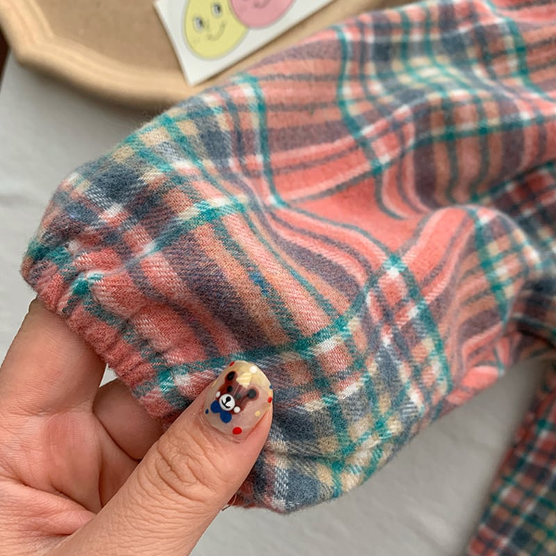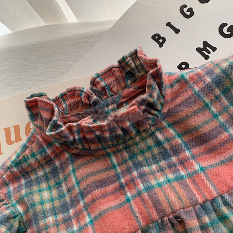 【66-100cm】シャツ チェック柄 コントラストカラー 可愛い トップス