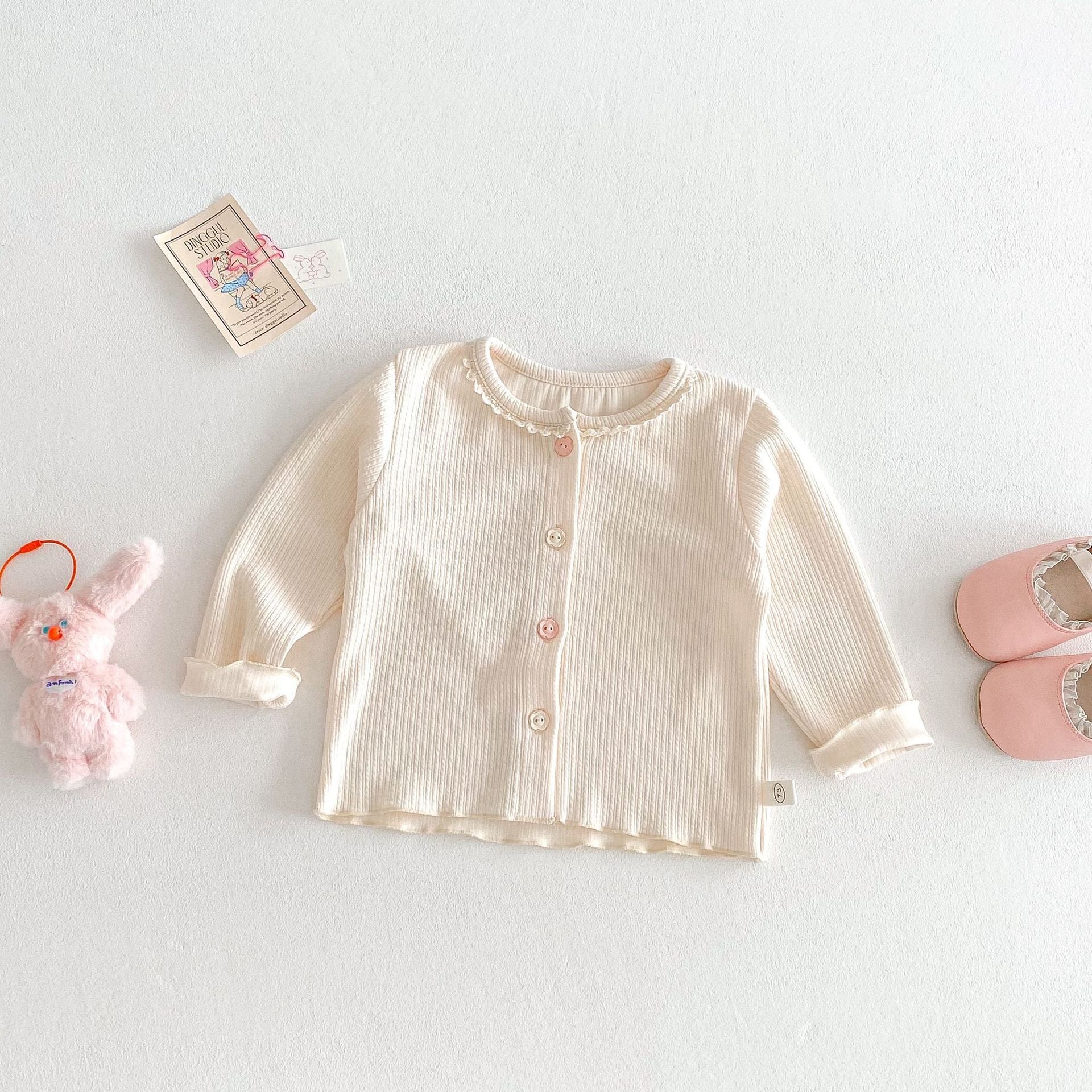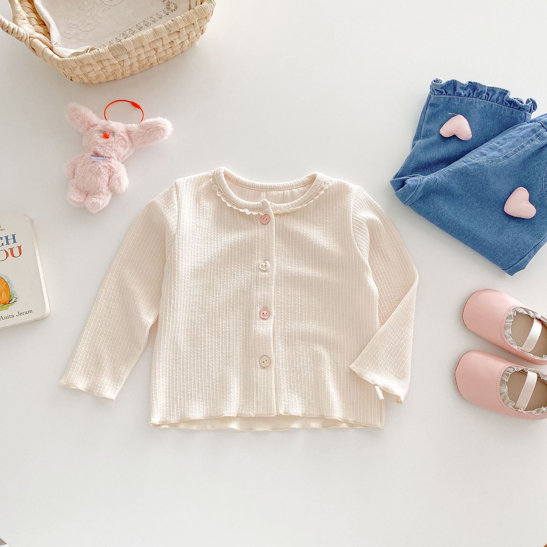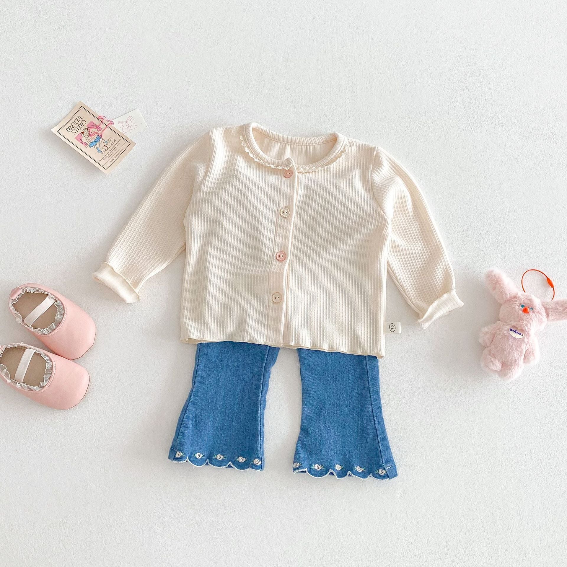 【73-120cm】カーディガンorデニムパンツ 柔らか クリーム シンプル