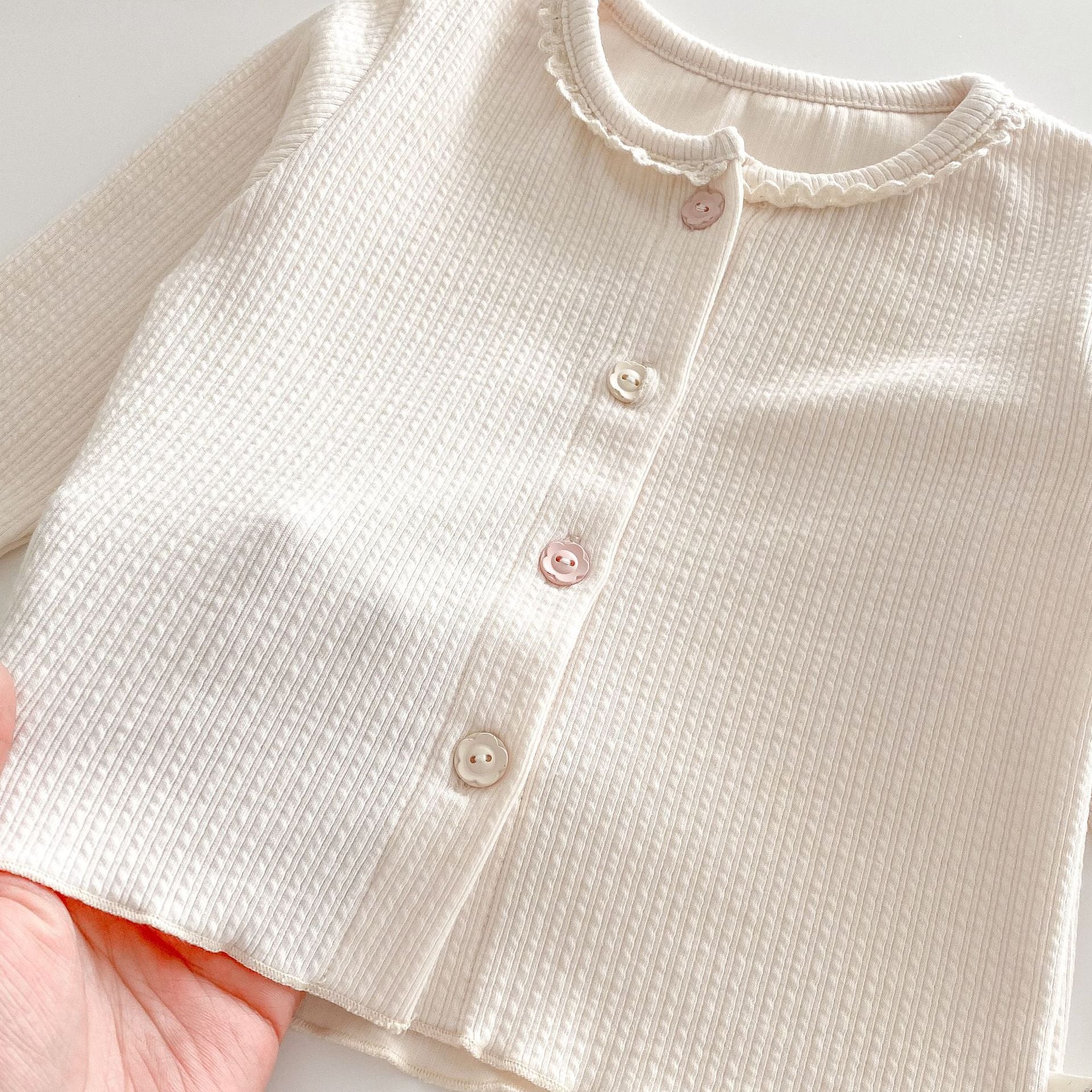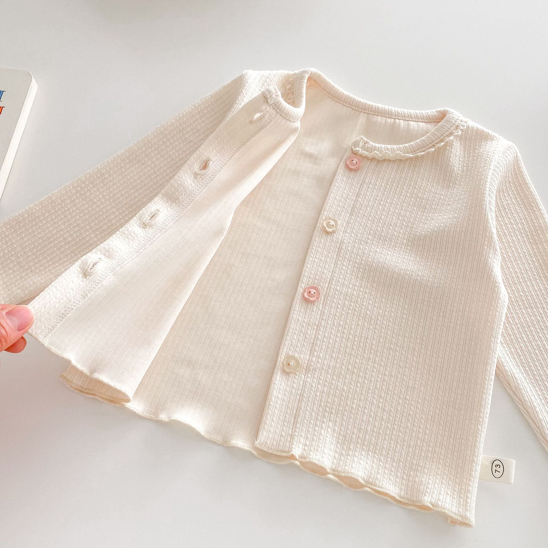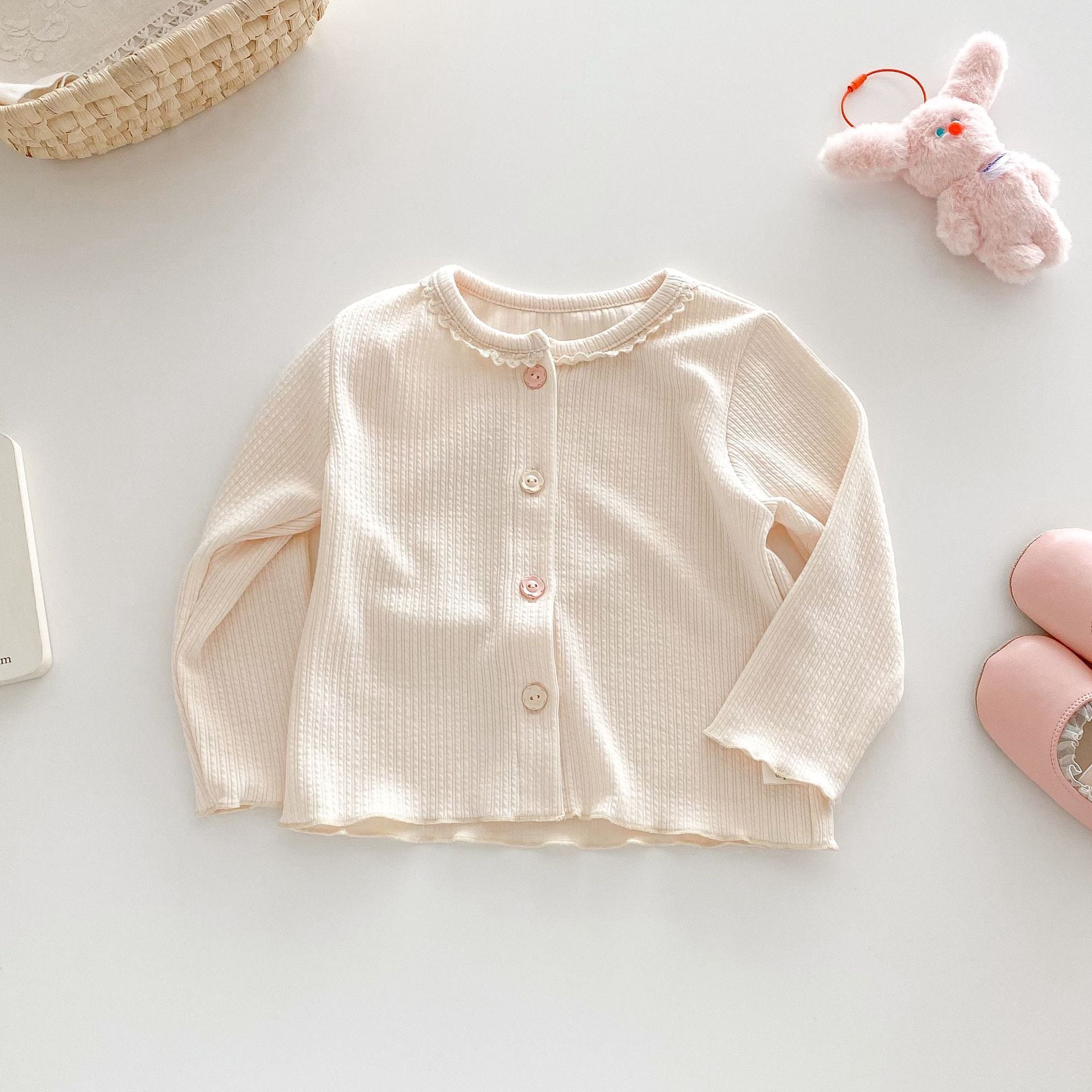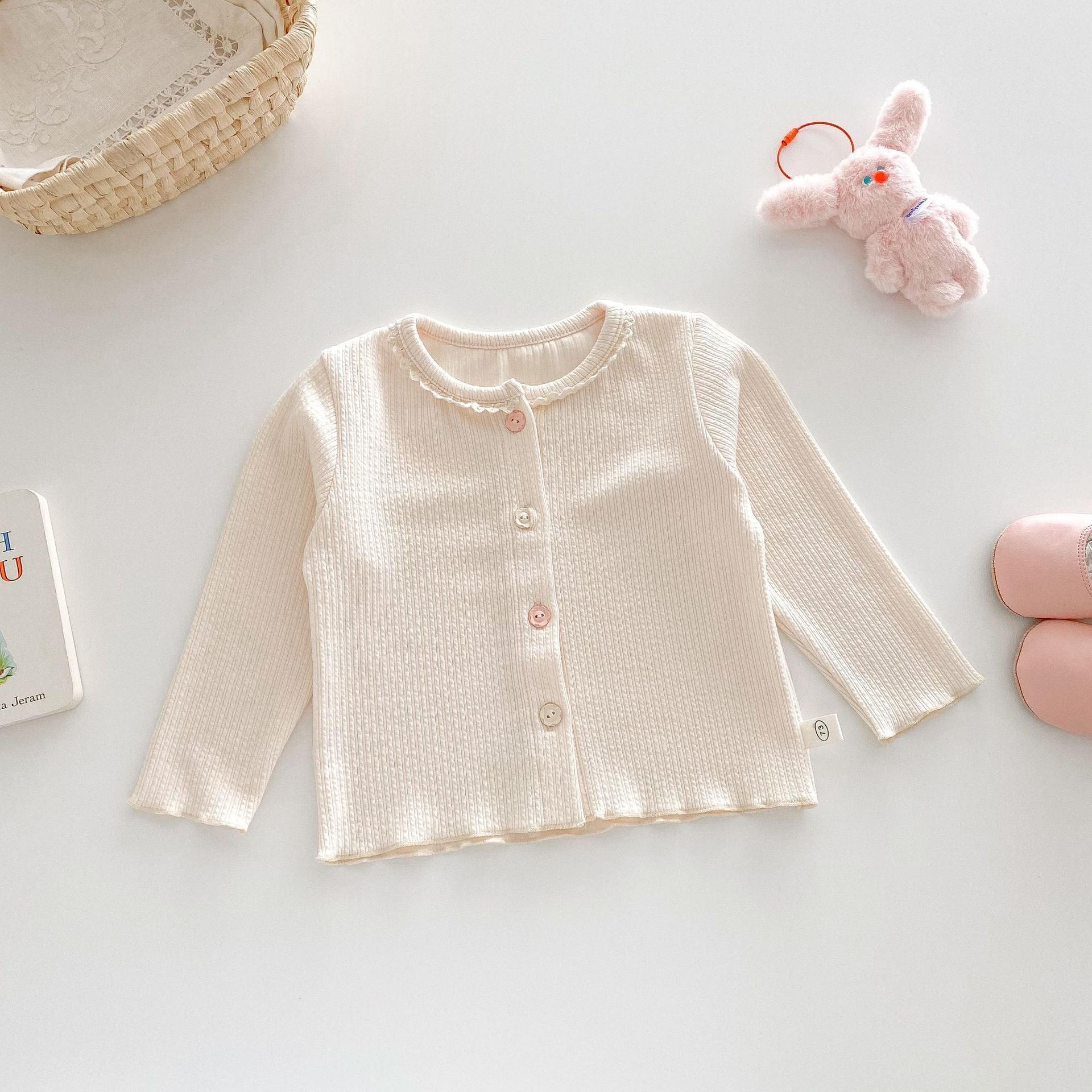 【73-120cm】カーディガンorデニムパンツ 柔らか クリーム シンプル