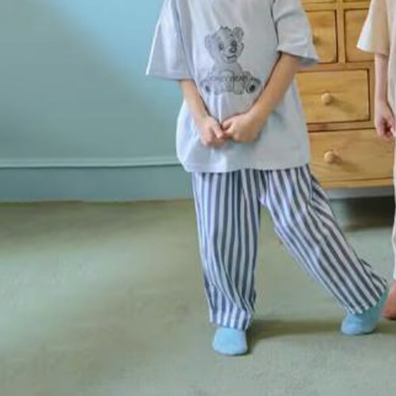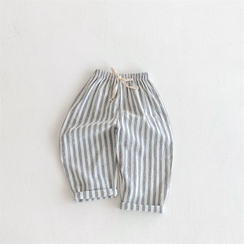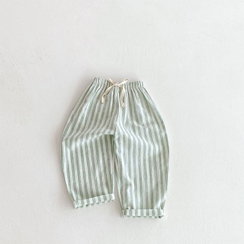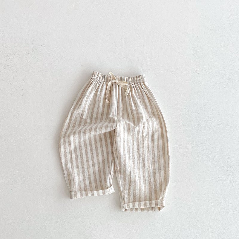 【73-120cm】ロングパンツ ストライプ柄 リネン コットン