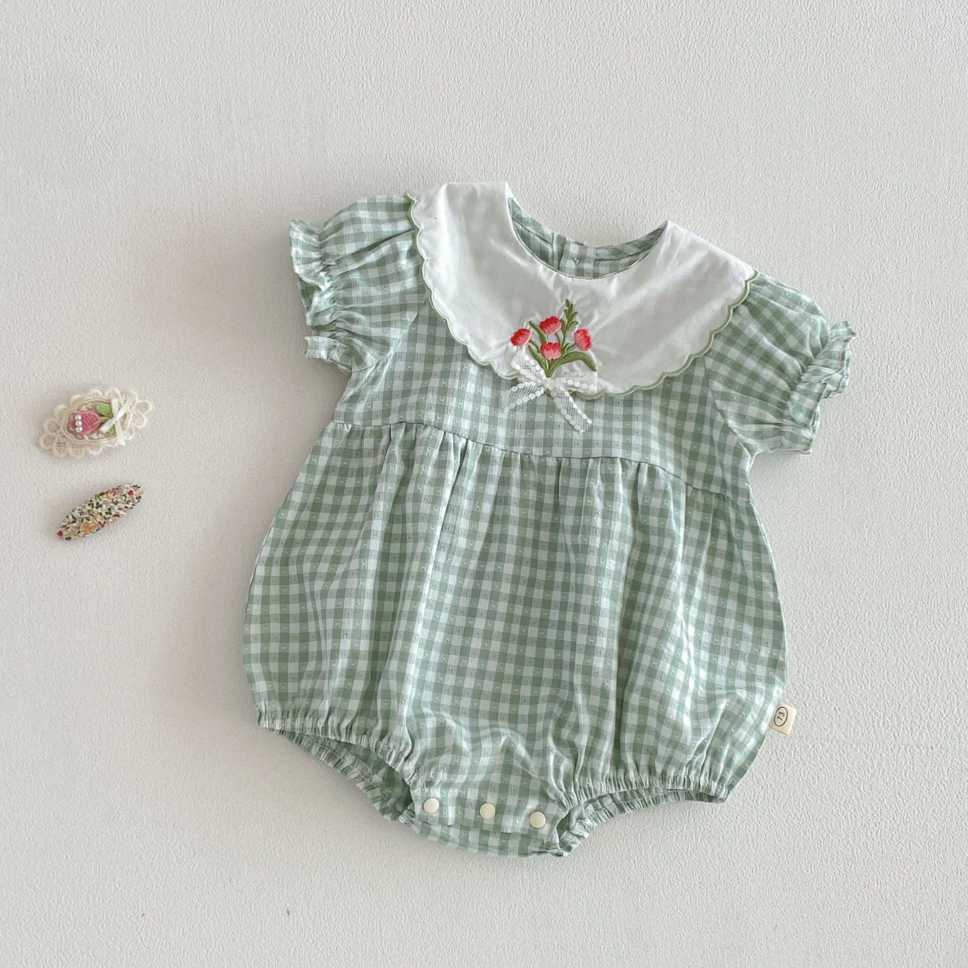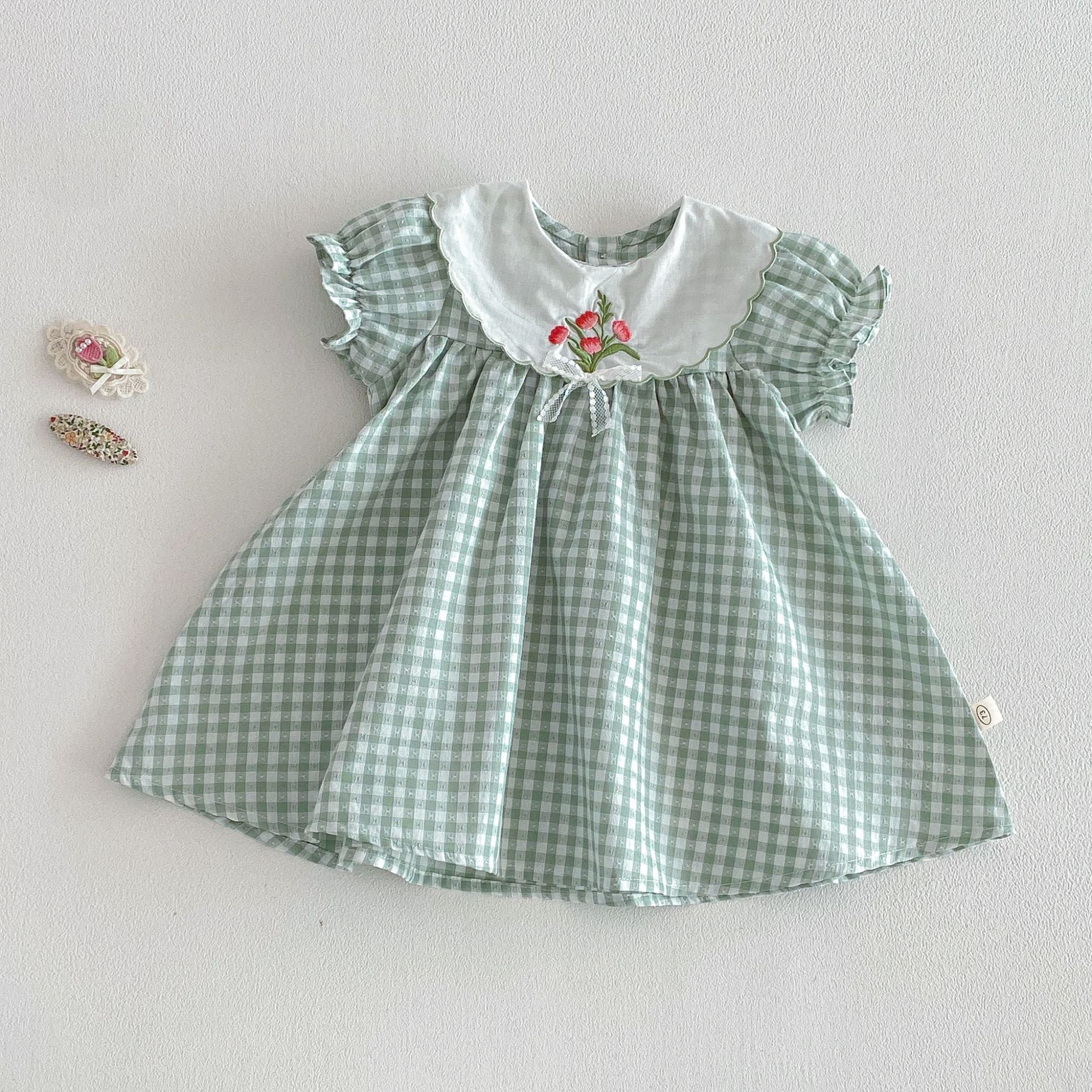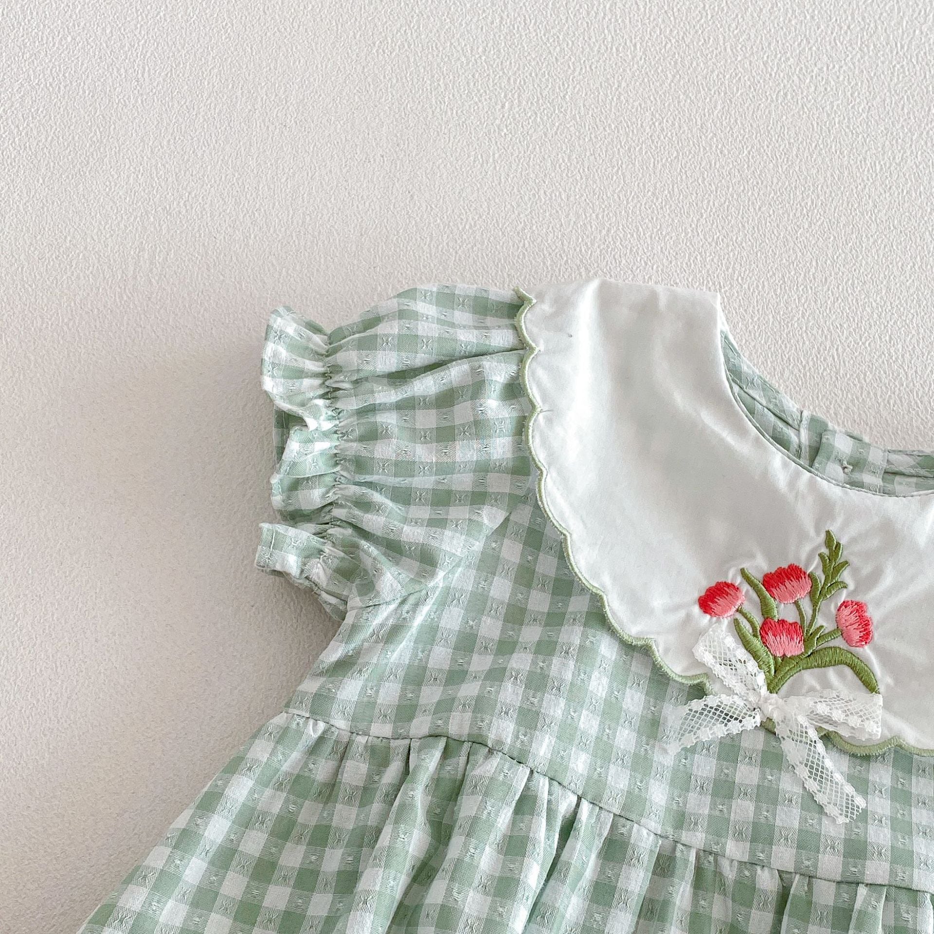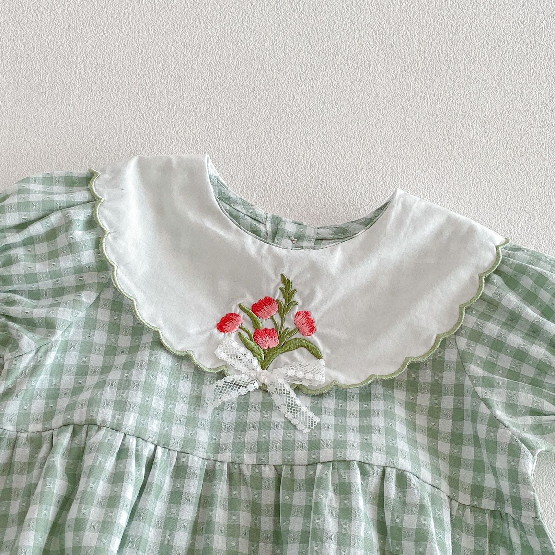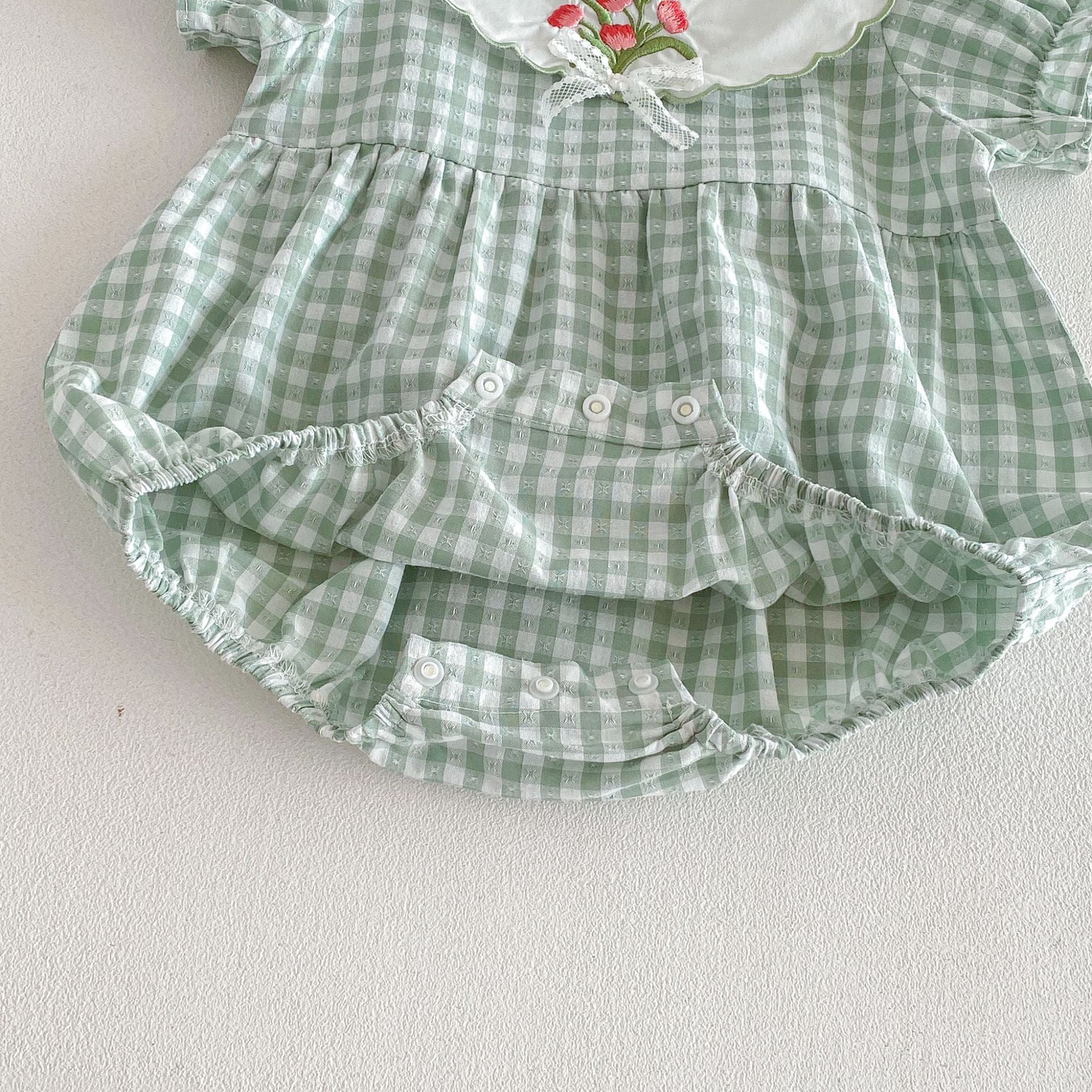 【66-110cm】ロンパースorワンピース グリーンチェック 姉妹服