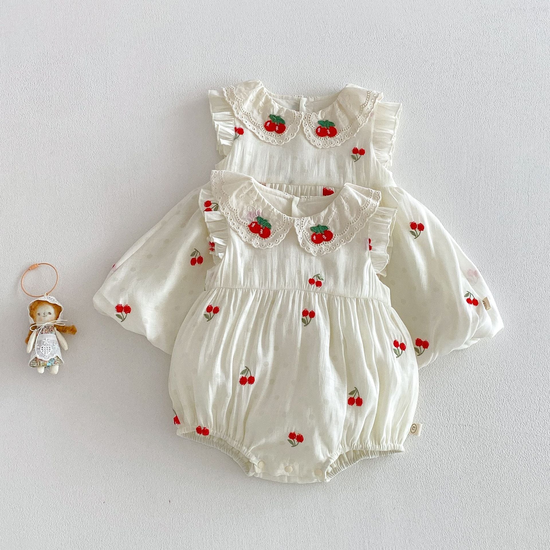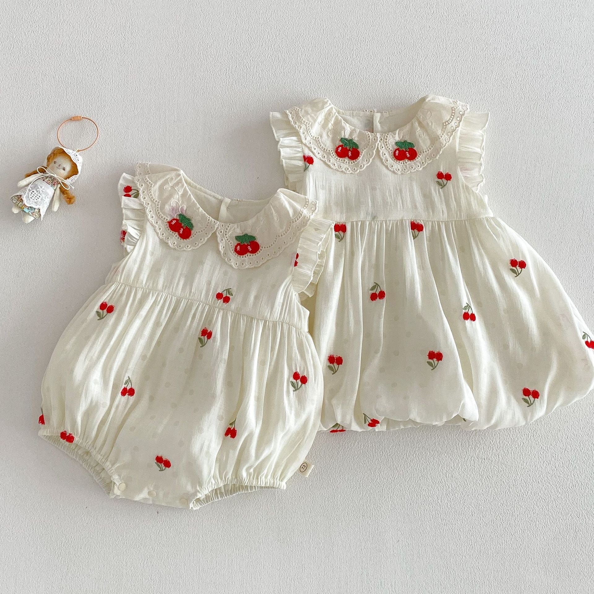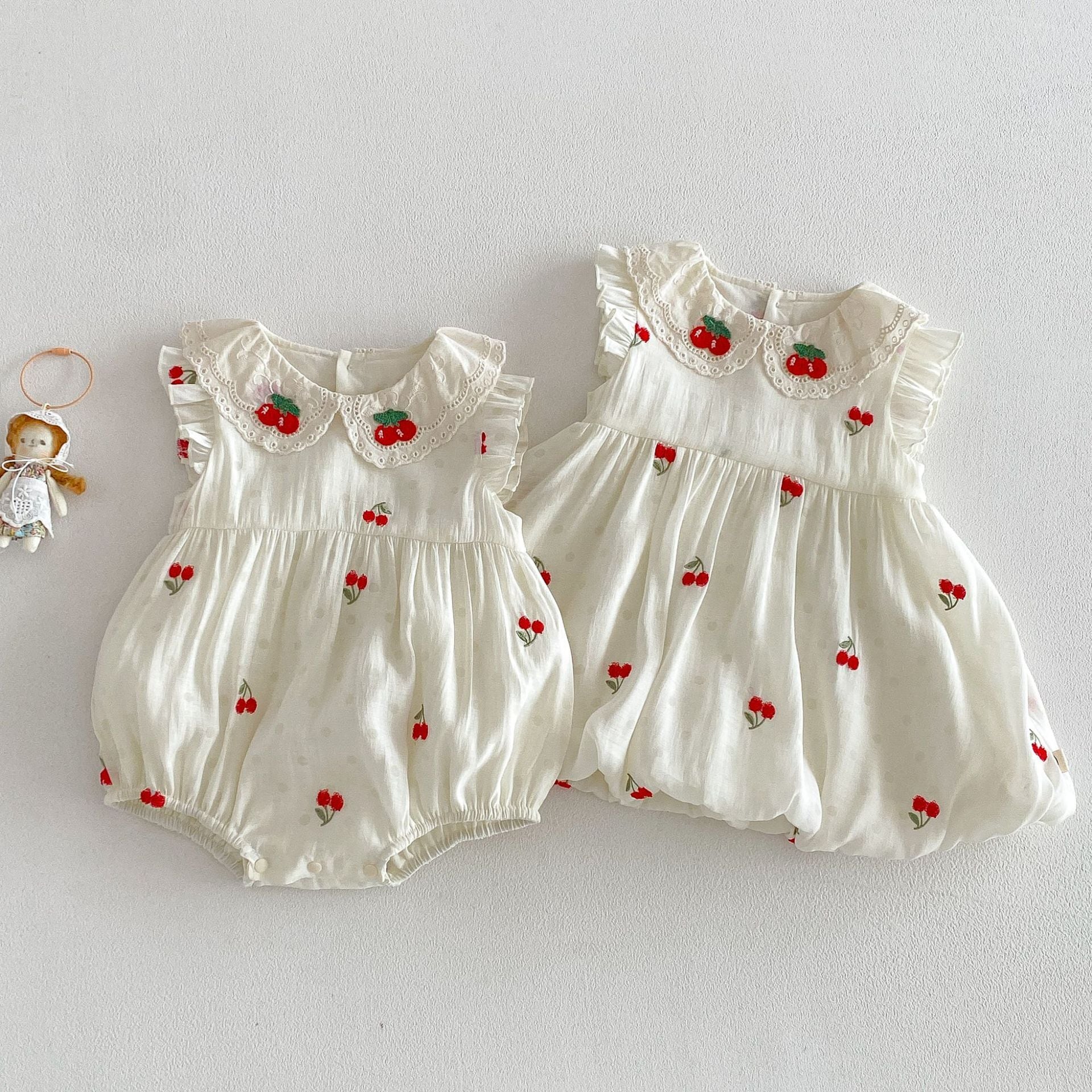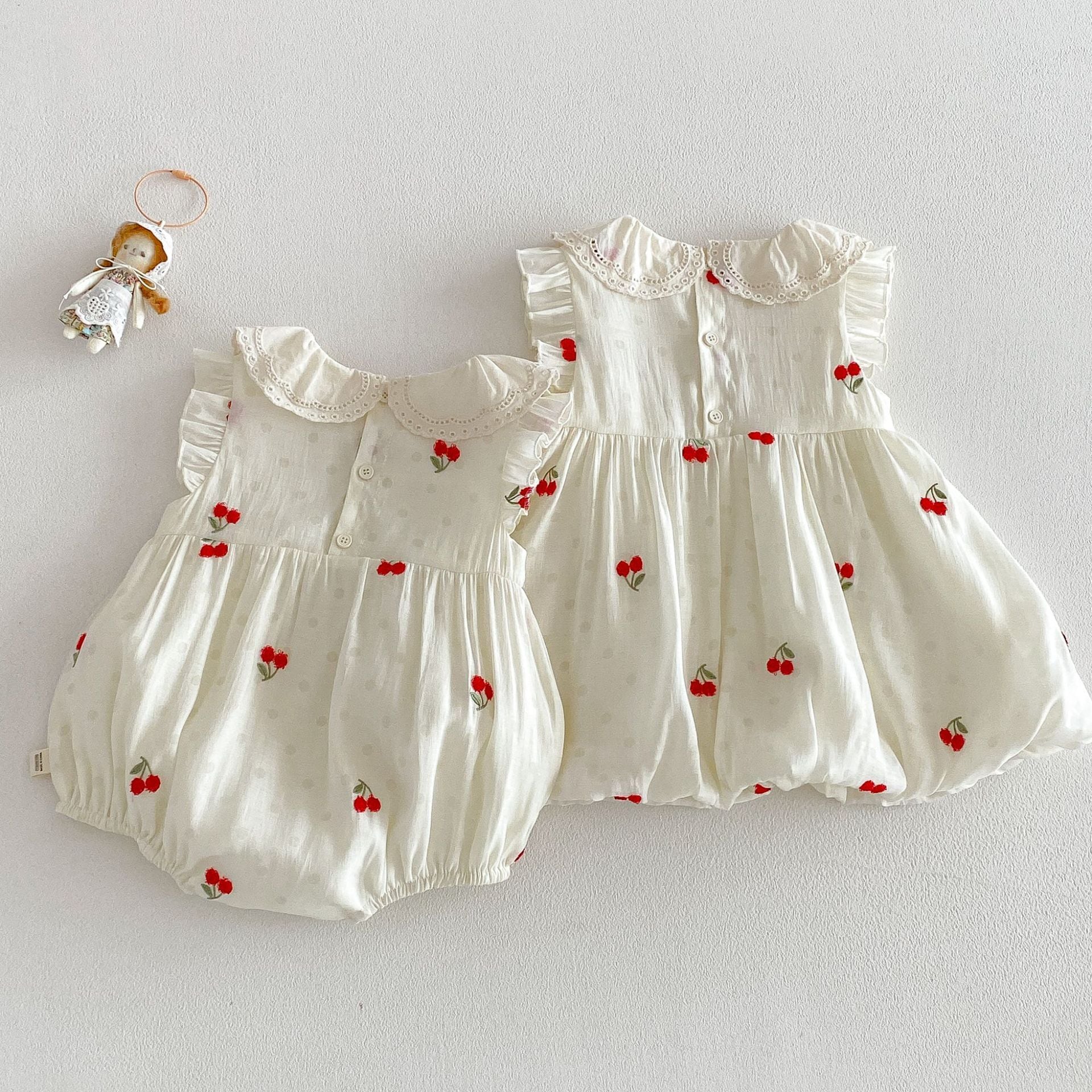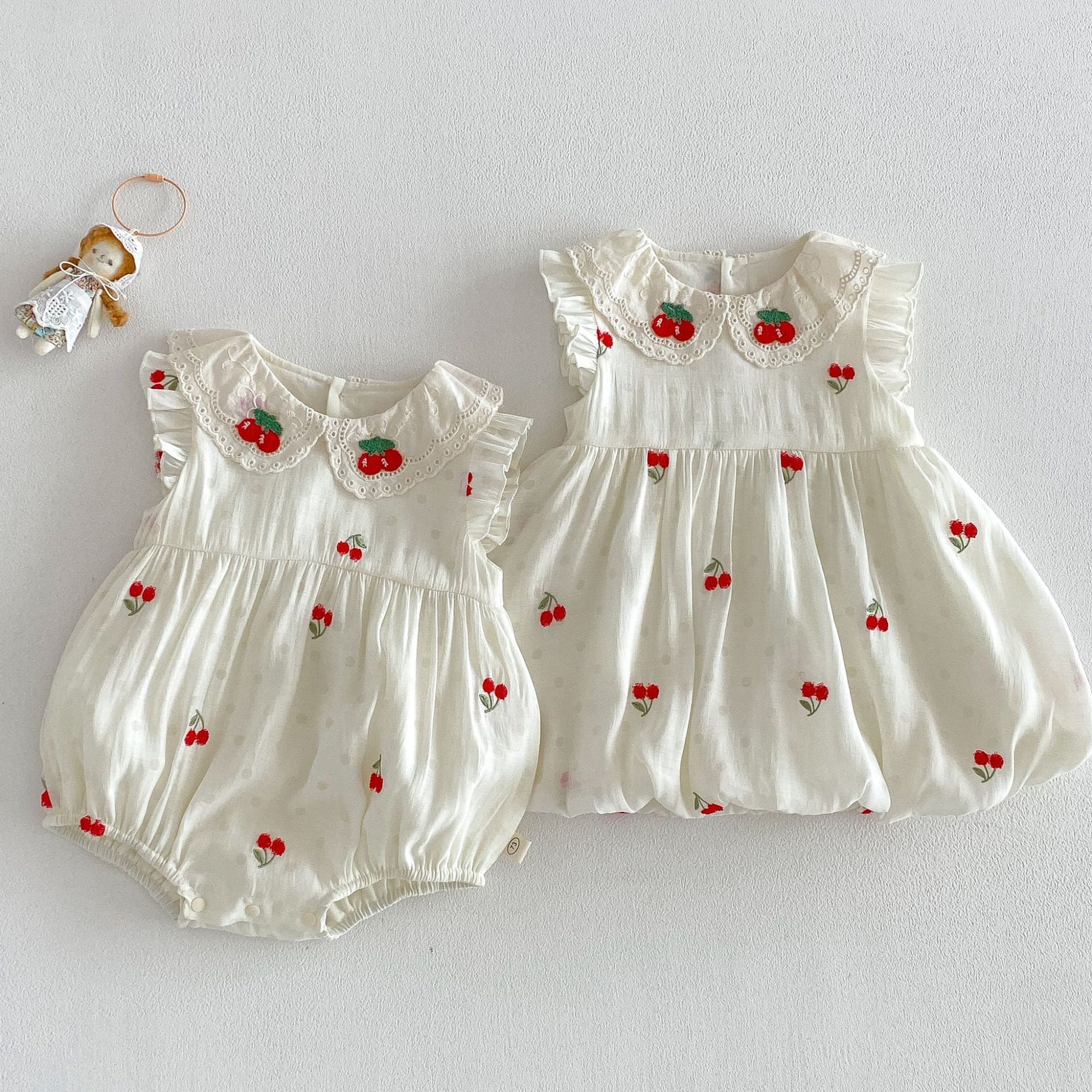 【66-110cm】ロンパース/ワンピース チェリー柄 姉妹服 おしゃれ